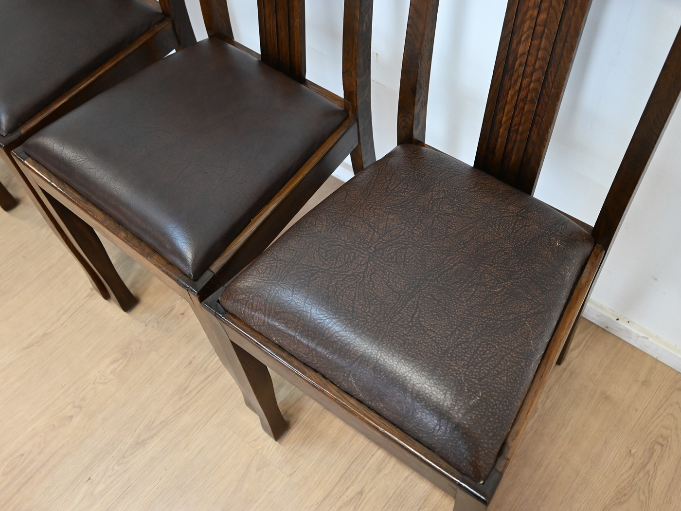 Krzesła stabilne. Siedzisko na pasach, jedno na desce. Tapicerka nie wymieniana, bez przetarć, dziur, jedno z innym obiciem.