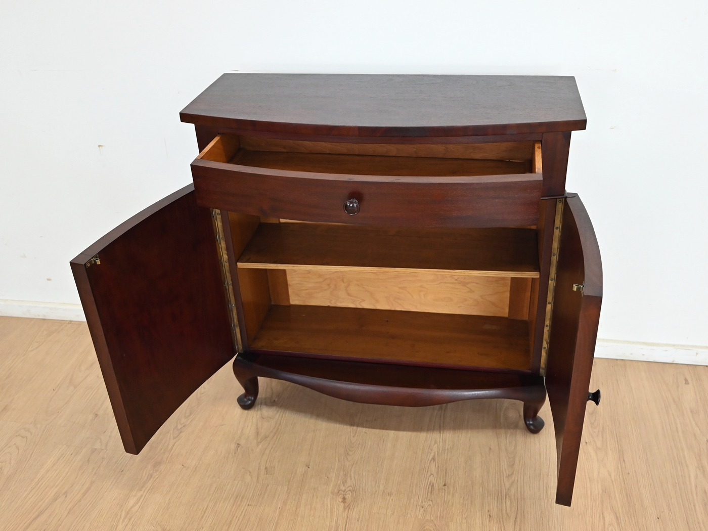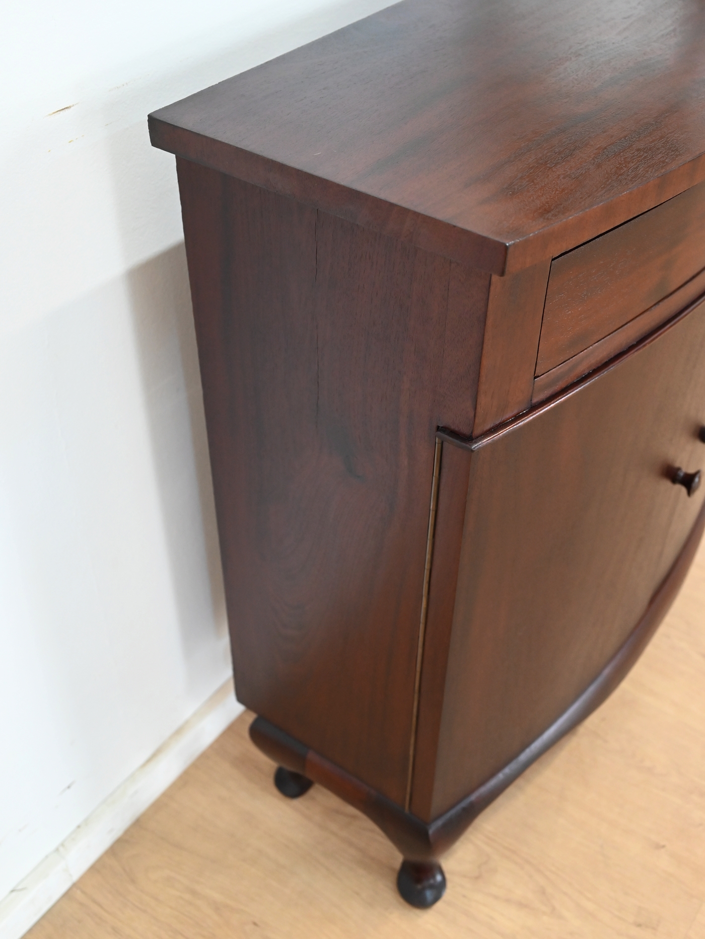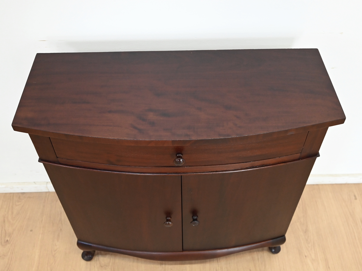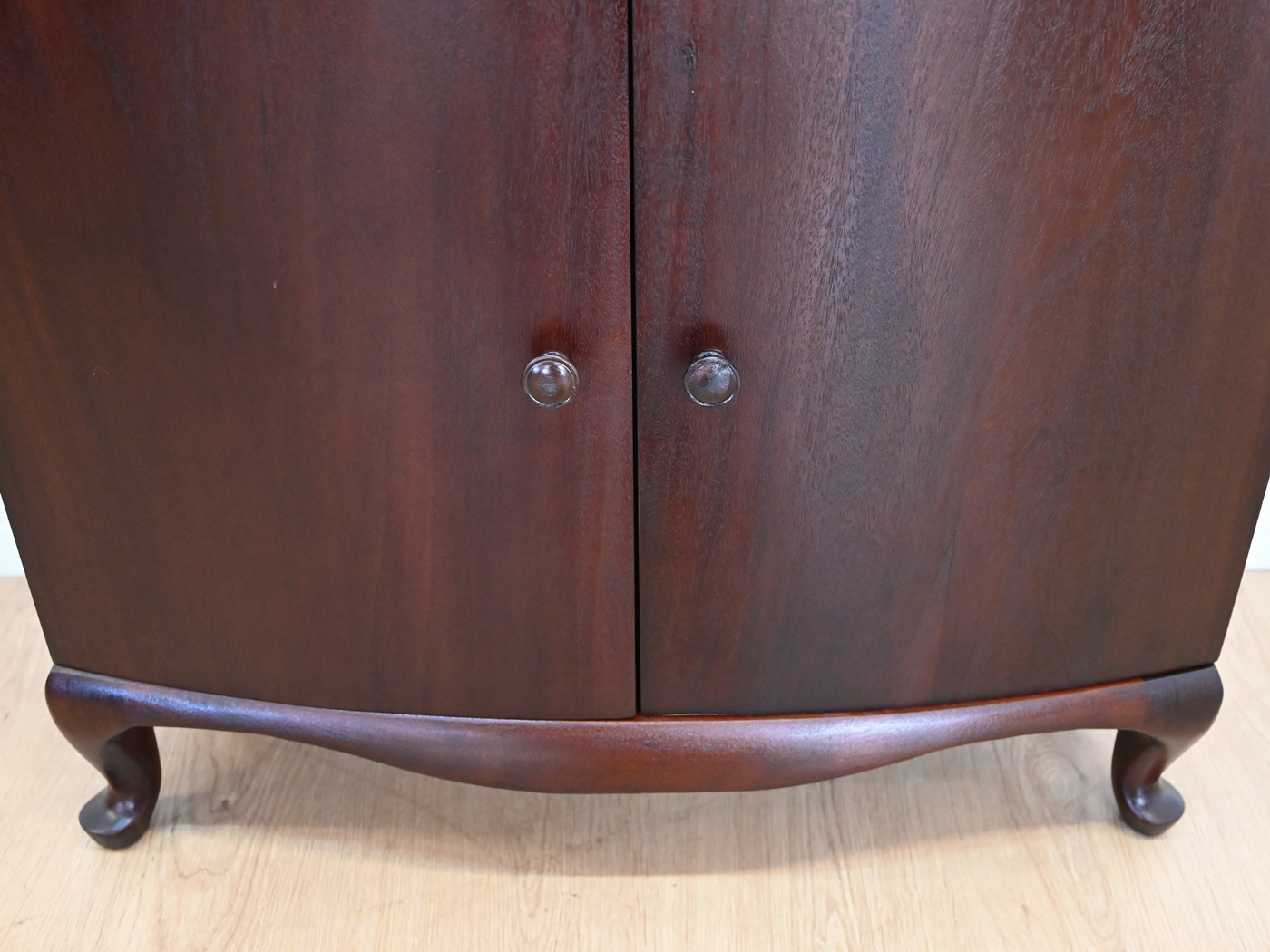 Wykonany jest w całości z drewna, fornirowany mahoniem.