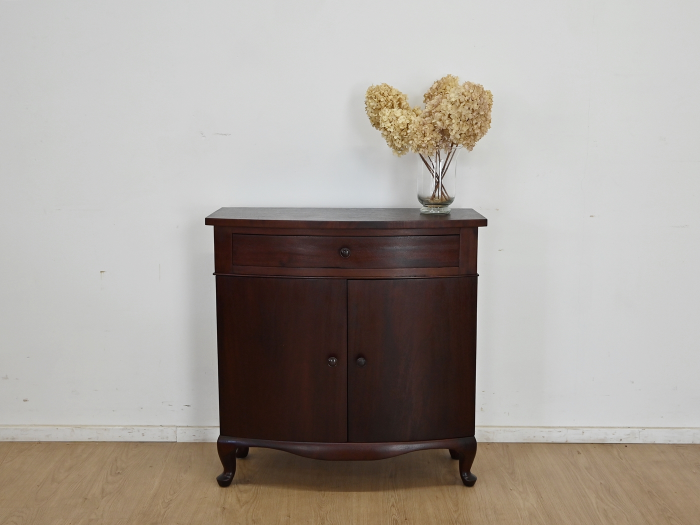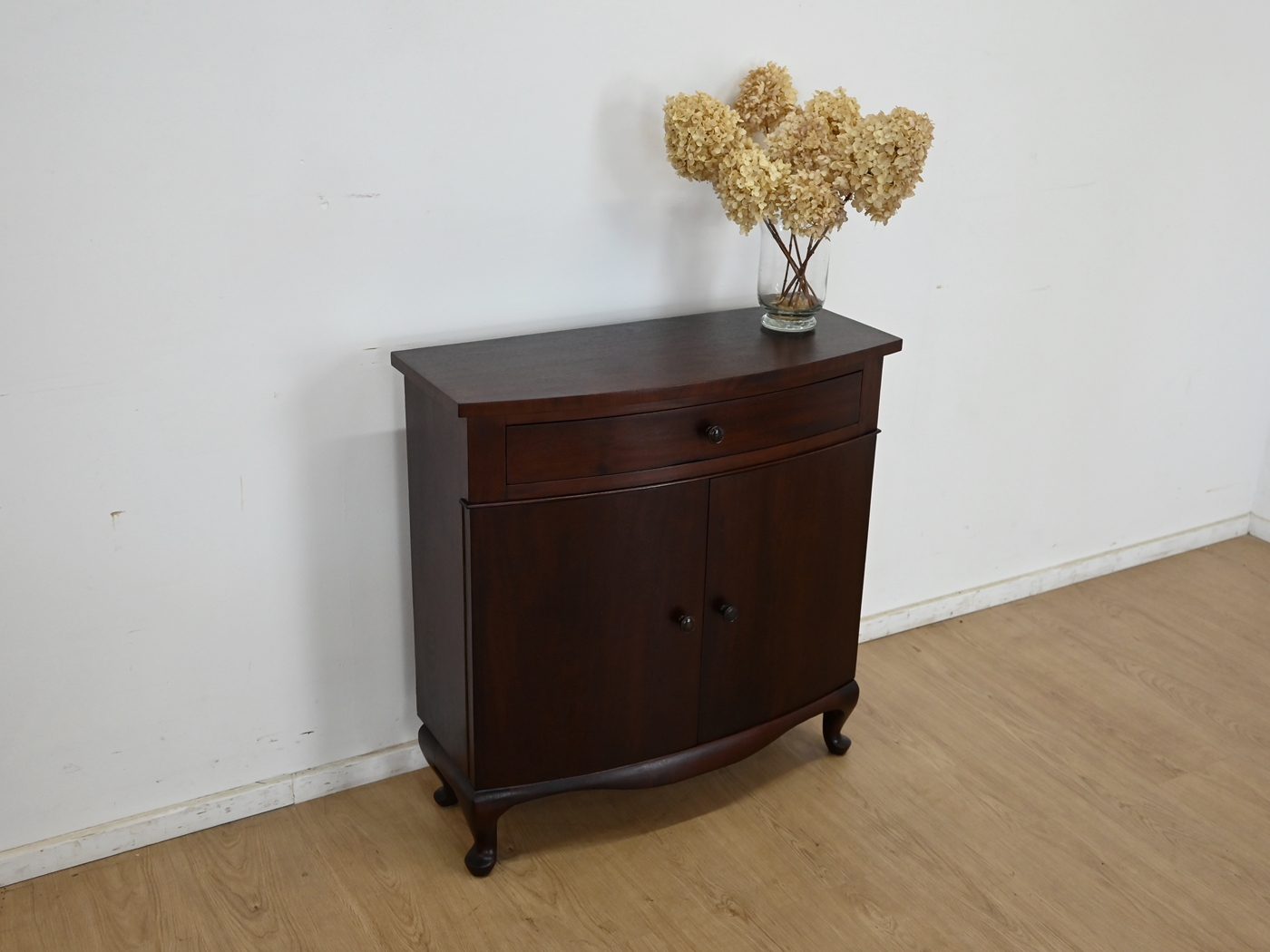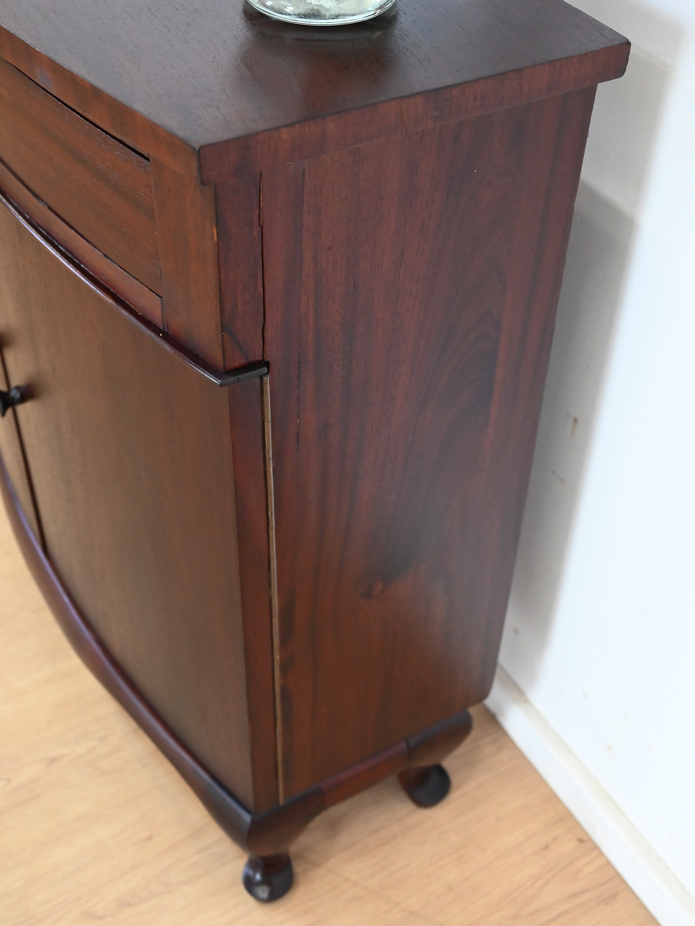 Wykonany jest w całości z drewna, fornirowany mahoniem.