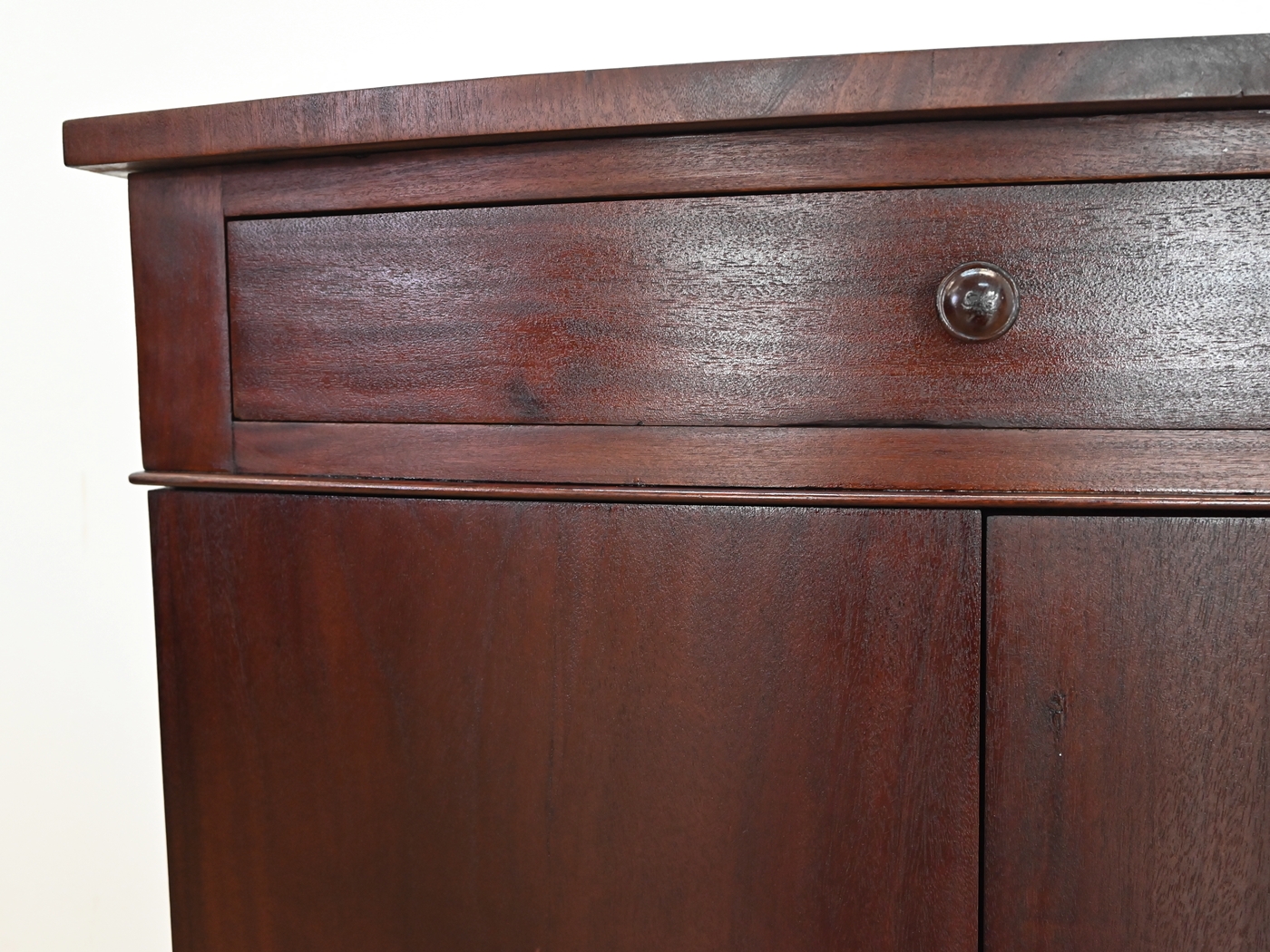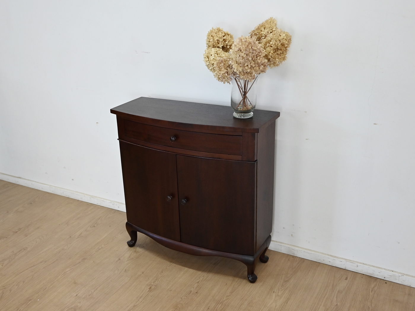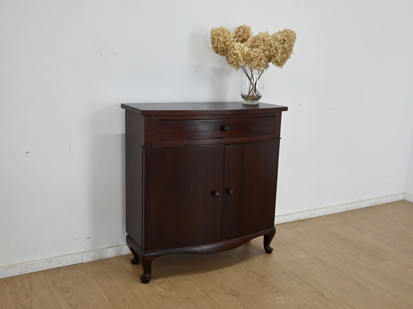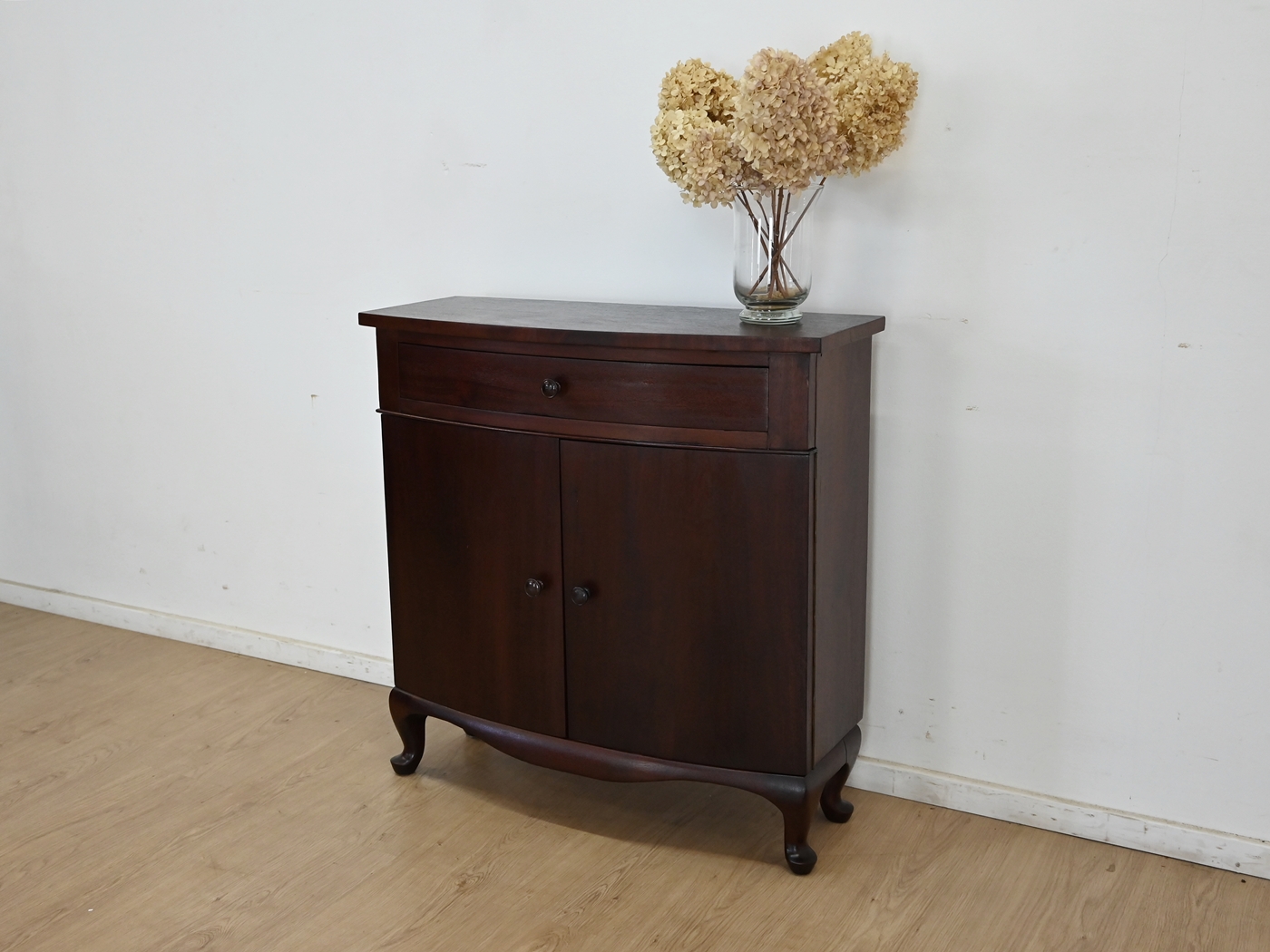 Wykonany jest w całości z drewna, fornirowany mahoniem.