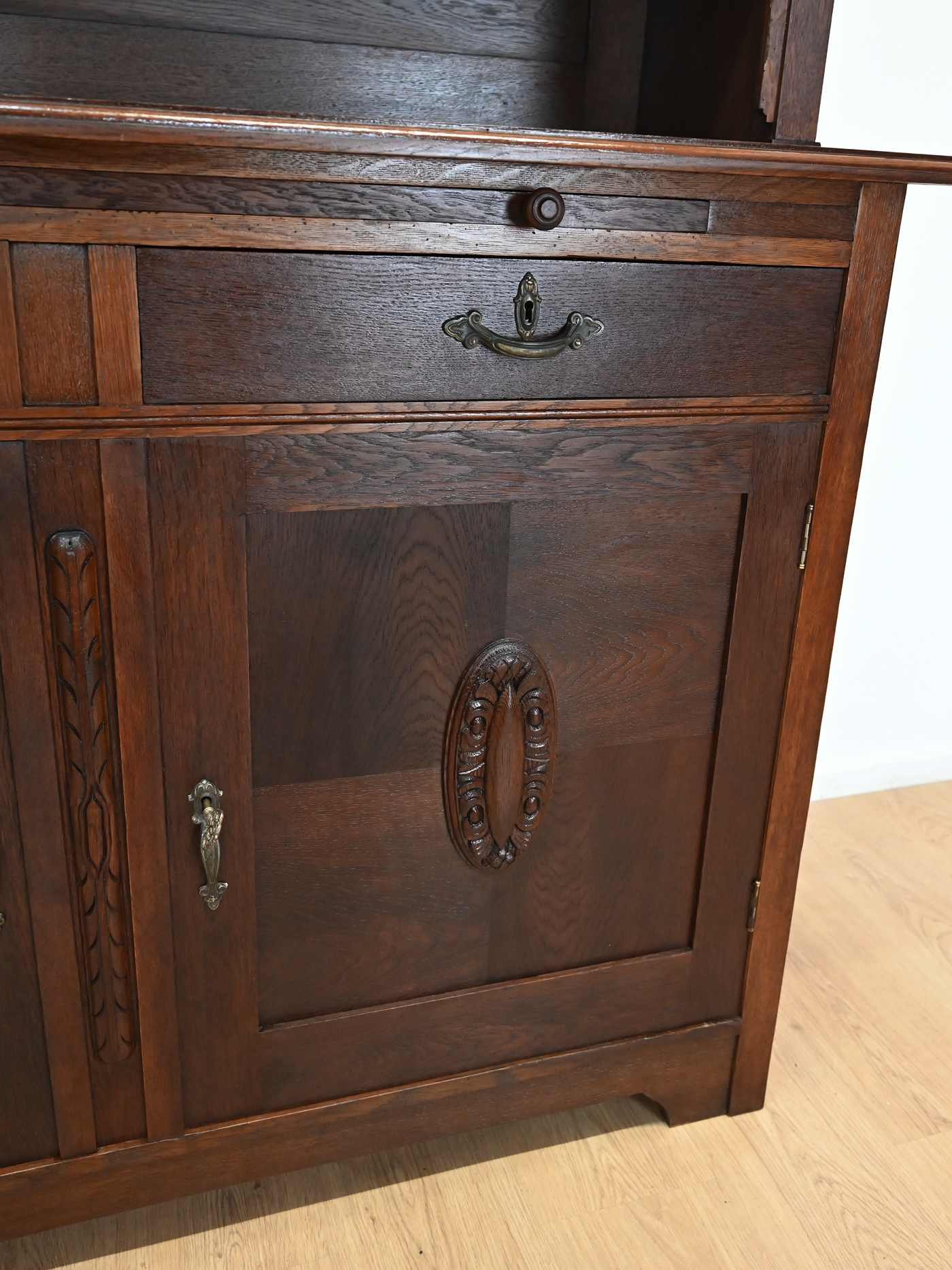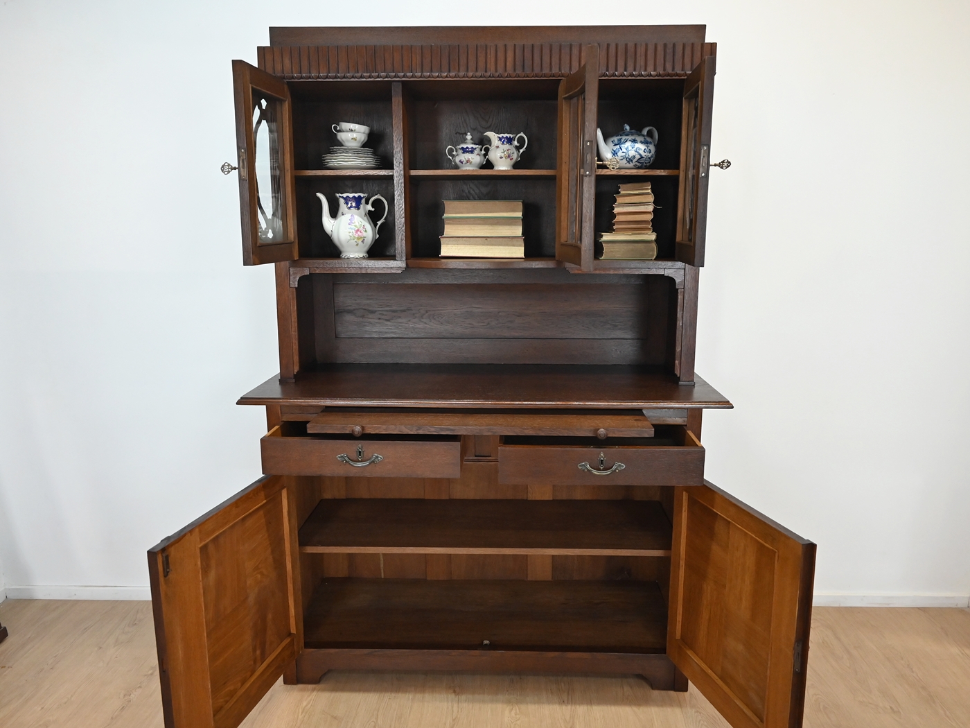 Stan bardzo dobry. Mebel przygotowany do użytkowania. Odświeżone zostały powierzchnie zewnętrzne jak i środek mebla. Mebel ma już swoje lata i ślady minionego czasu, które nie wpływają na jego odbiór estetyczny, są świadectwem autentyczności mebla. Kredens od razu można wstawić do mieszkania.