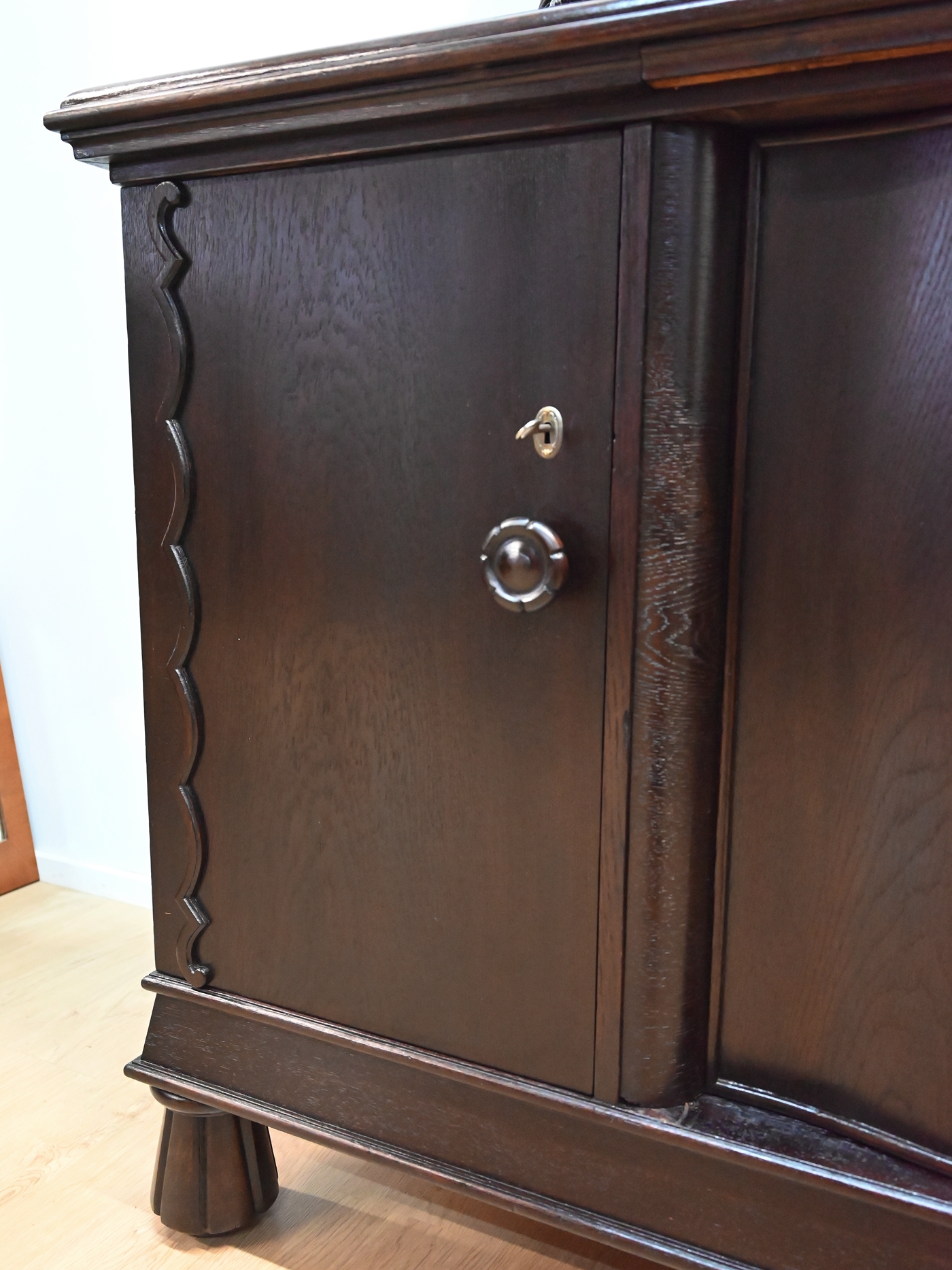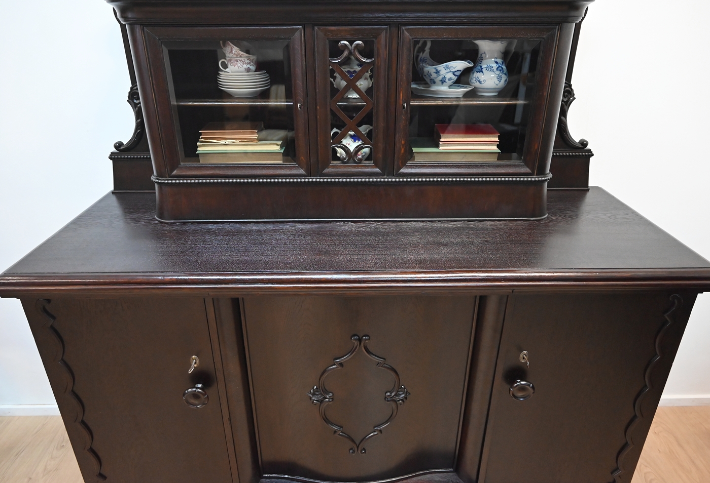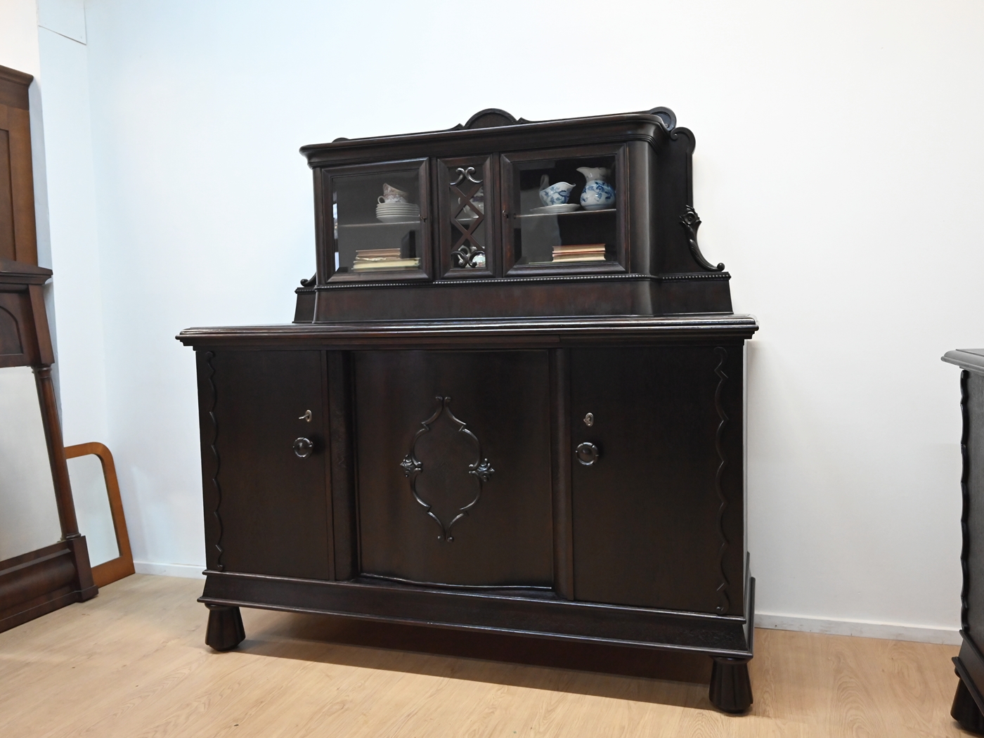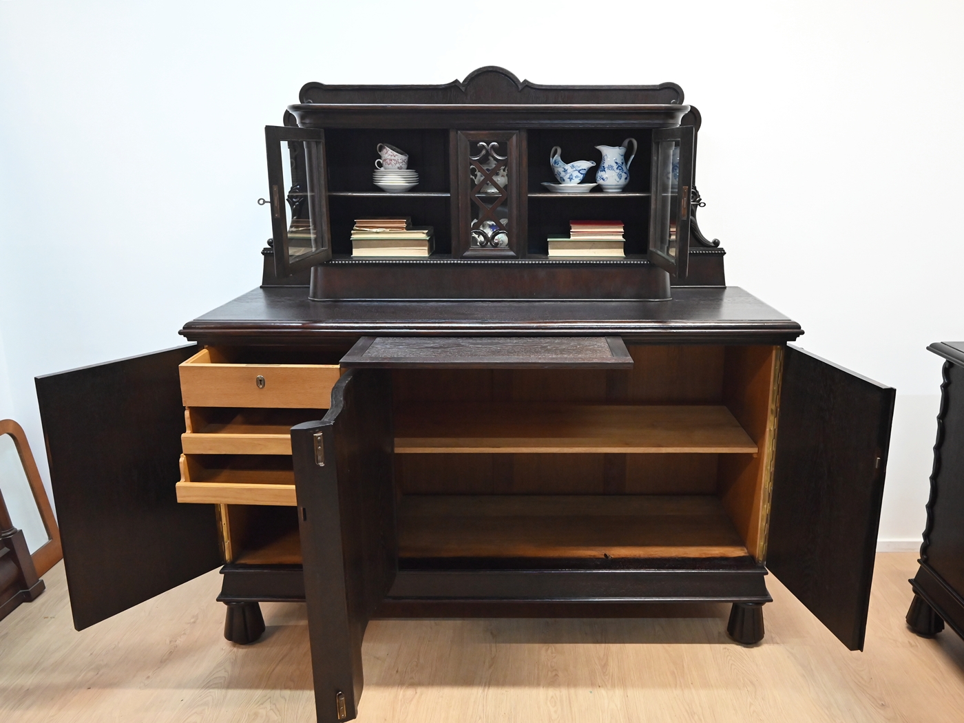 Stan bardzo dobry. Mebel przygotowany do użytkowania. Odświeżone zostały powierzchnie zewnętrzne jak i środek mebla. Mebel ma już swoje lata i ślady minionego czasu, które nie wpływają na jego odbiór estetyczny, są świadectwem autentyczności mebla. Kredens od razu można wstawić do mieszkania.