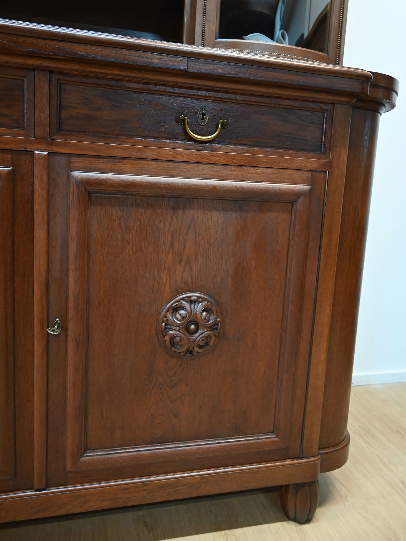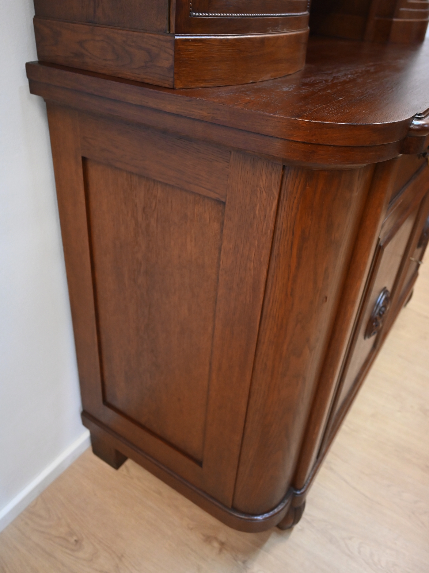 Wykończony jest politurą szelakową w półmacie.