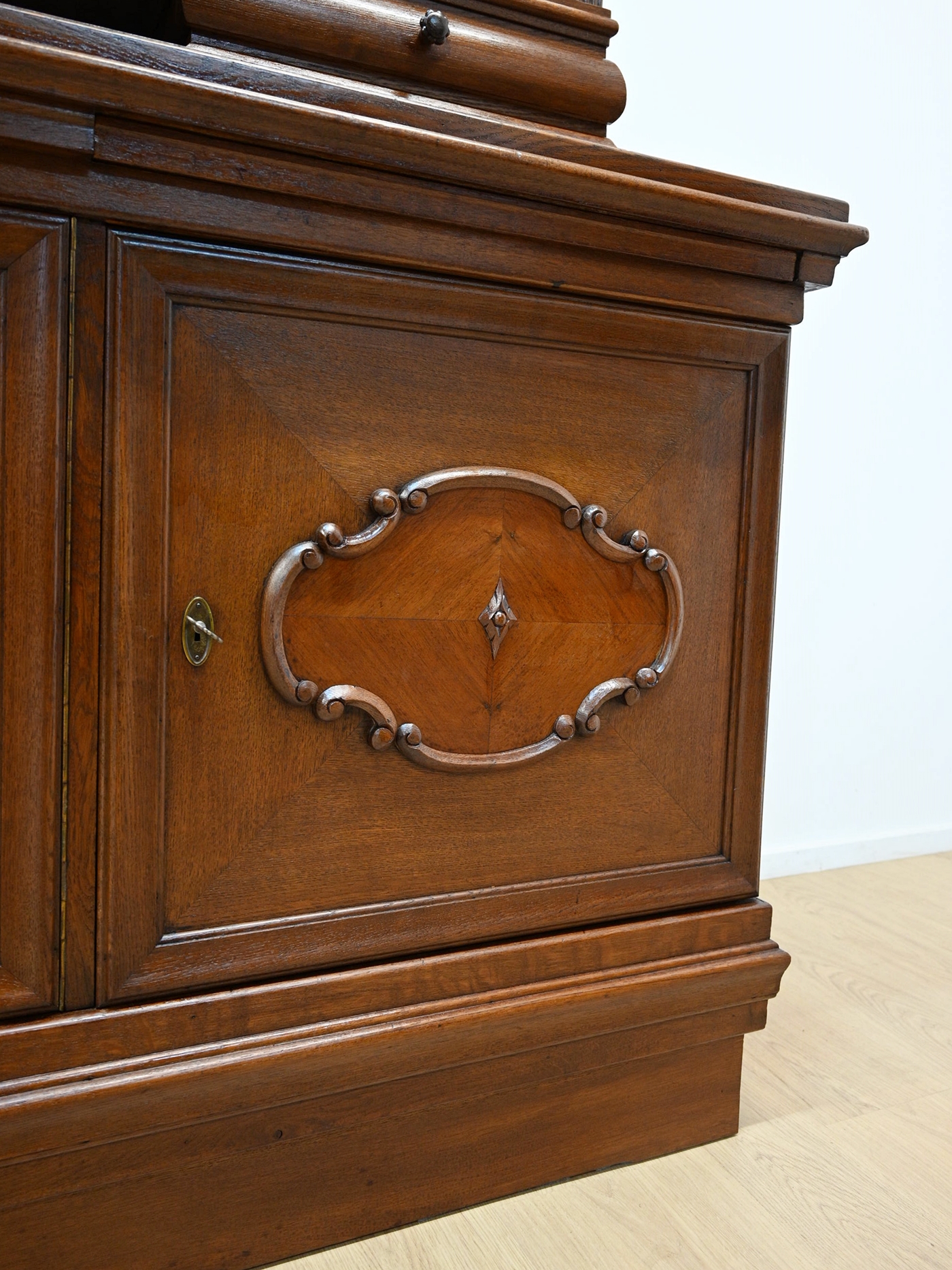 Wykończony jest politurą szelakową w półmacie.