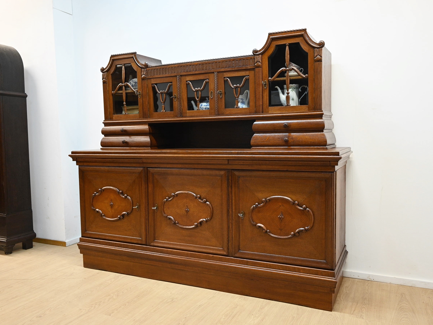 Stan bardzo dobry. Mebel przygotowany do użytkowania. Odświeżone zostały powierzchnie zewnętrzne jak i środek mebla. Mebel ma już swoje lata i ślady minionego czasu, które nie wpływają na jego odbiór estetyczny, są świadectwem autentyczności mebla. Kredens od razu można wstawić do mieszkania.