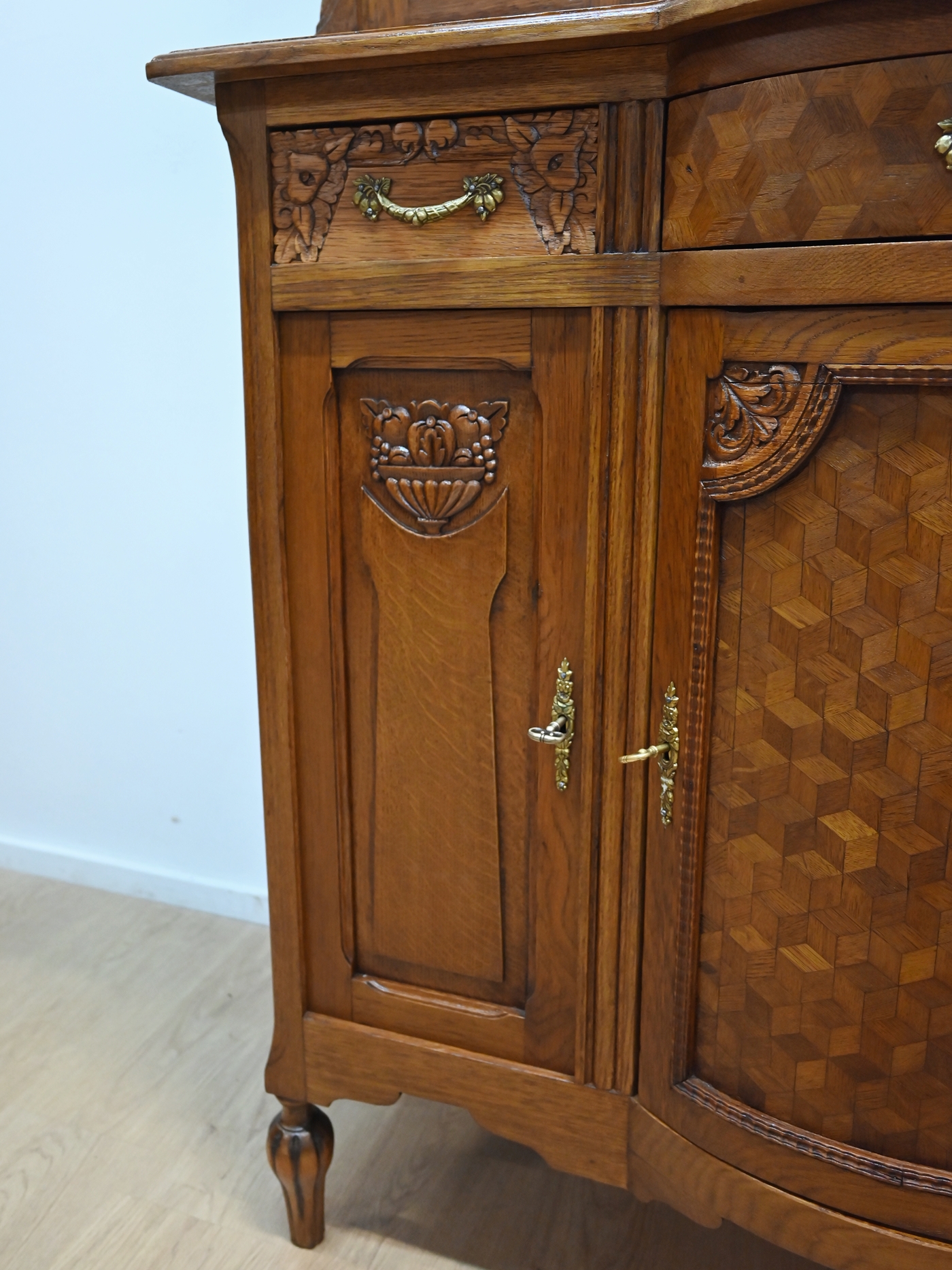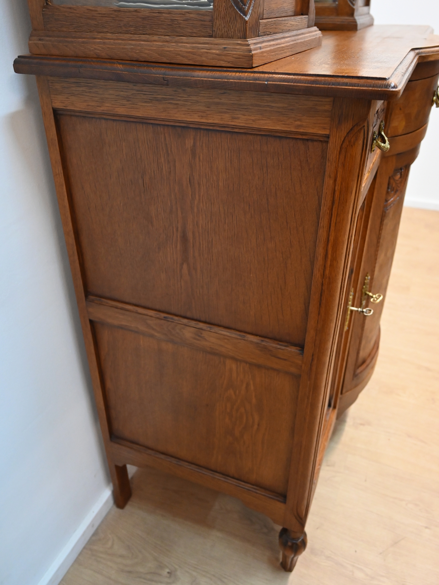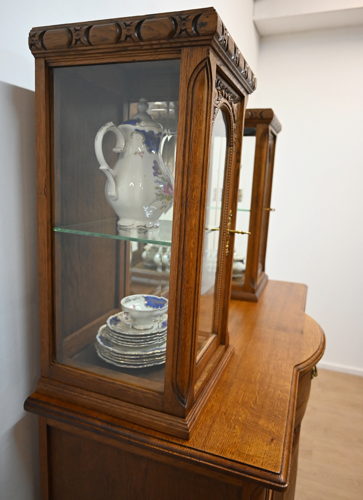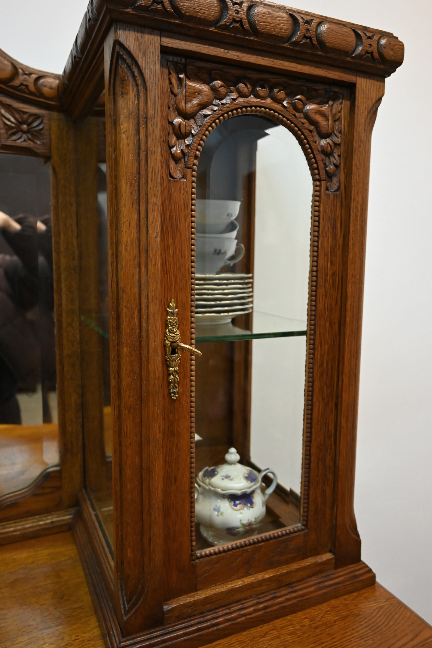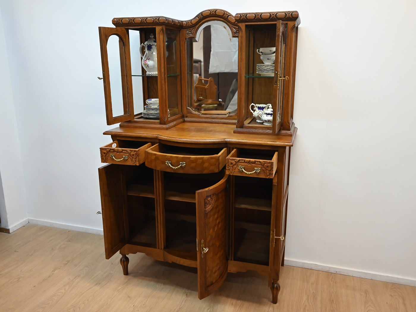 Stan bardzo dobry. Mebel przygotowany do użytkowania. Odświeżone zostały powierzchnie zewnętrzne jak i środek mebla. Mebel ma już swoje lata i ślady minionego czasu, które nie wpływają na jego odbiór estetyczny, są świadectwem autentyczności mebla. Kredens od razu można wstawić do mieszkania.