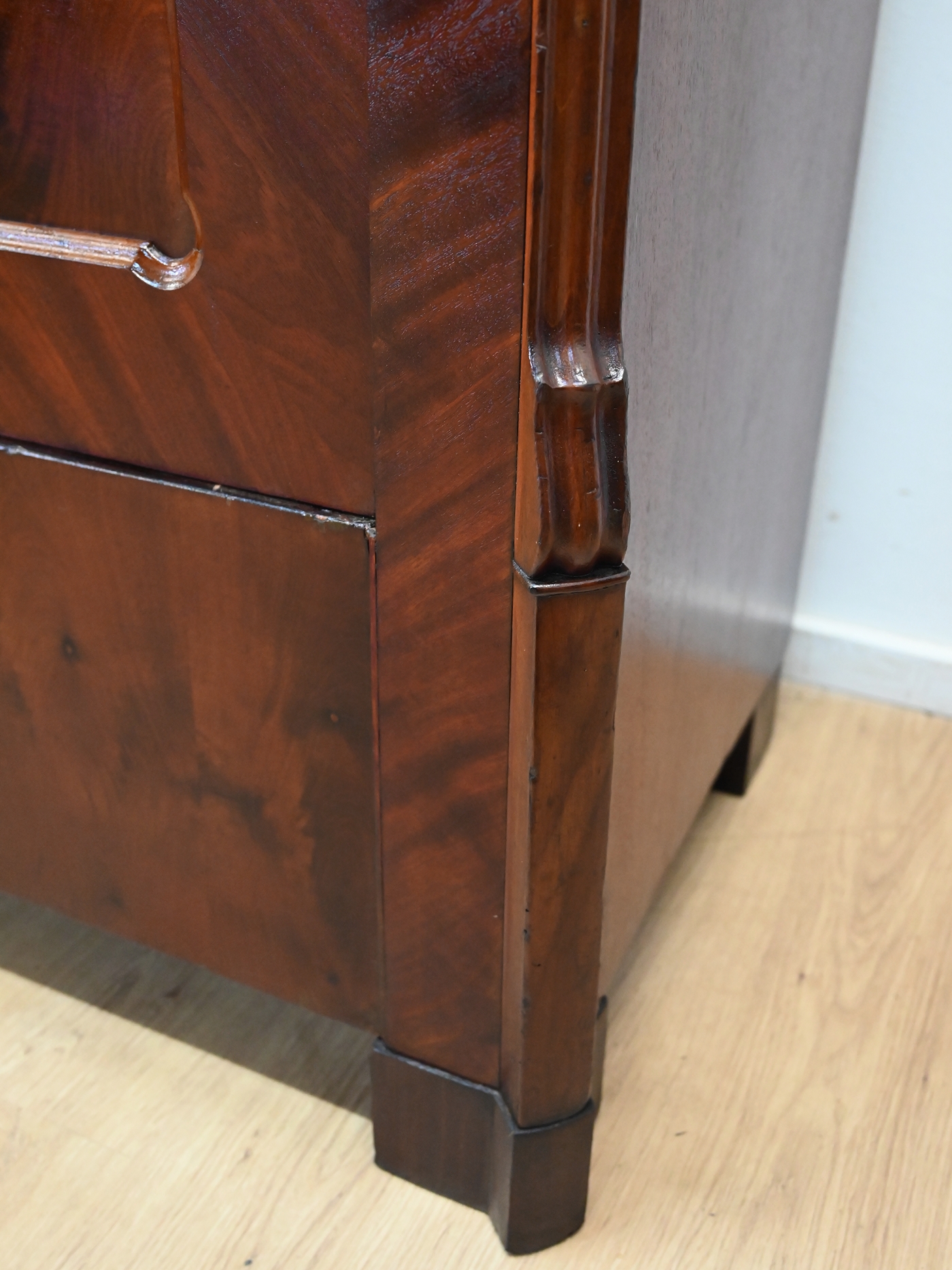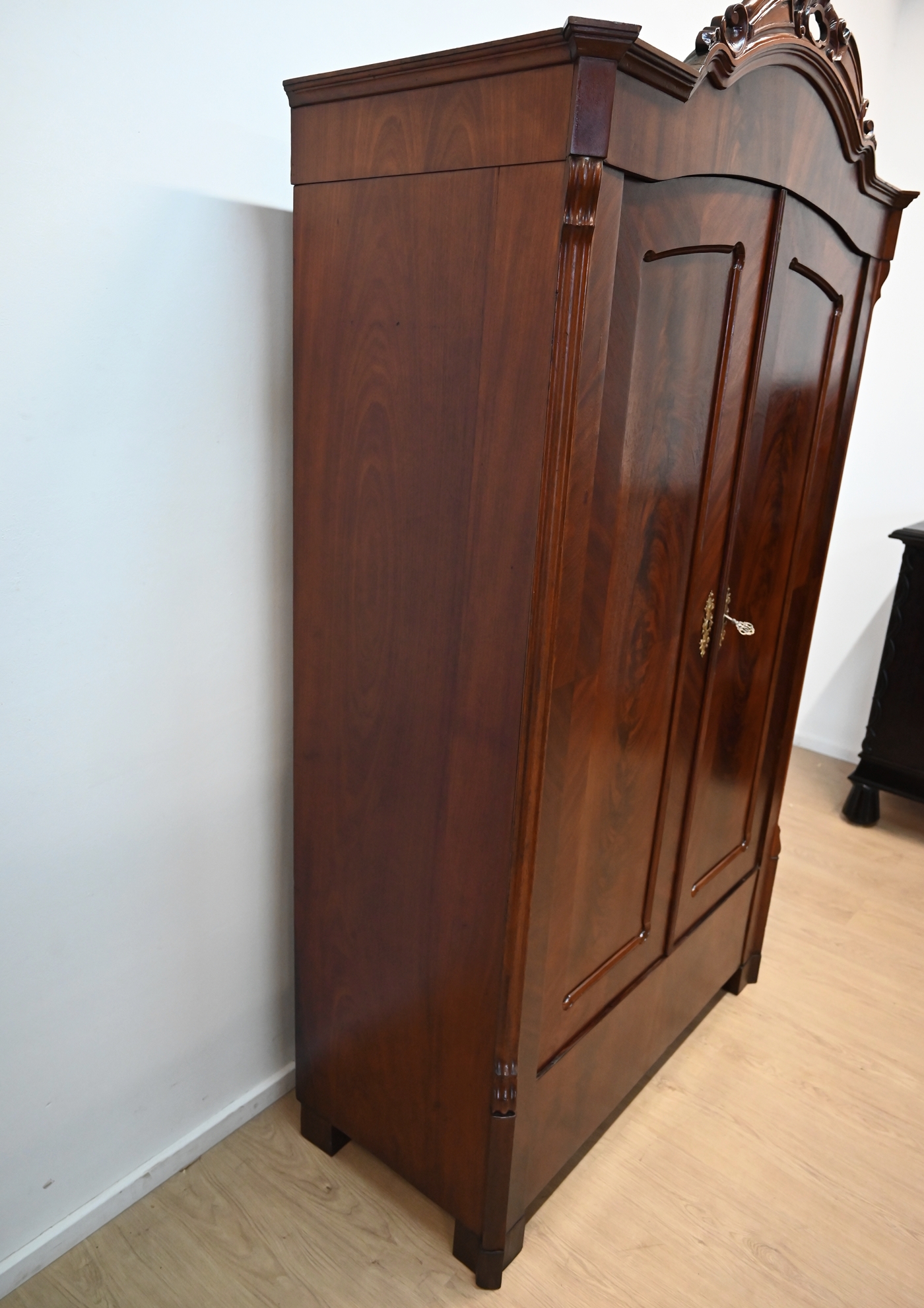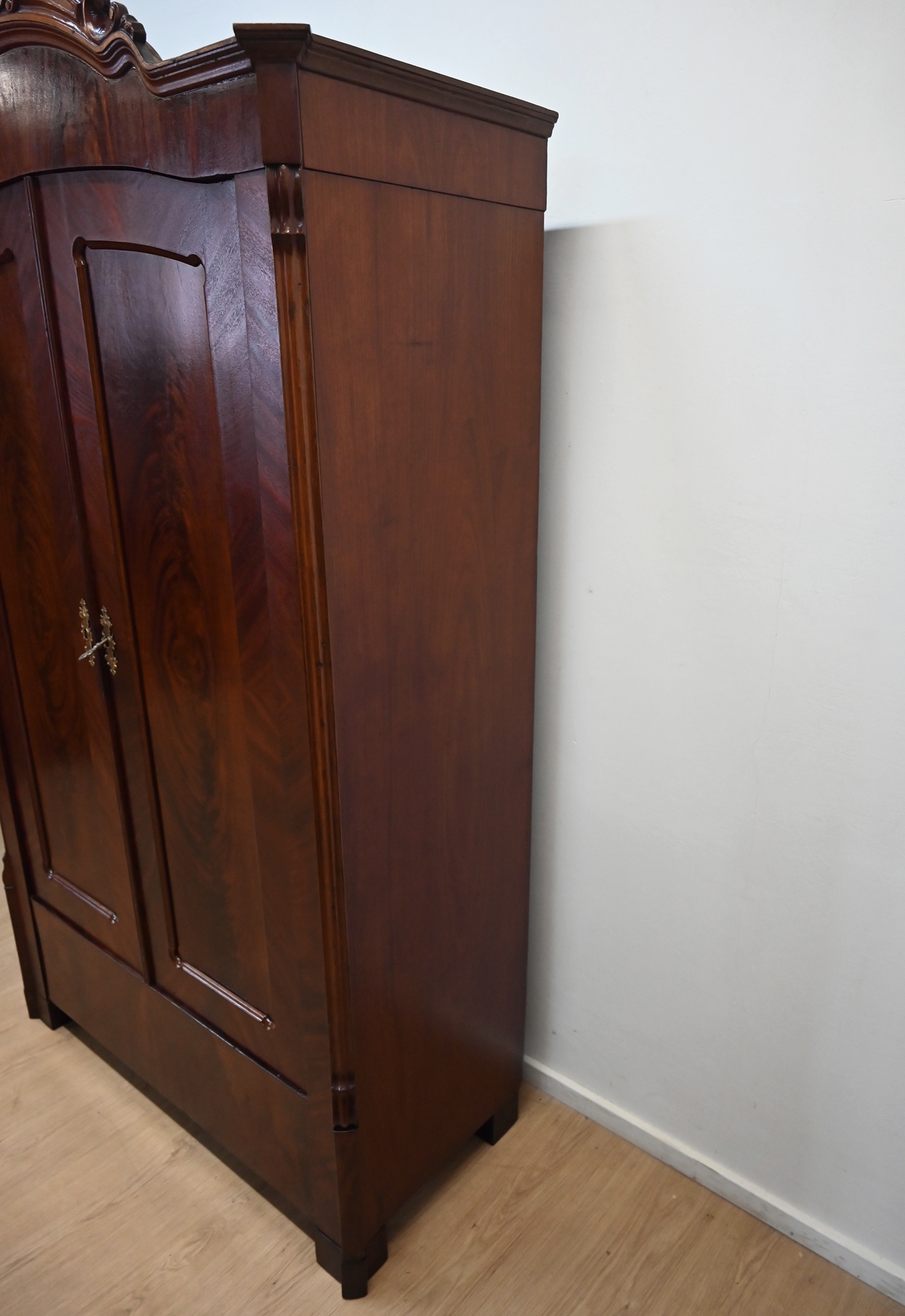 Wykonany jest w całości z drewna, fornirowany mahoniem.