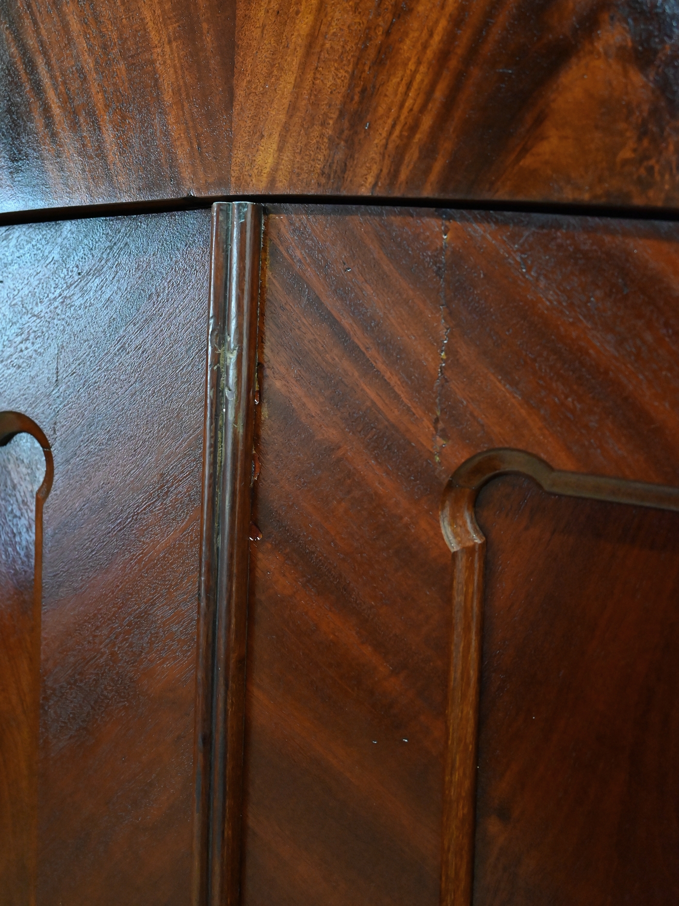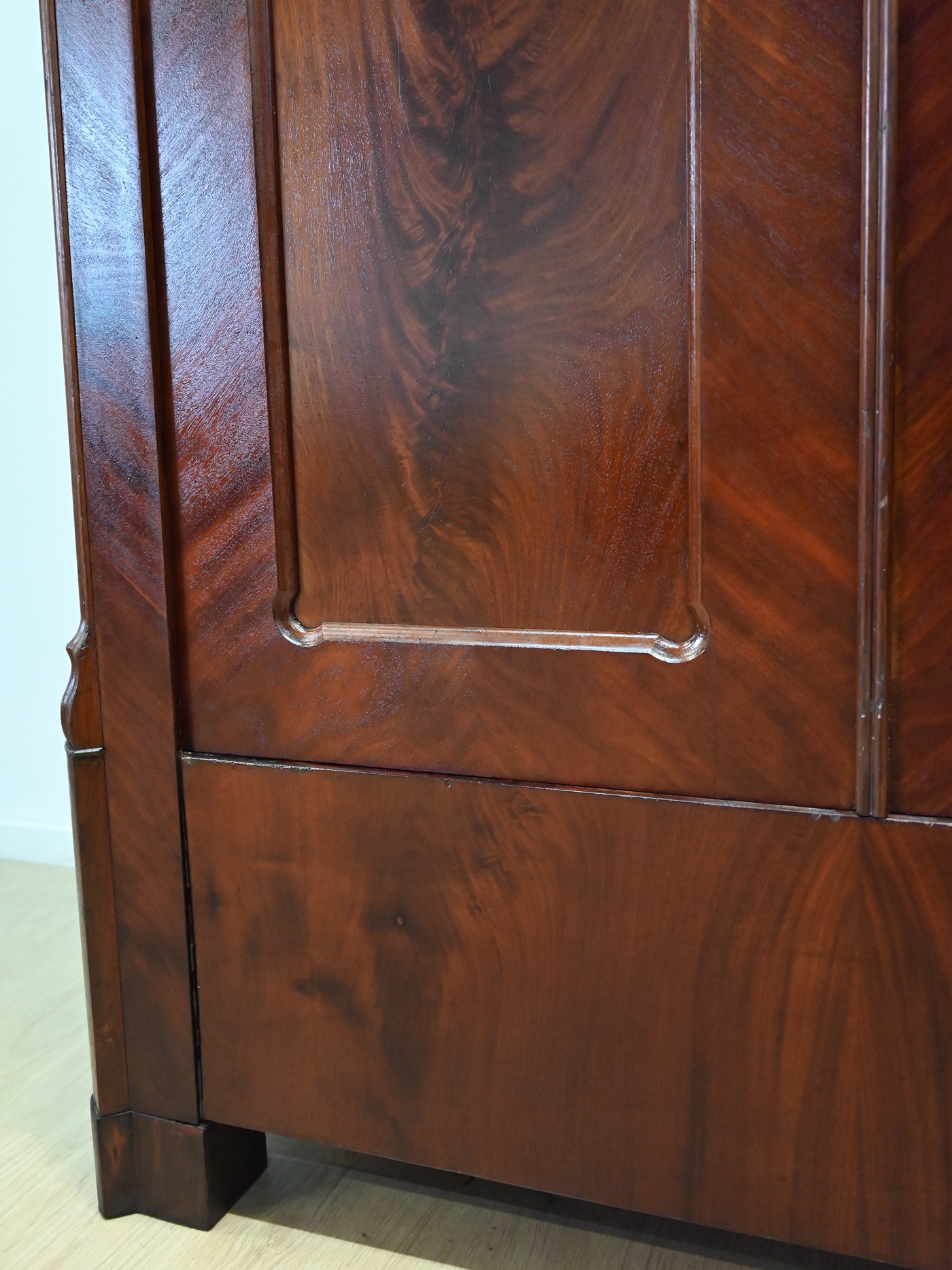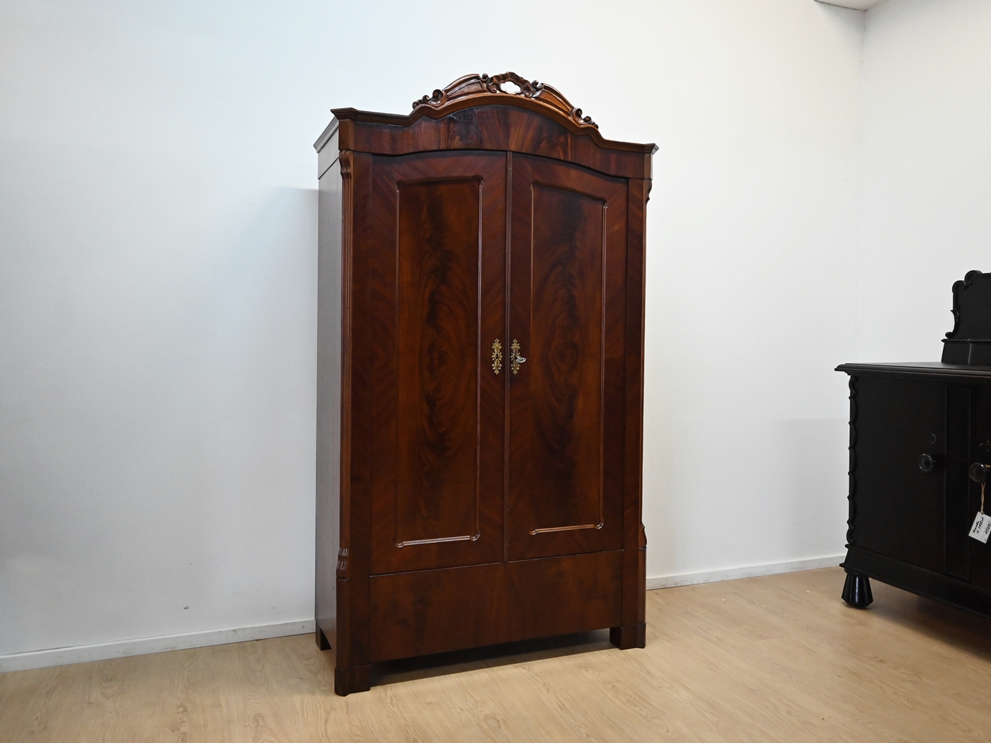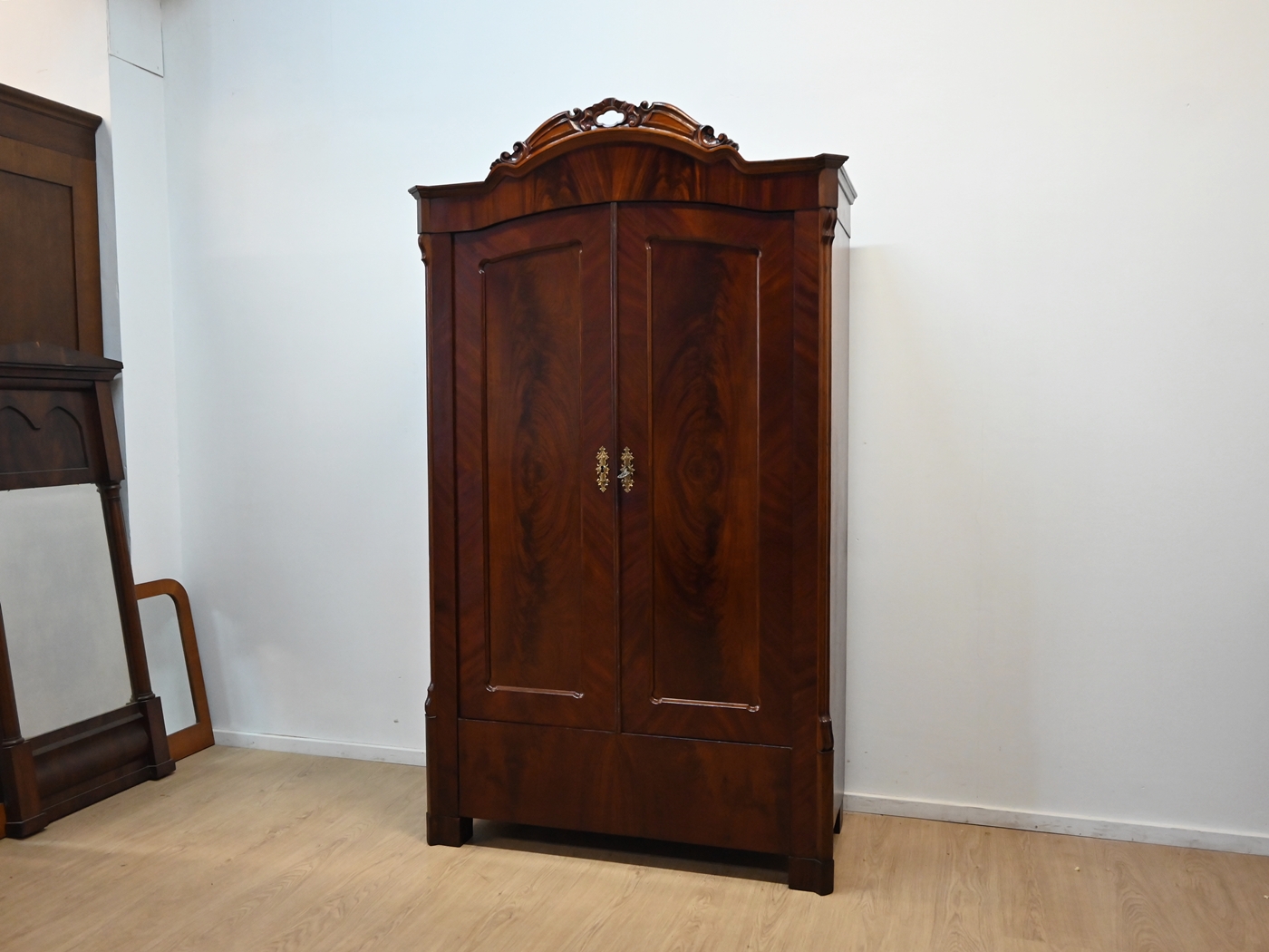 Wykonany jest w całości z drewna, fornirowany mahoniem.