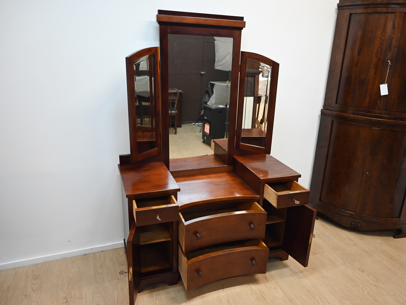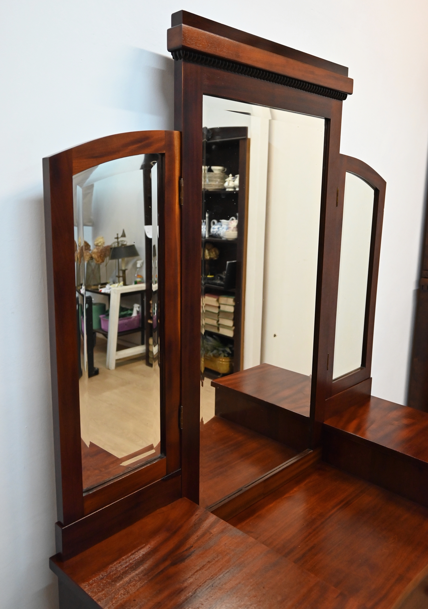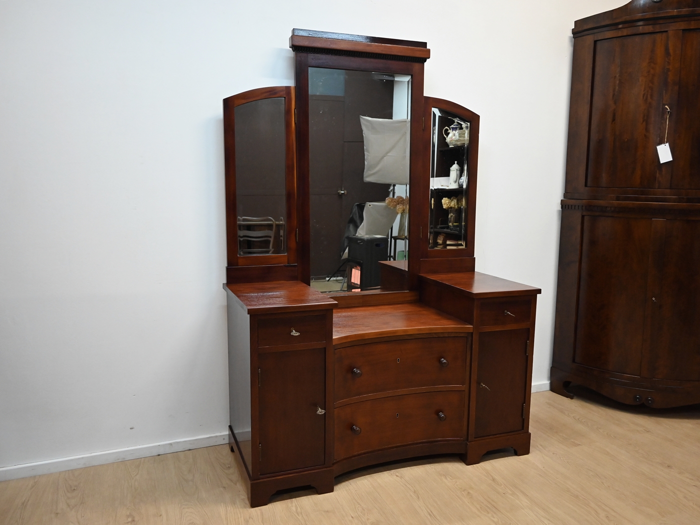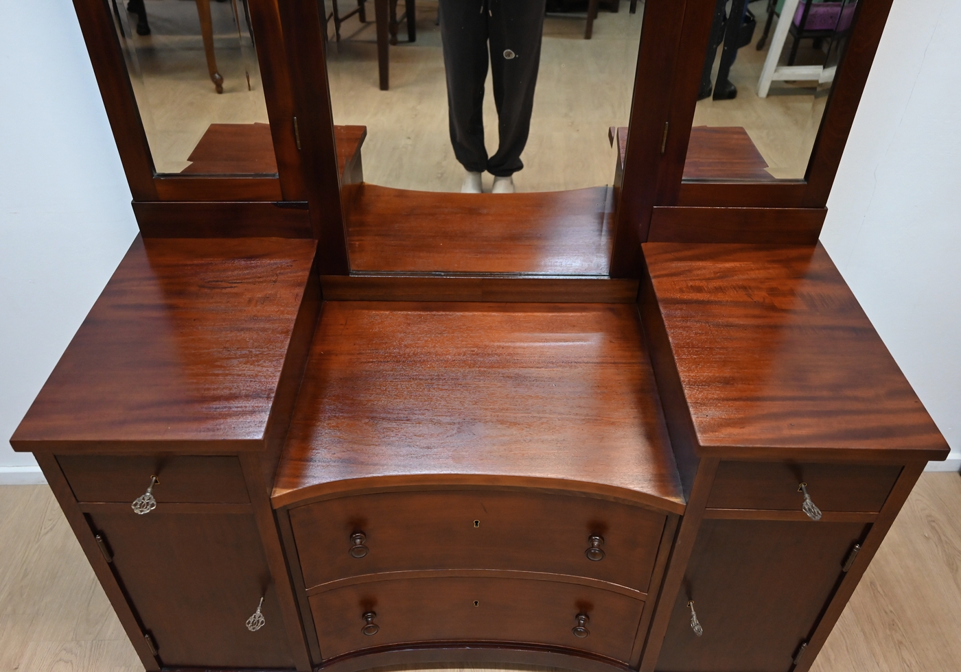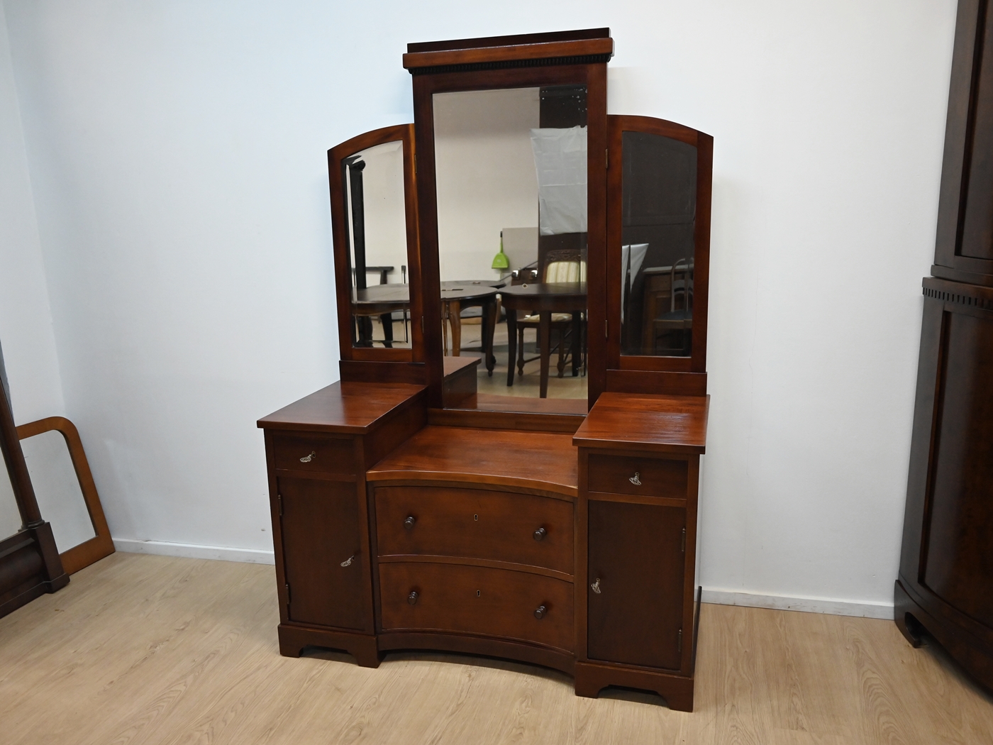 mahoniowa toaletka z bocznymi lustrami