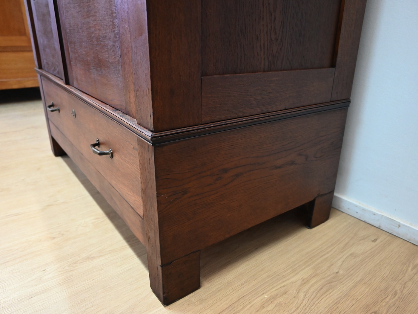 Stan bardzo dobry. Mebel przygotowany do użytkowania. Odświeżone zostały powierzchnie zewnętrzne jak i środek mebla. Mebel ma już swoje lata i ślady minionego czasu, które nie wpływają na jego odbiór estetyczny, są świadectwem autentyczności mebla. Szafę od razu można wstawić do mieszkania.