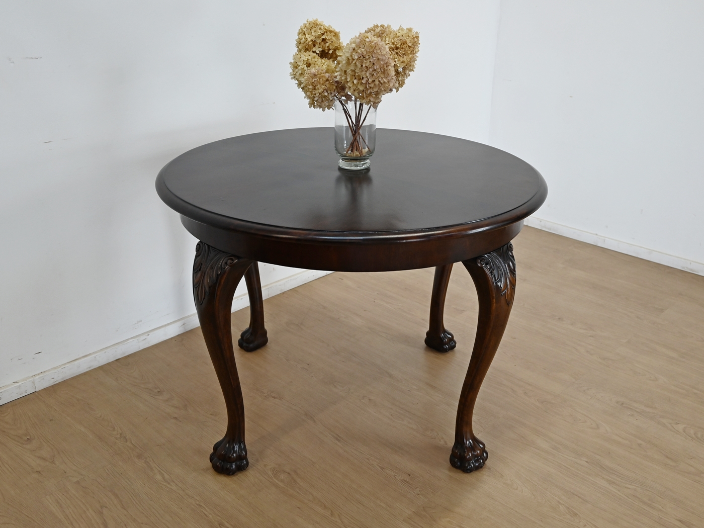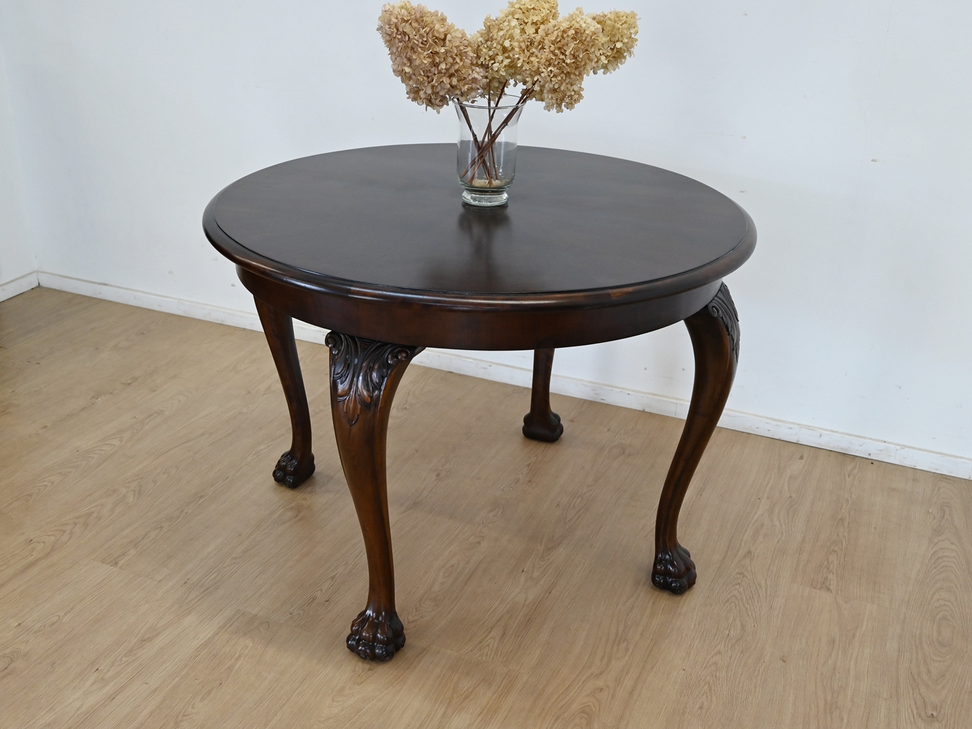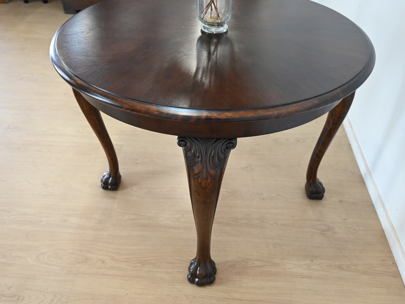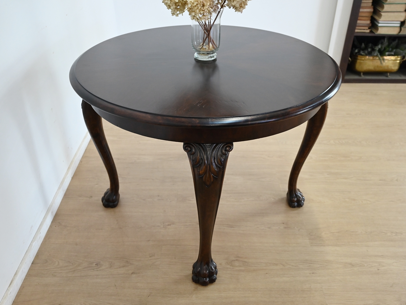 okrągły orzechowy stół kawowy