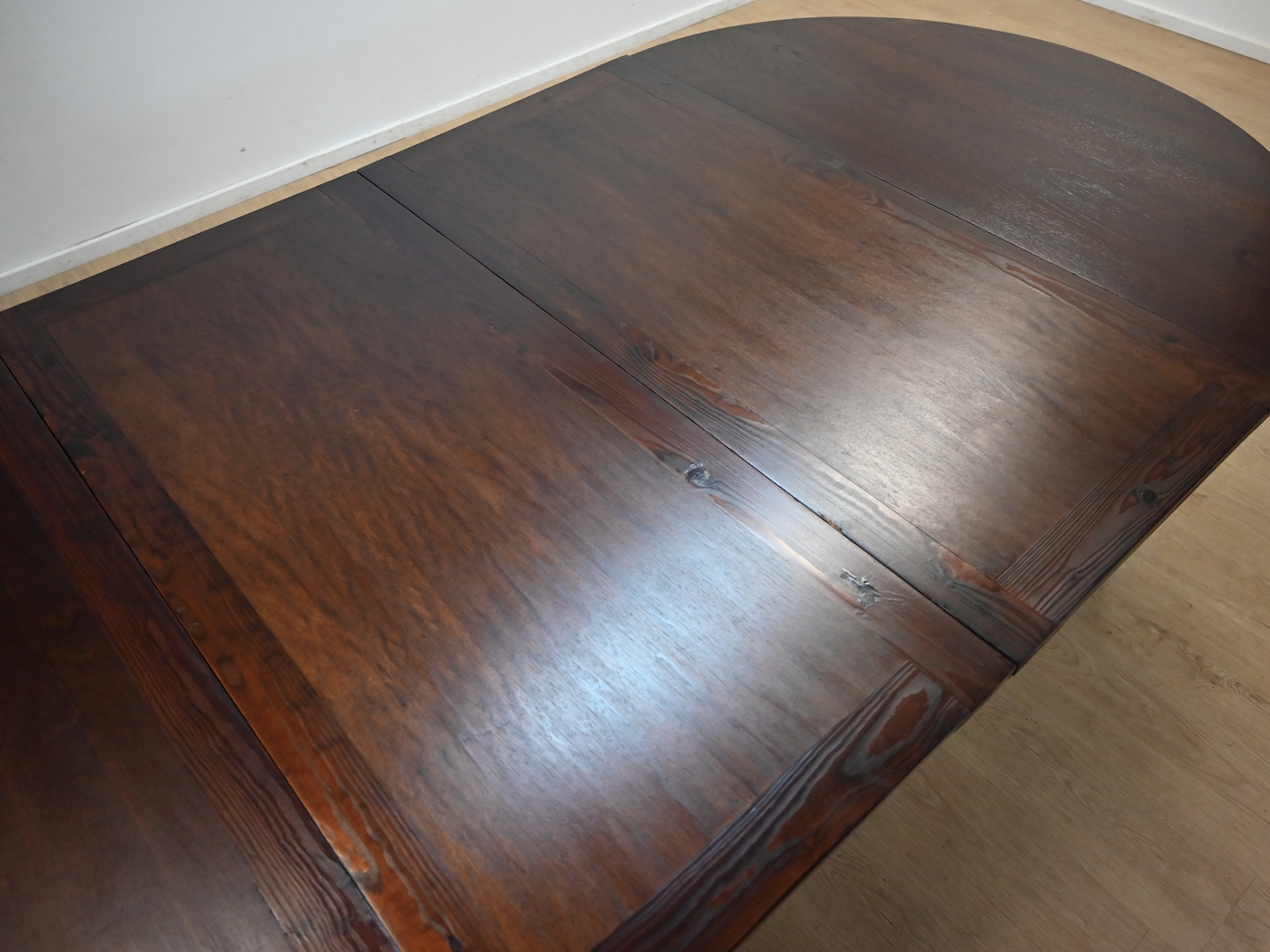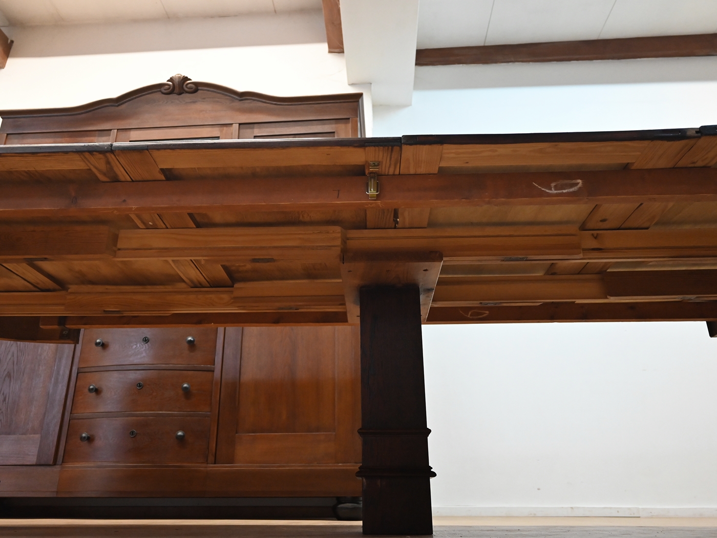 Blaty dodatkowe dodatkowo posiadają nowoczesne klamry spinające. Stół po rozłożeniu stabilizują również dwie 250 centymetrowe belki.