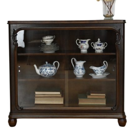 Stan bardzo dobry. Mebel przygotowany do użytkowania. Odświeżone zostały powierzchnie zewnętrzne jak i środek mebla. Mebel ma już swoje lata i ślady minionego czasu, które nie wpływają na jego odbiór estetyczny, są świadectwem autentyczności mebla. Witrynę od razu można wstawić do mieszkania.