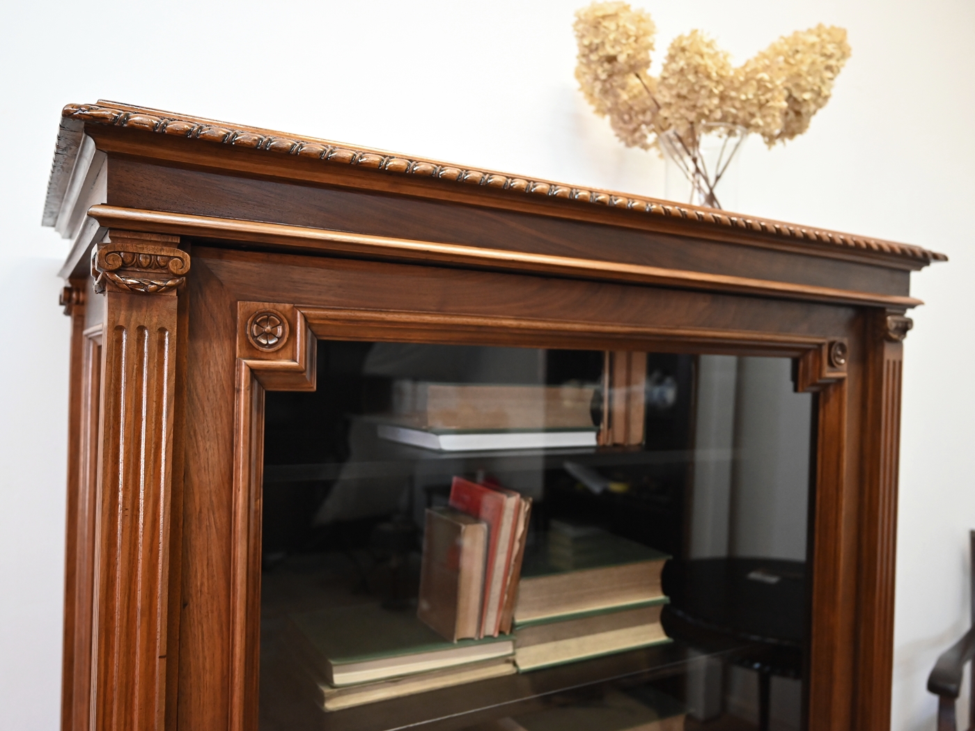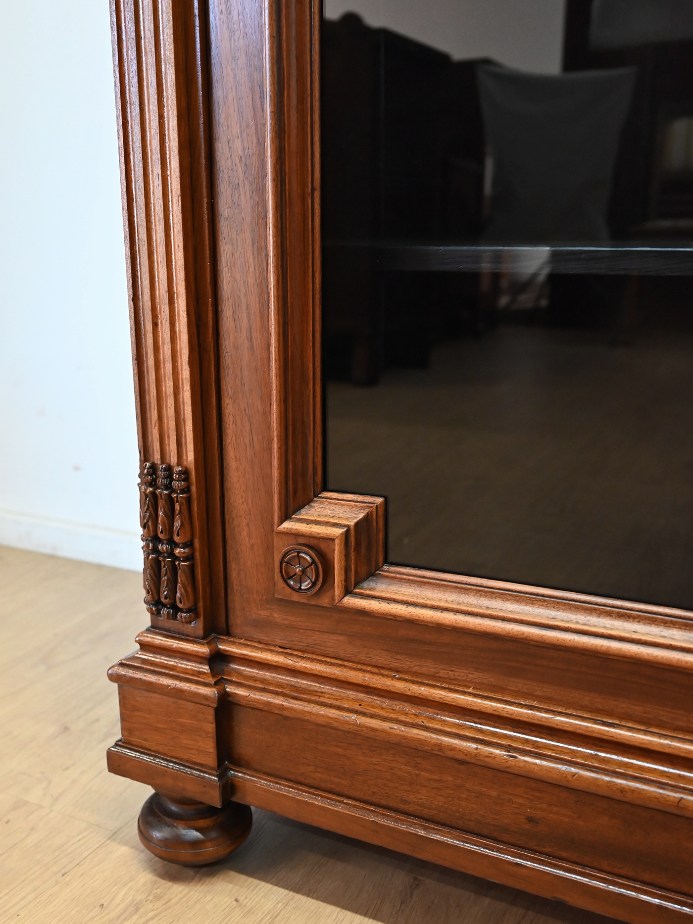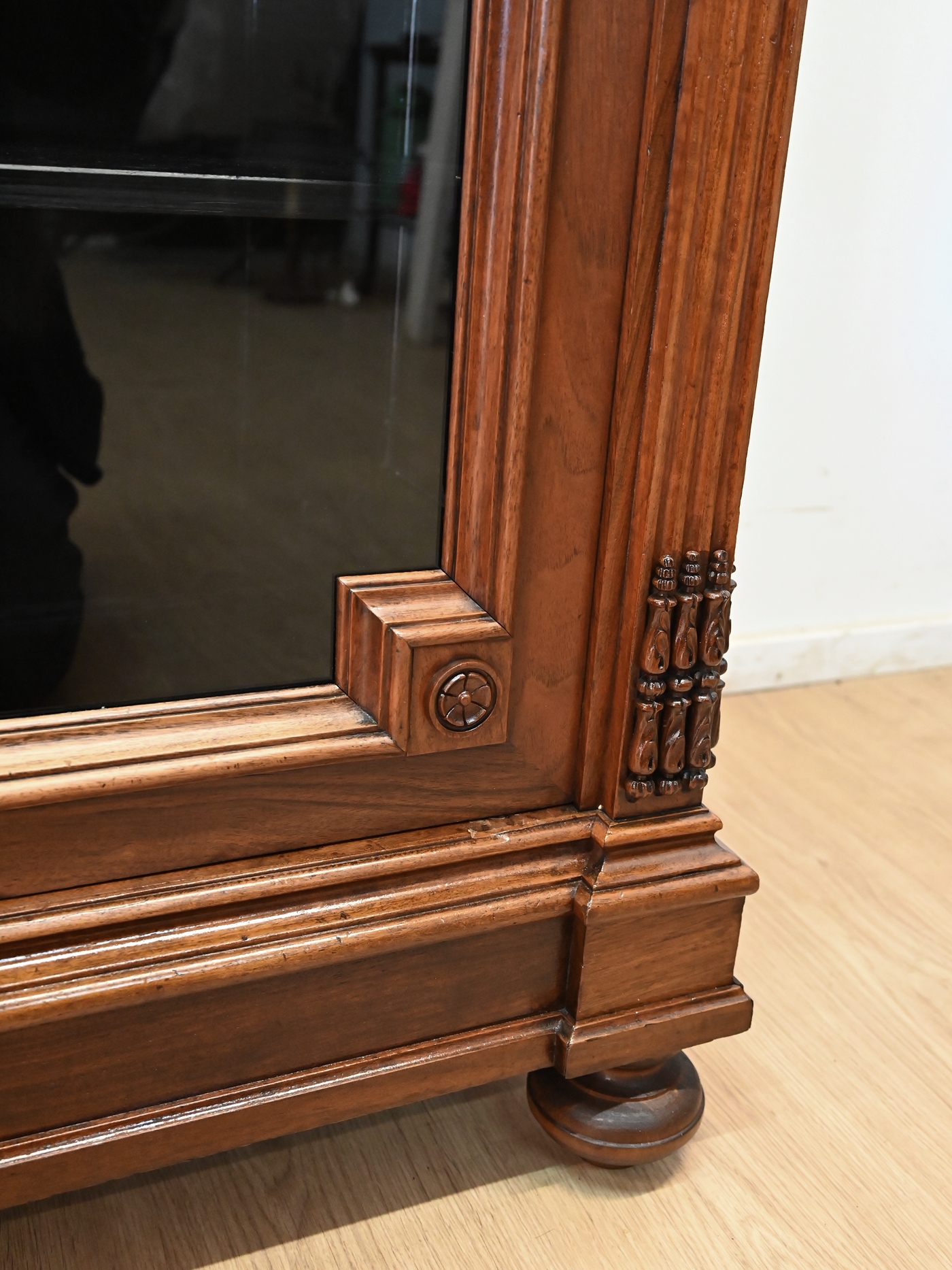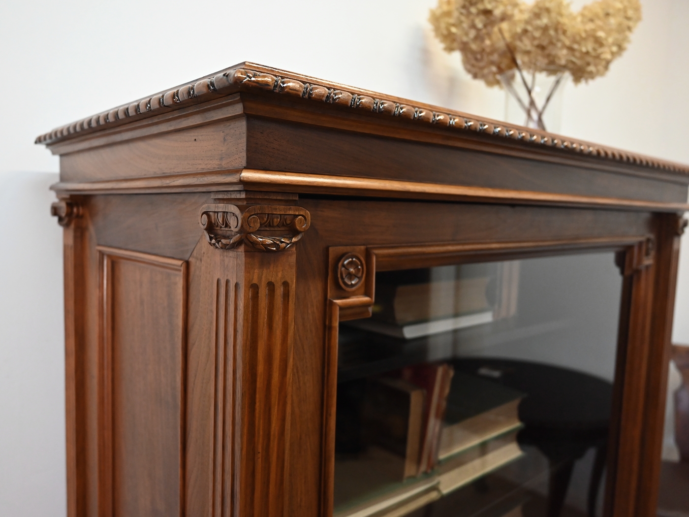 Wykończony jest politurą szelakową w półmacie.