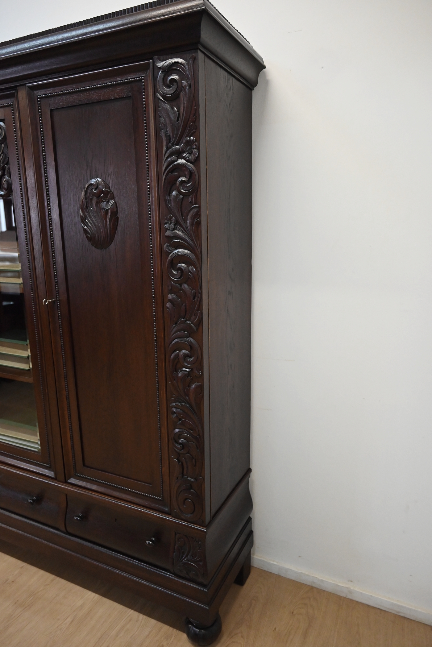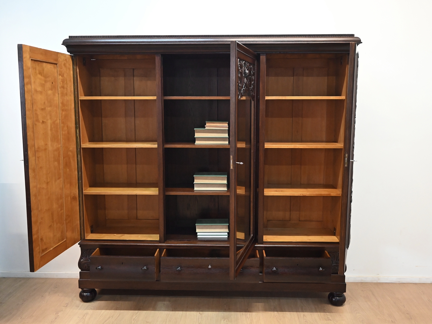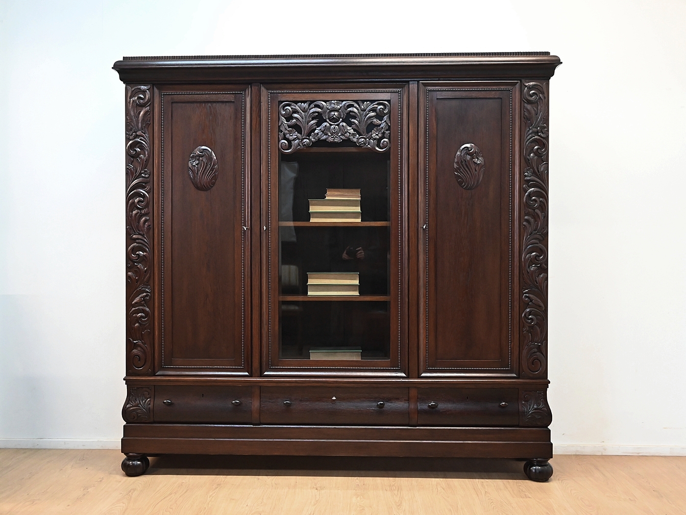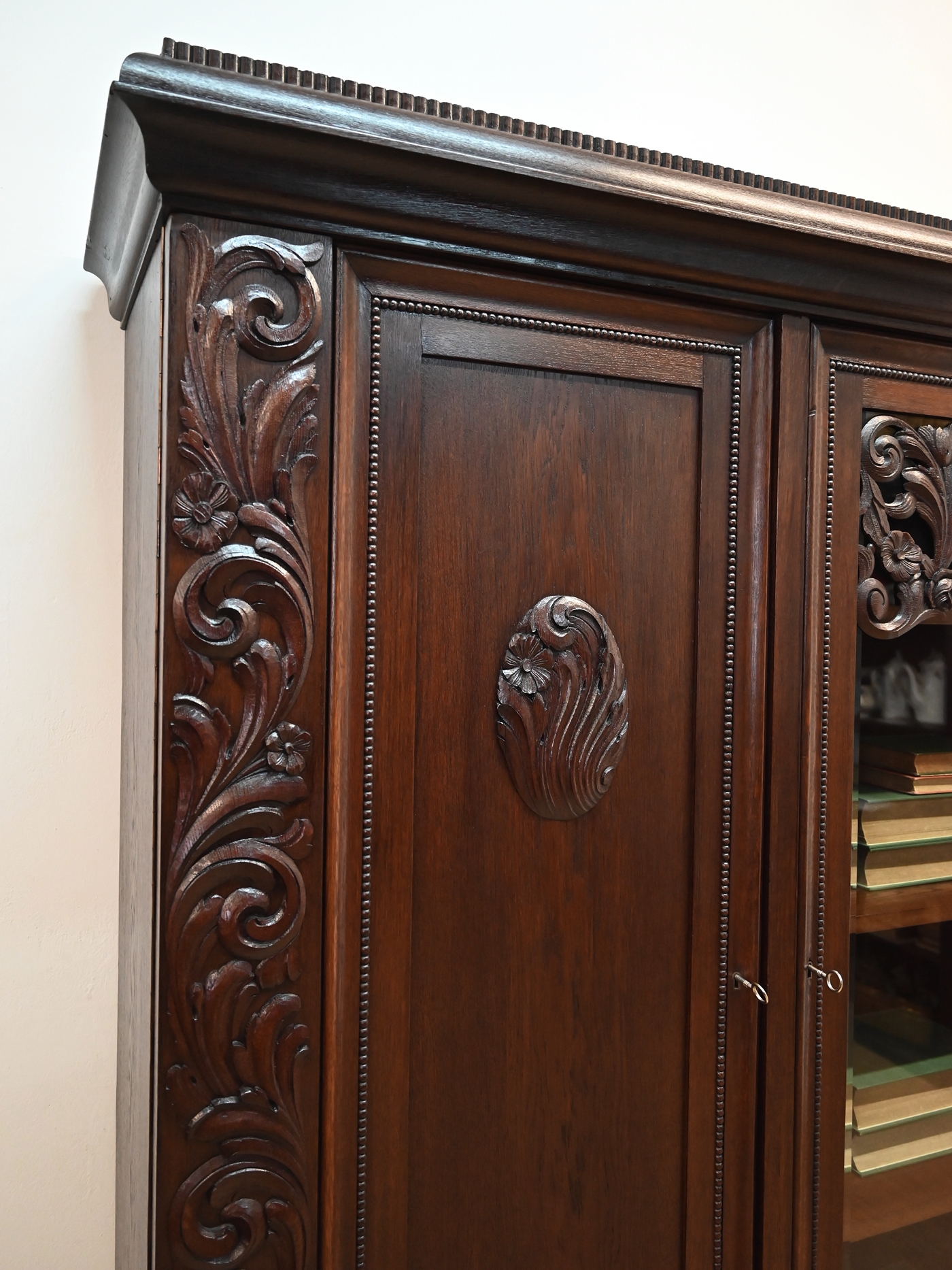 Stan bardzo dobry. Mebel przygotowany do użytkowania. Odświeżone zostały powierzchnie zewnętrzne jak i środek mebla. Mebel ma już swoje lata i ślady minionego czasu, które nie wpływają na jego odbiór estetyczny, są świadectwem autentyczności mebla. Biblioteka od razu można wstawić do mieszkania.