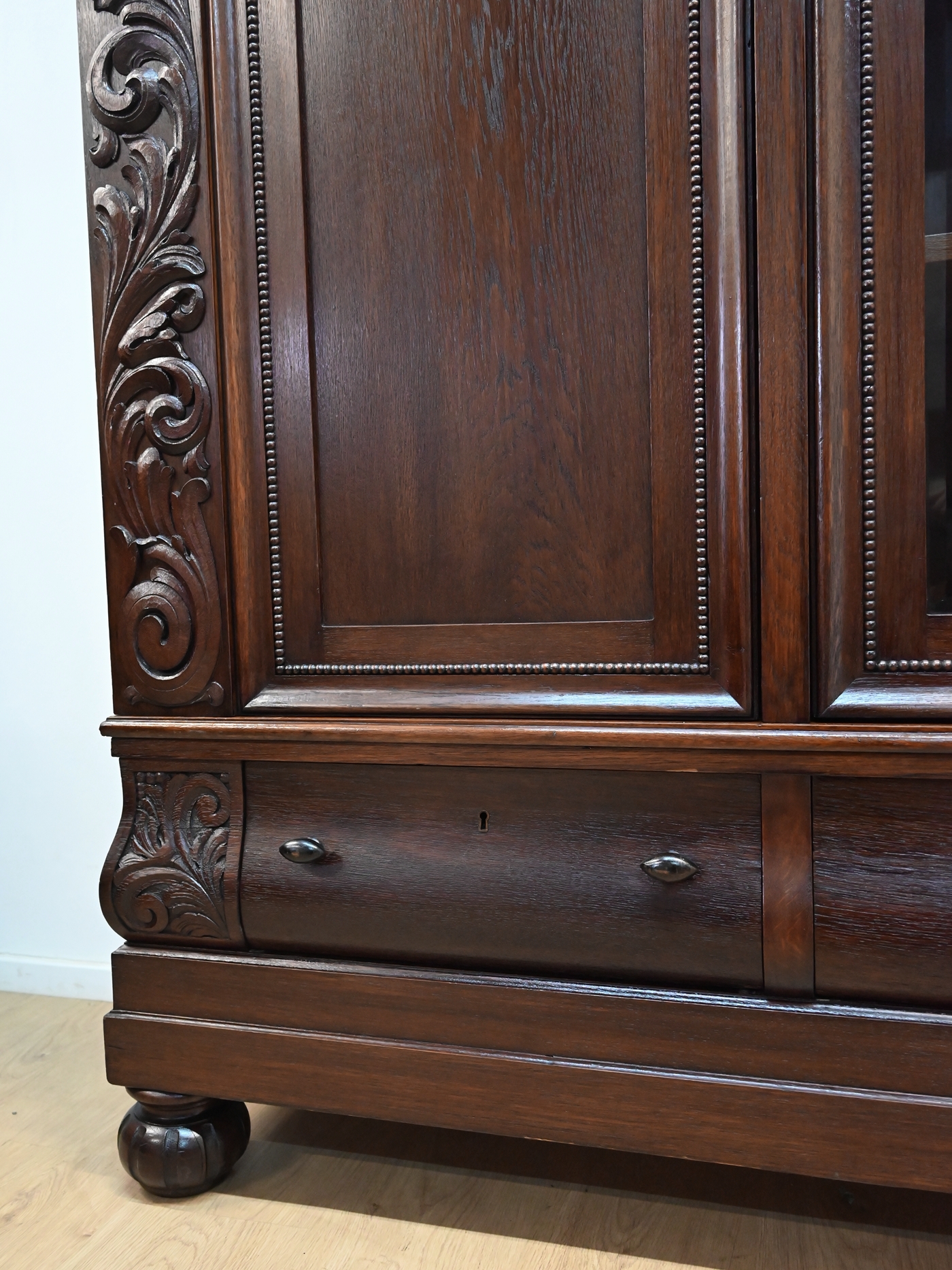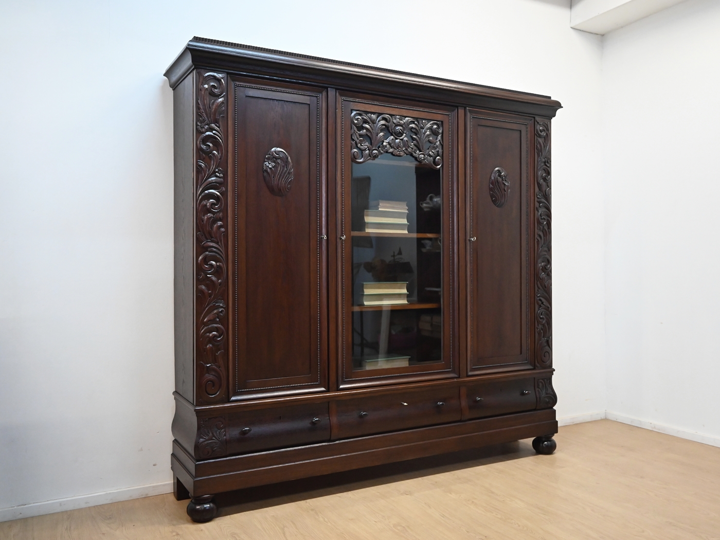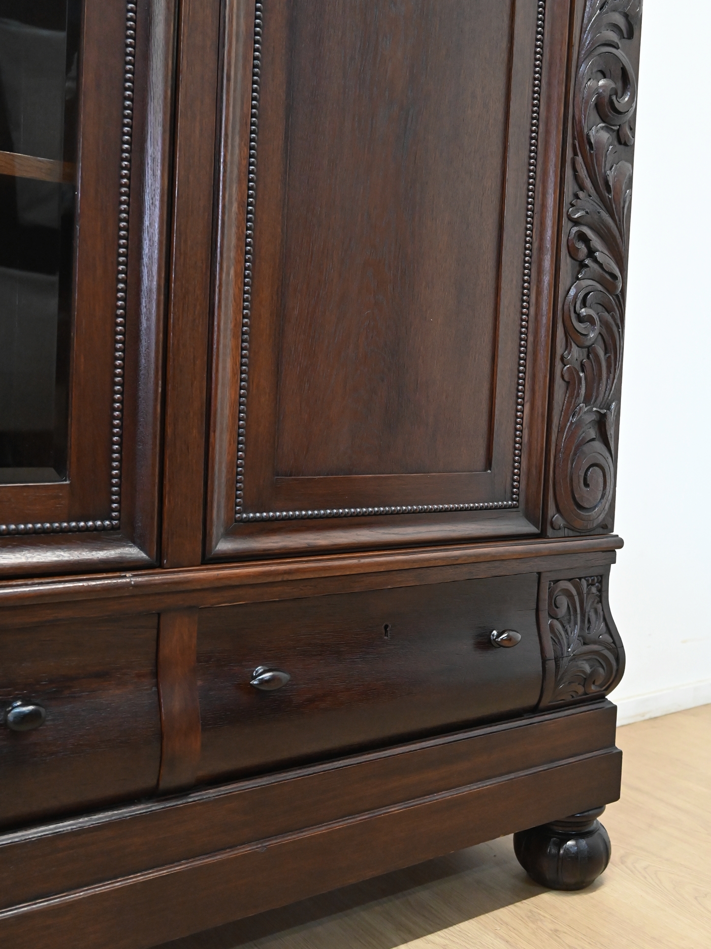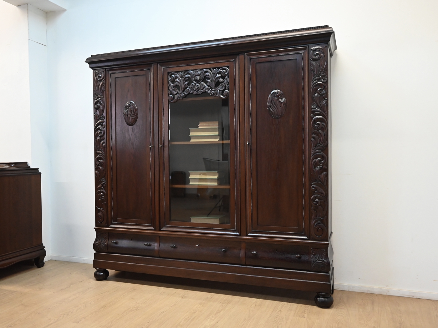Stan bardzo dobry. Mebel przygotowany do użytkowania. Odświeżone zostały powierzchnie zewnętrzne jak i środek mebla. Mebel ma już swoje lata i ślady minionego czasu, które nie wpływają na jego odbiór estetyczny, są świadectwem autentyczności mebla. Biblioteka od razu można wstawić do mieszkania.