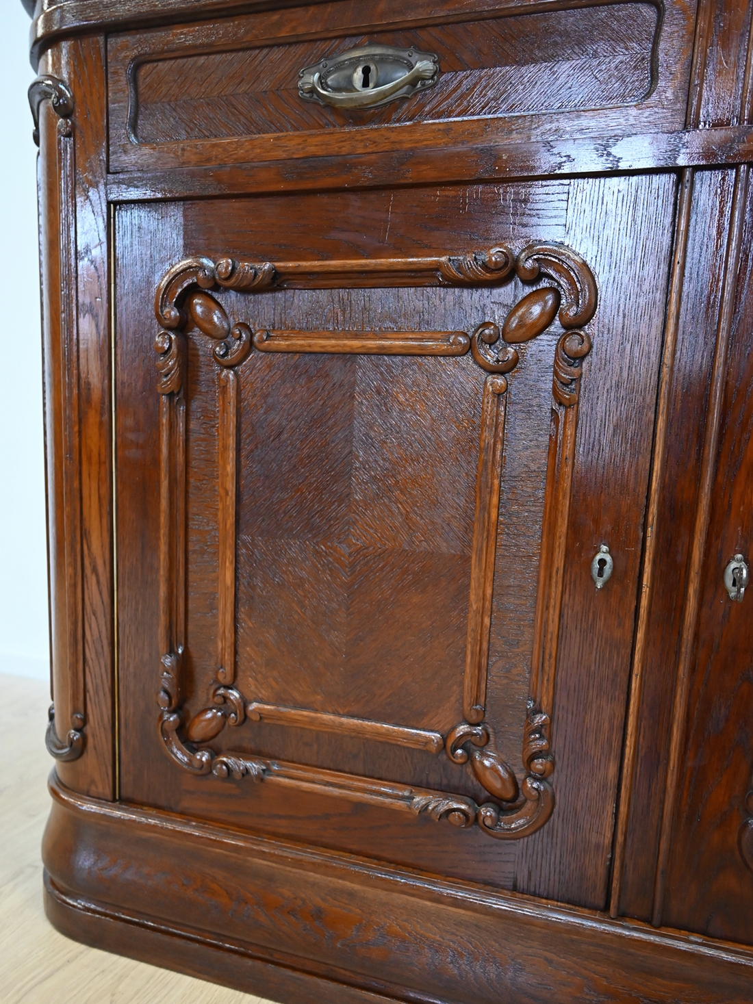 Zamek przy drzwiczkach sprawny, jeden oryginalny kluczyk w komplecie. Okucia oryginalne.