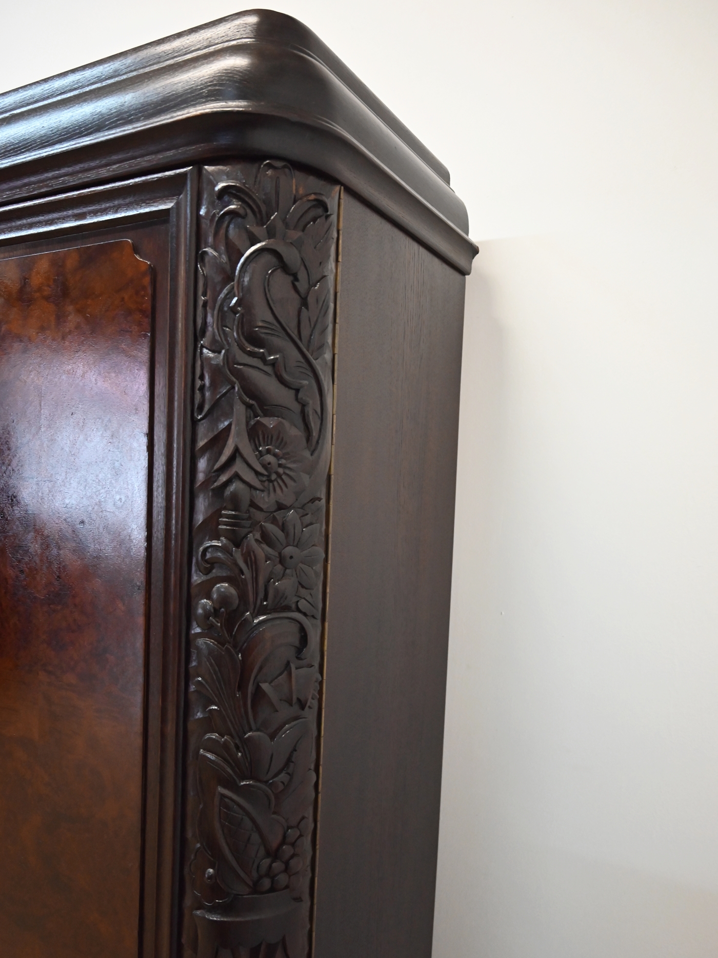 Wykończony jest politurą szelakową w półmacie.