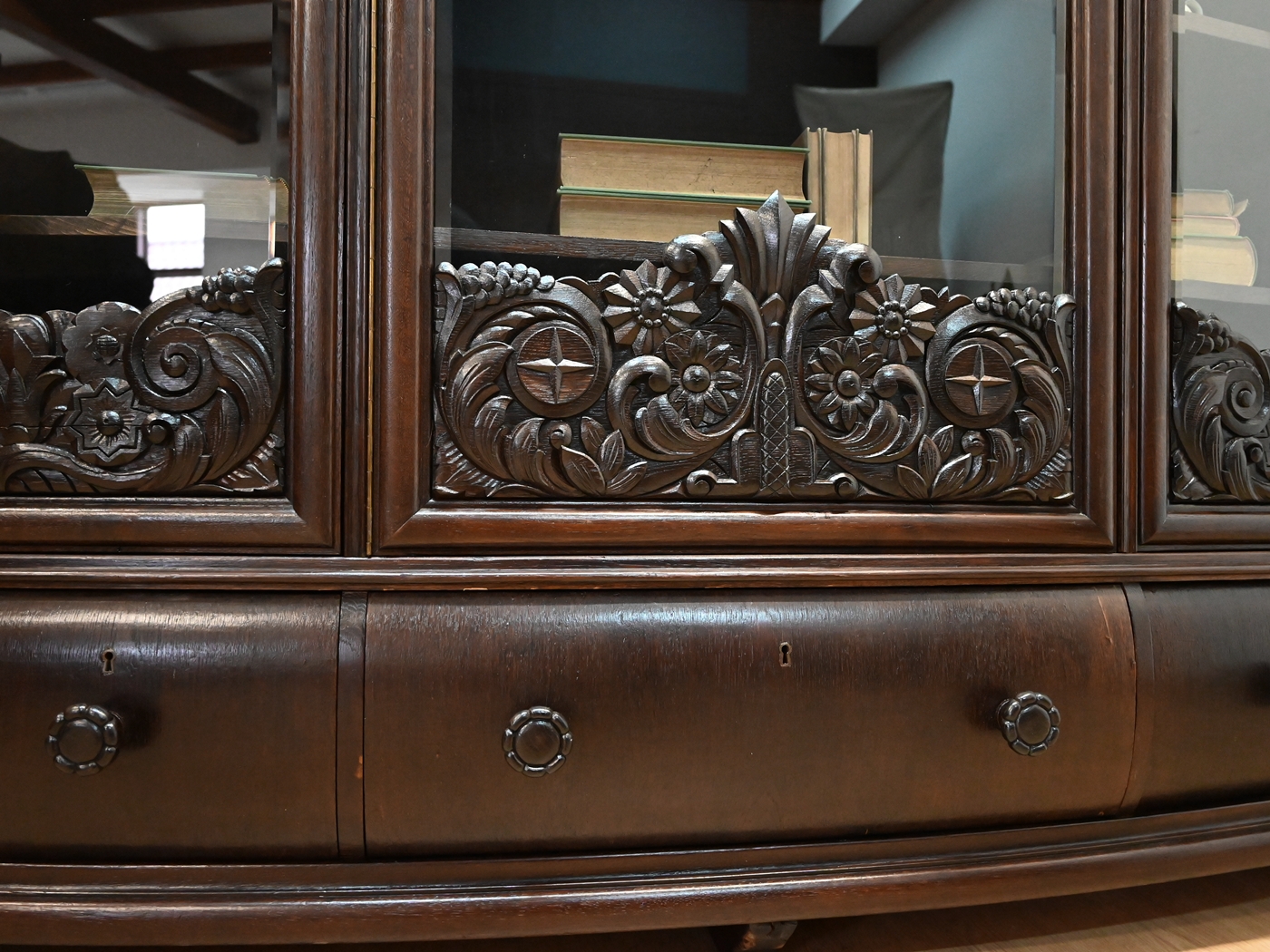 piękna okazała biblioteka z szufladami