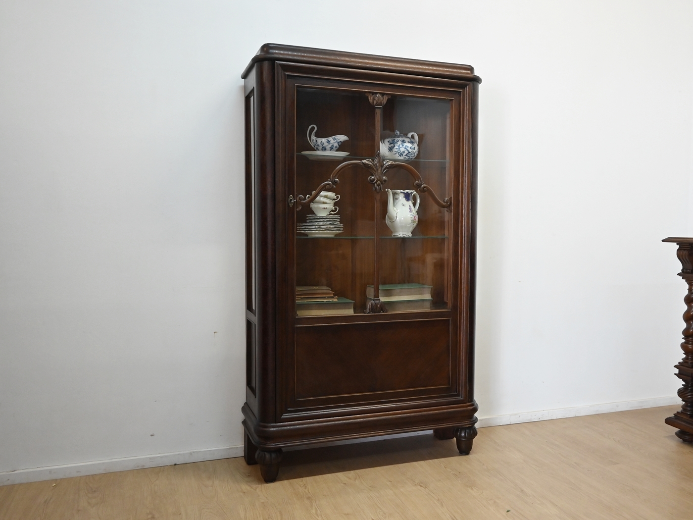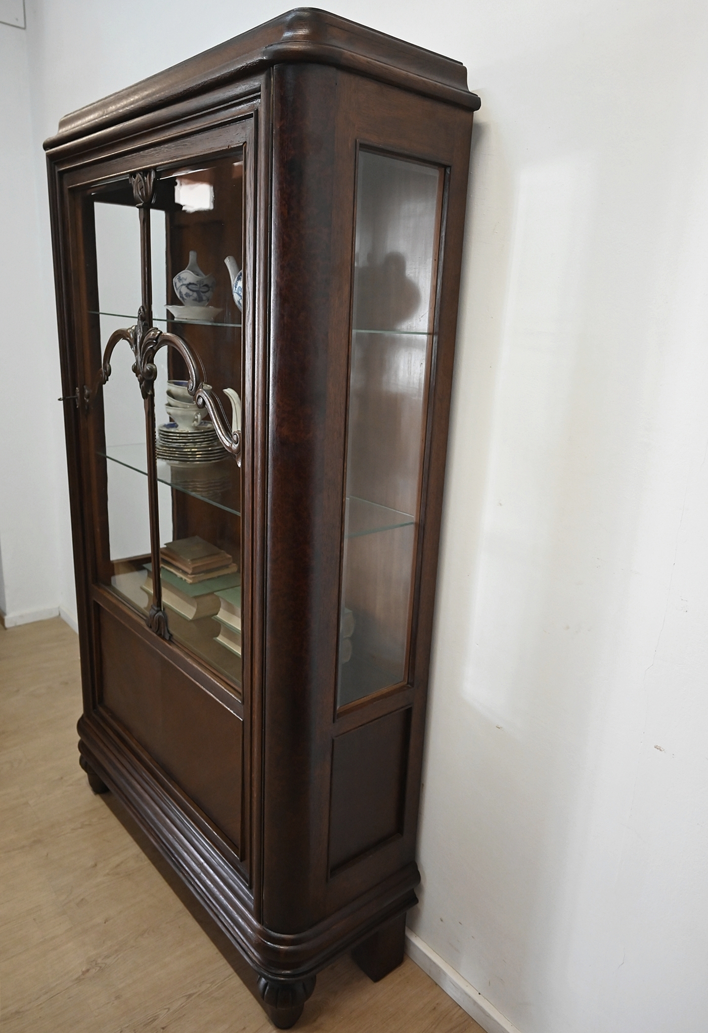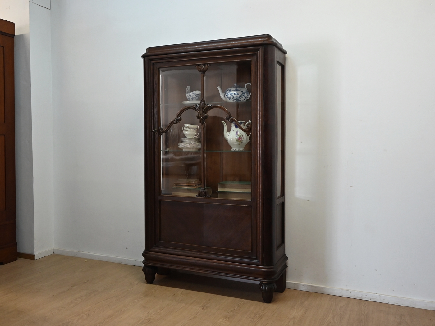 Stan dobry. Mebel przygotowany do użytkowania. Odświeżone zostały powierzchnie zewnętrzne jak i środek mebla. Mebel ma już swoje lata i ślady minionego czasu, które nie wpływają na jego odbiór estetyczny, są świadectwem autentyczności mebla. Serwantkę od razu można wstawić do mieszkania.