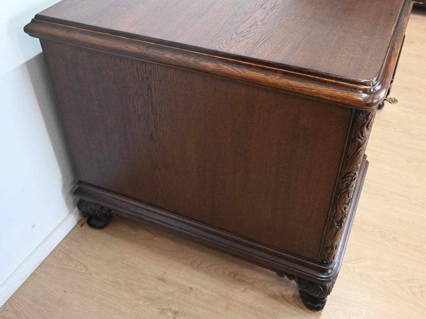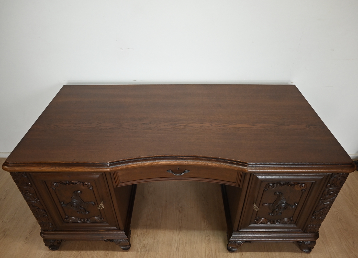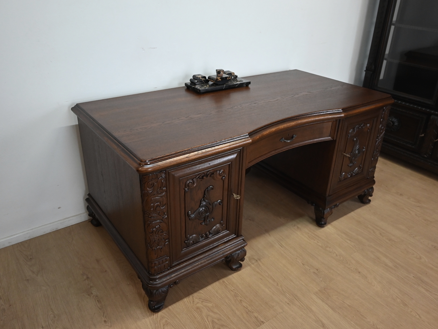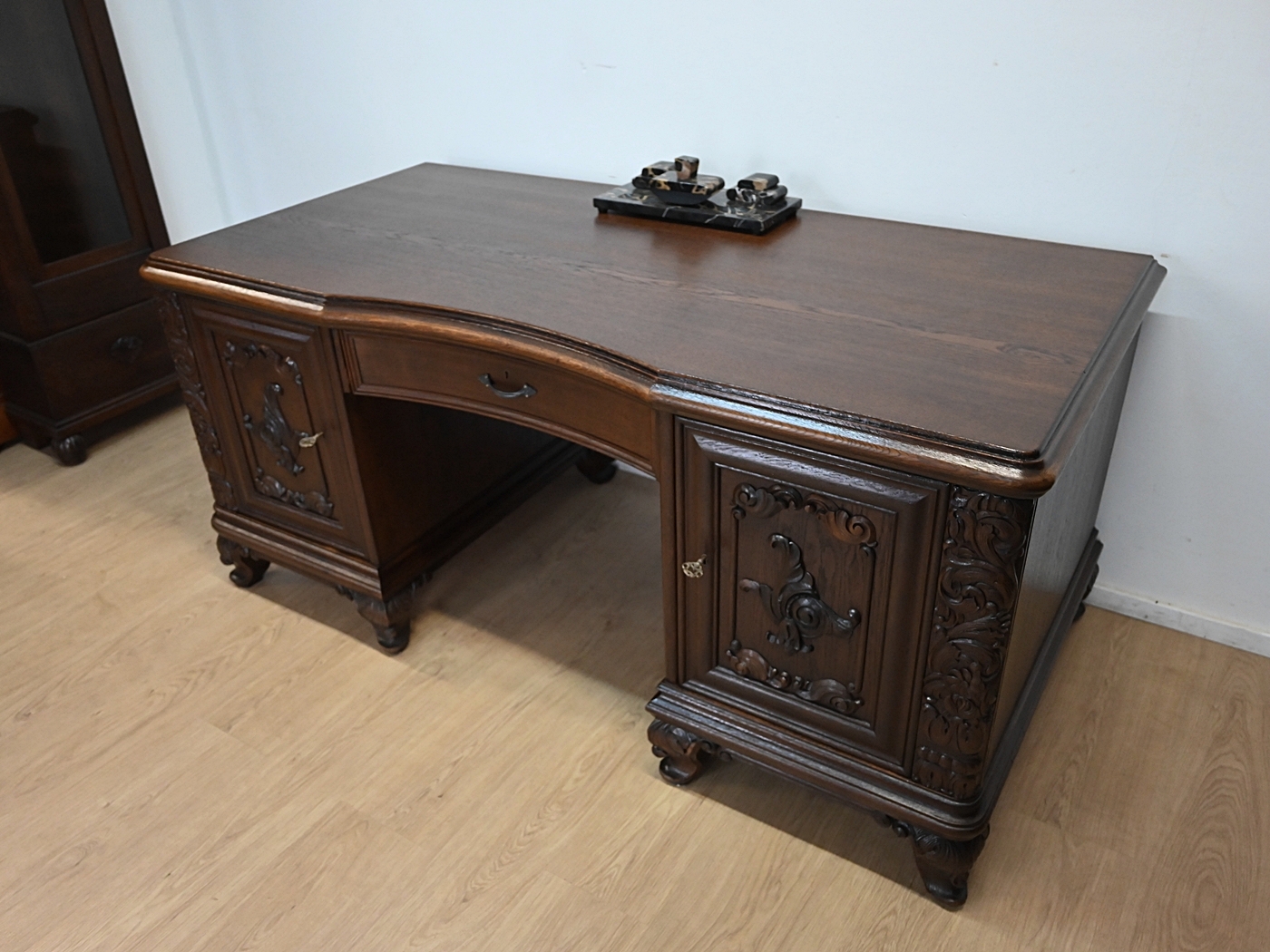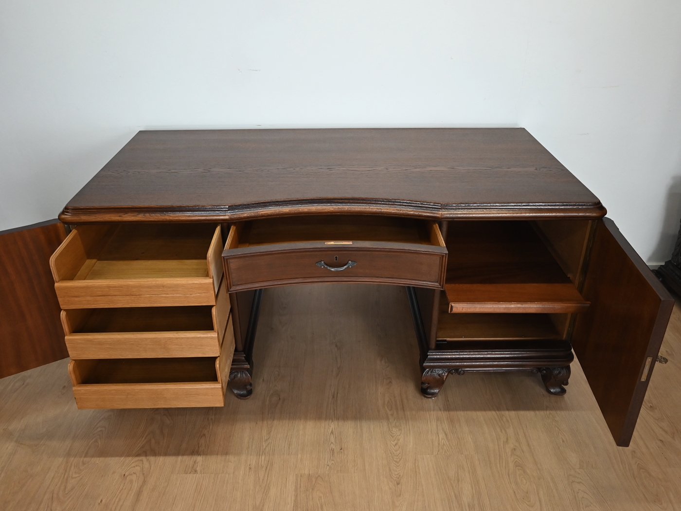 Stan bardzo dobry. Mebel przygotowany do użytkowania. Odświeżone zostały powierzchnie zewnętrzne jak i środek mebla. Mebel ma już swoje lata i ślady minionego czasu, które nie wpływają na jego odbiór estetyczny, są świadectwem autentyczności mebla. Biurko od razu można wstawić do mieszkania.