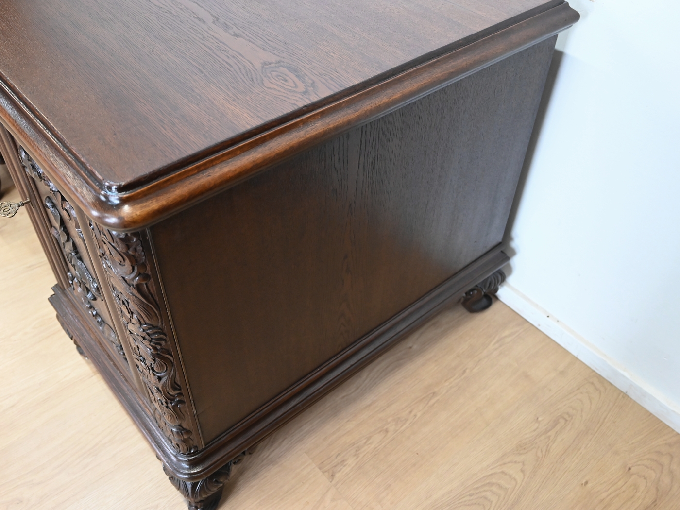 Zamki przy drzwiczkach sprawne, dwa kluczyki w komplecie. Okucie – mosiężna replika.