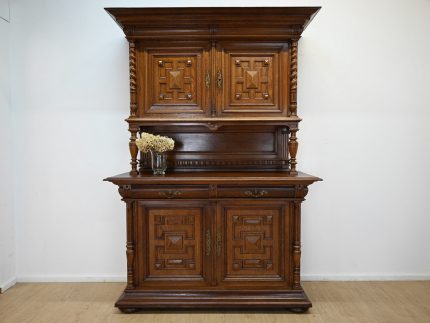 Stan dobry. Mebel przygotowany do użytkowania. Odświeżone zostały powierzchnie zewnętrzne jak i środek mebla. Mebel ma już swoje lata i ślady minionego czasu, które nie wpływają na jego odbiór estetyczny, są świadectwem autentyczności mebla. Kredens od razu można wstawić do mieszkania.