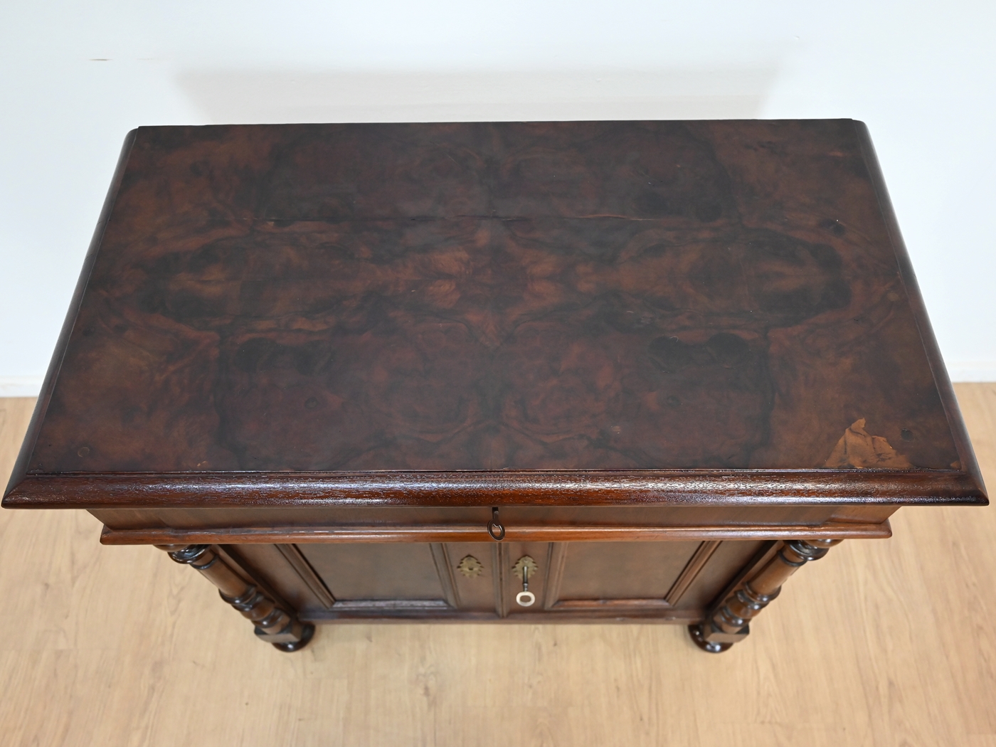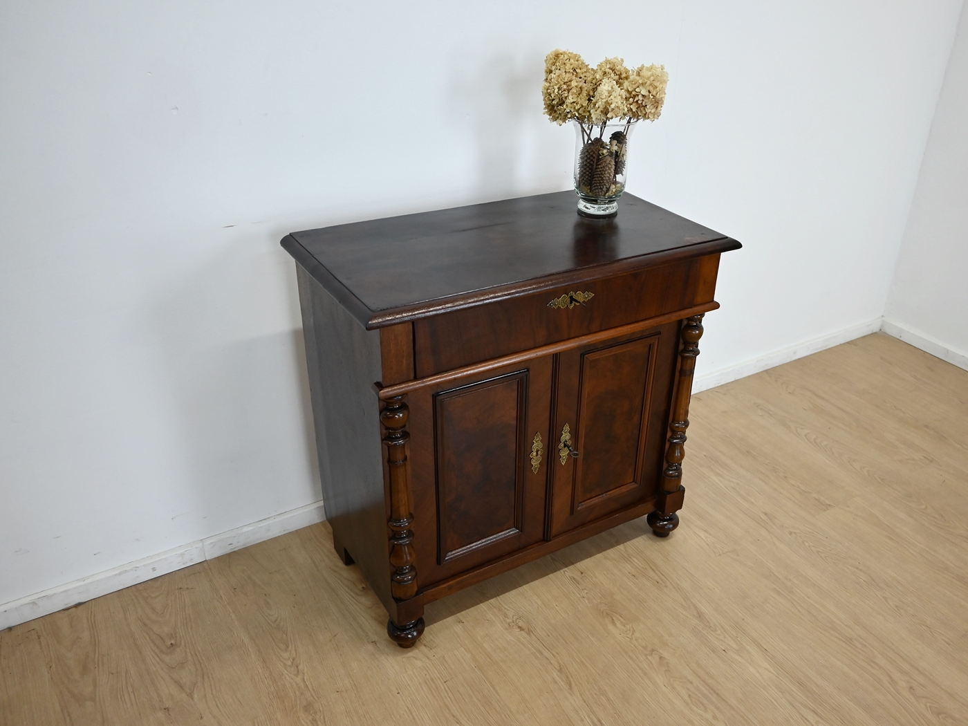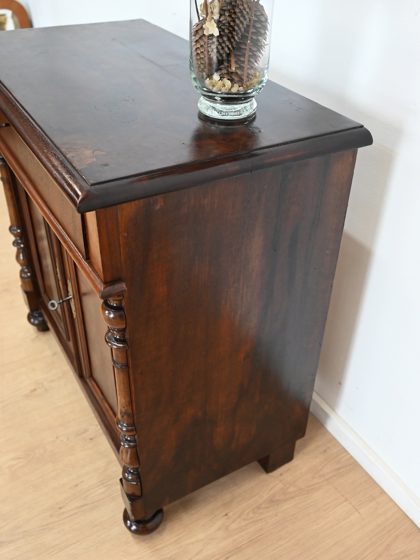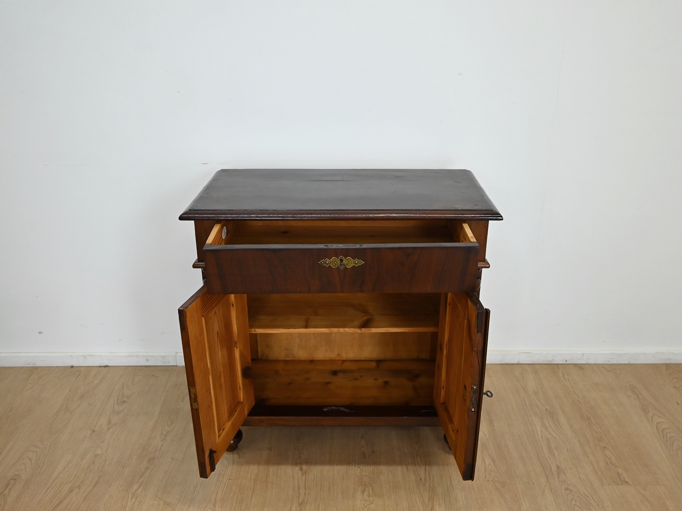 Wykończony jest politurą szelakową w półmacie.