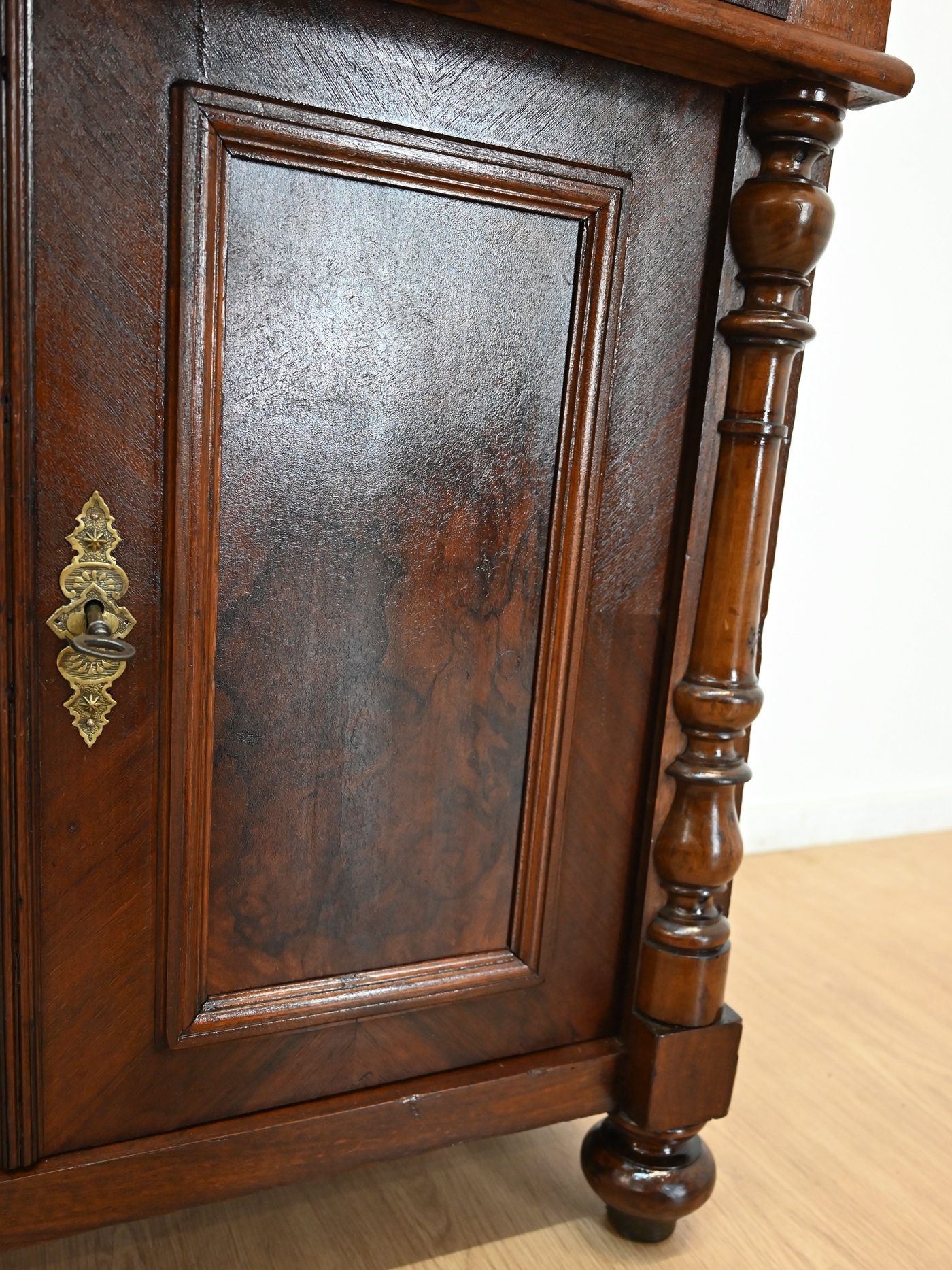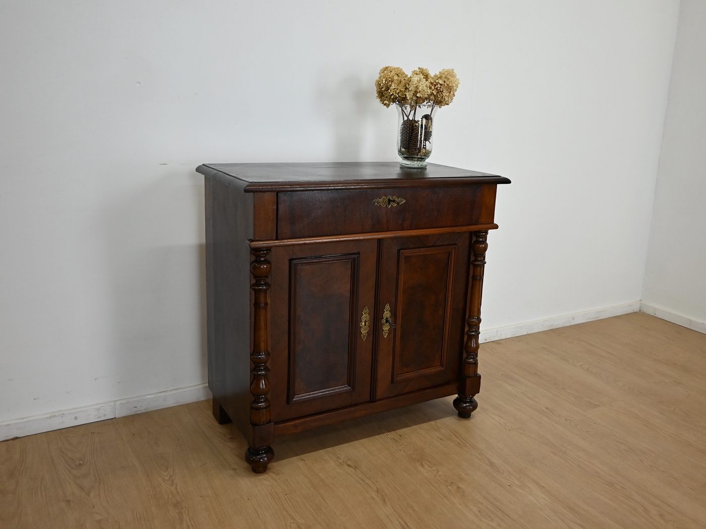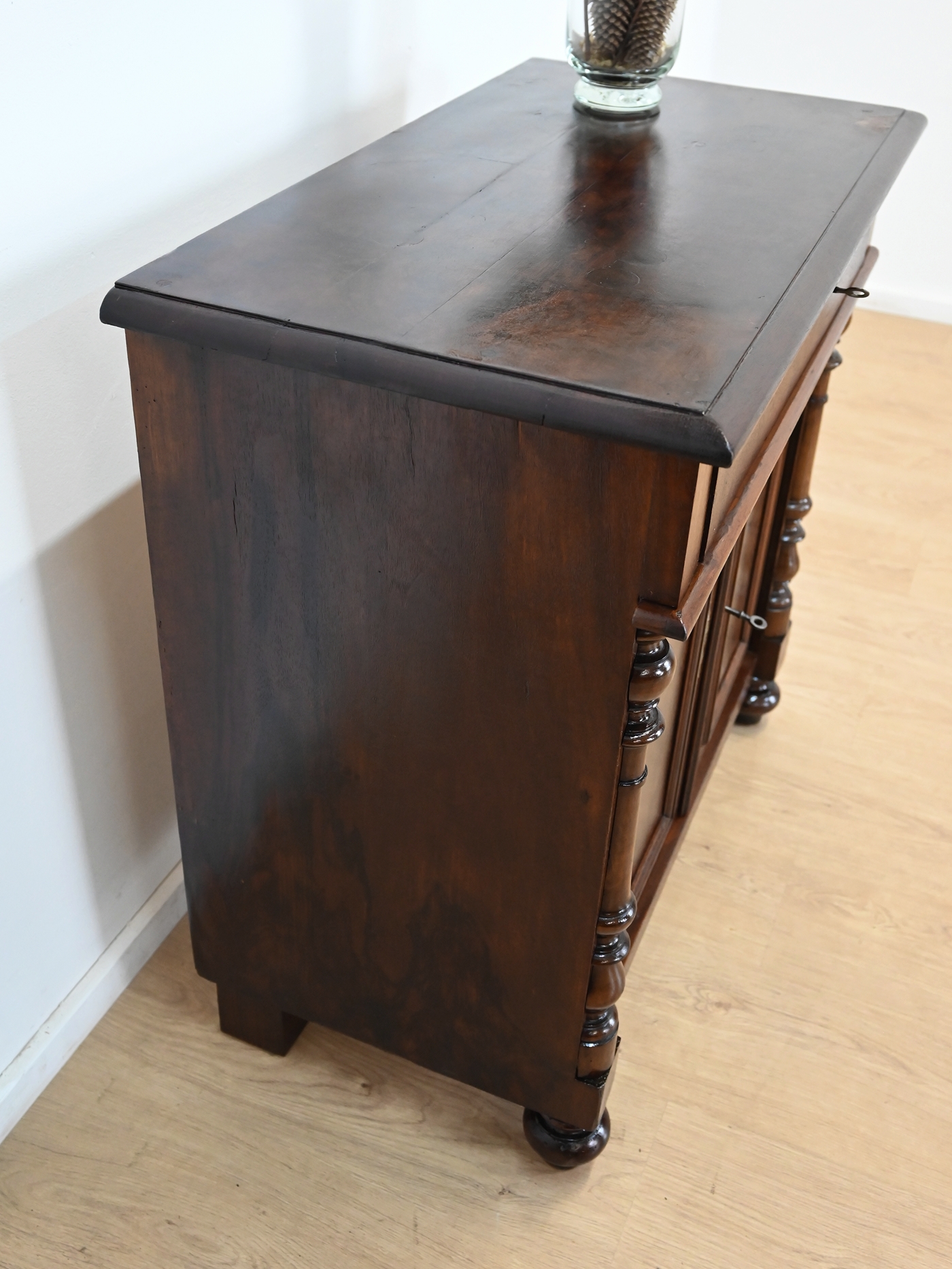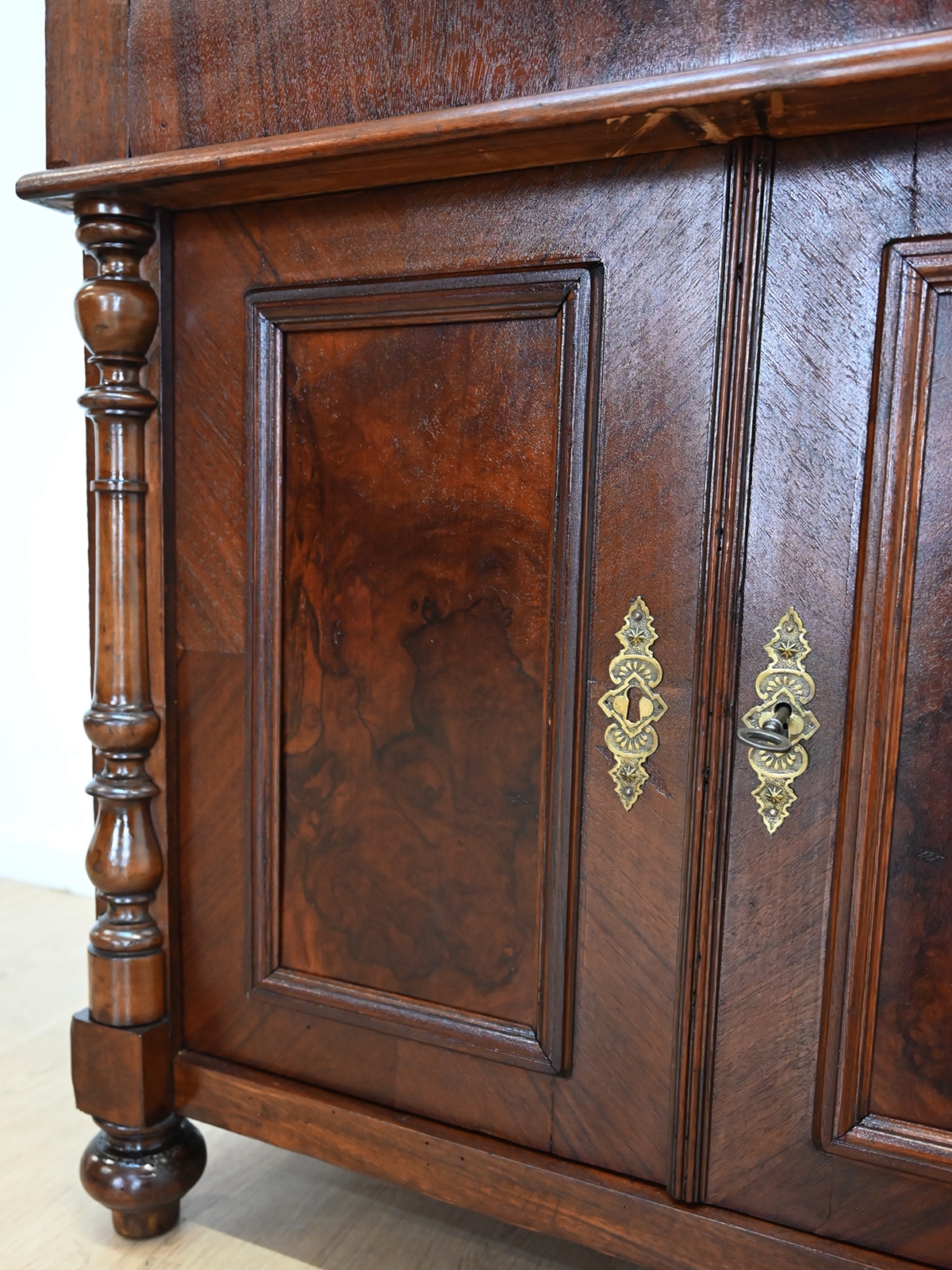 Wykończony jest politurą szelakową w półmacie.