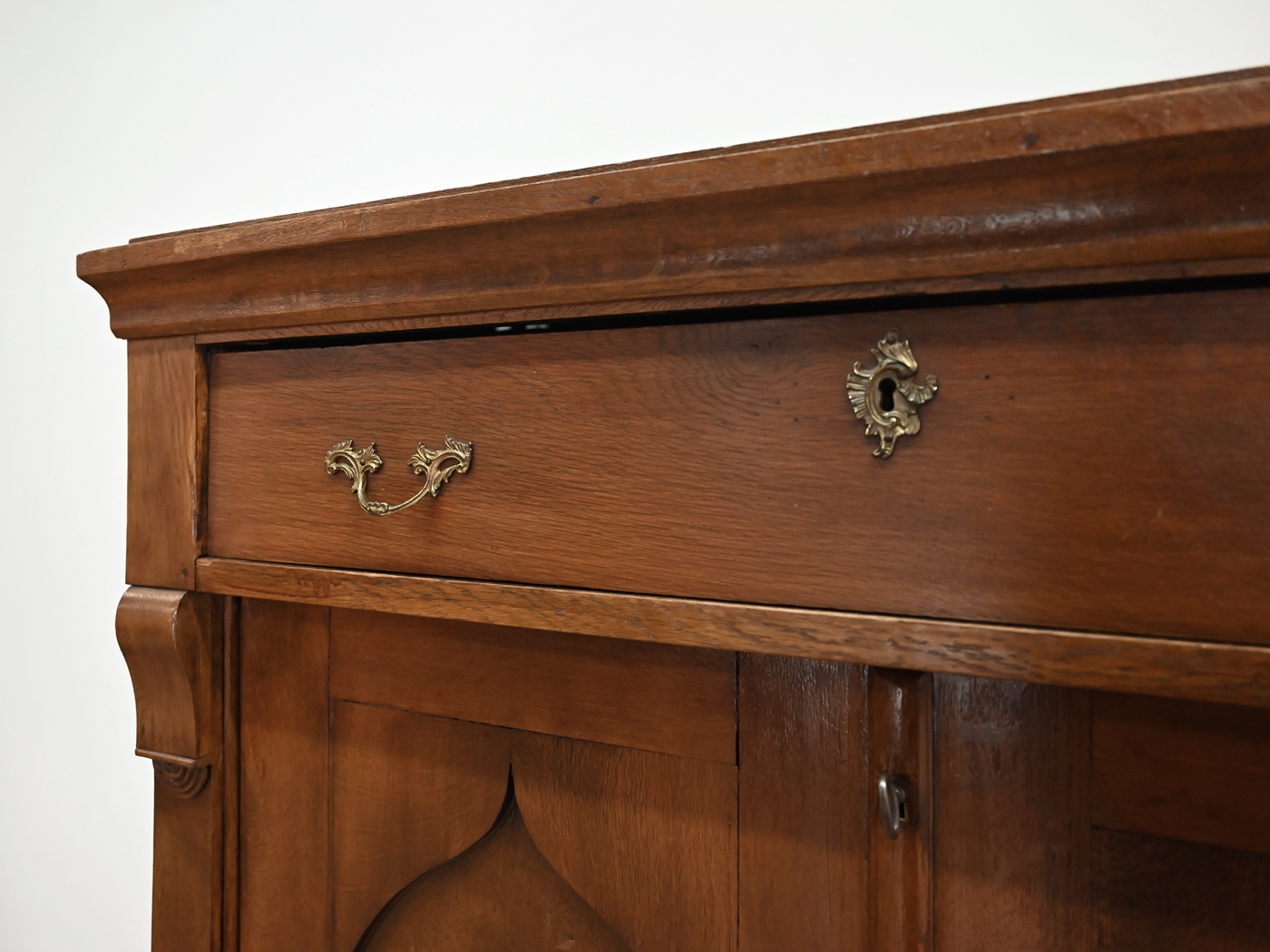 Wykończony jest politurą szelakową w półmacie.