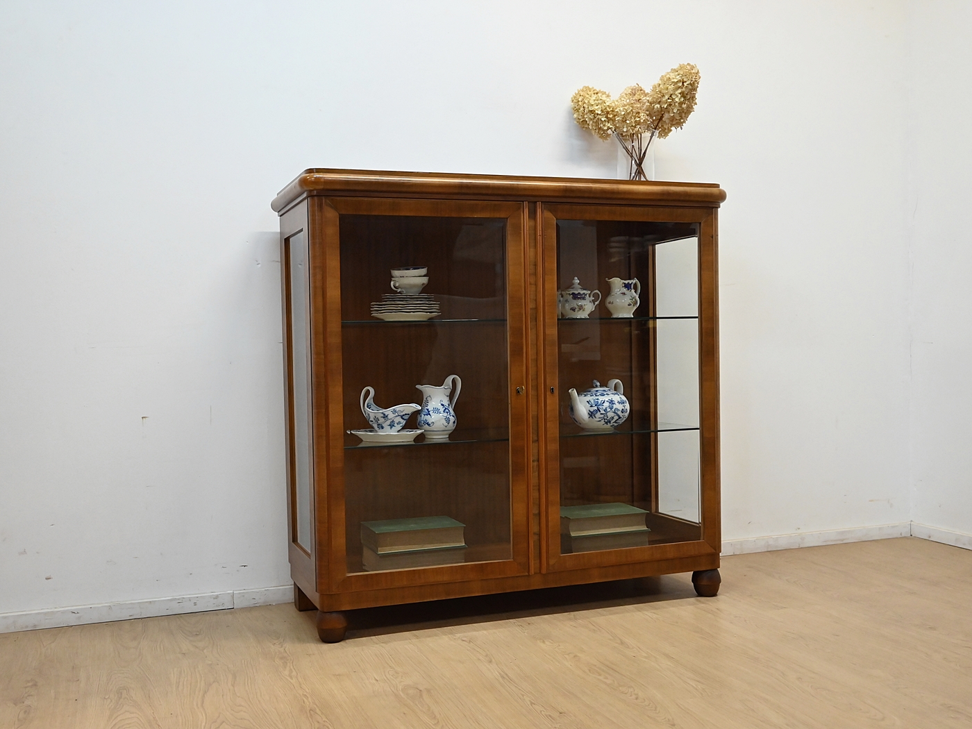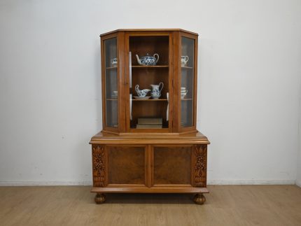Stan dobry. Mebel przygotowany do użytkowania. Odświeżone zostały powierzchnie zewnętrzne jak i środek mebla. Mebel ma już swoje lata i ślady minionego czasu, które nie wpływają na jego odbiór estetyczny, są świadectwem autentyczności mebla. Serwantkę od razu można wstawić do mieszkania.