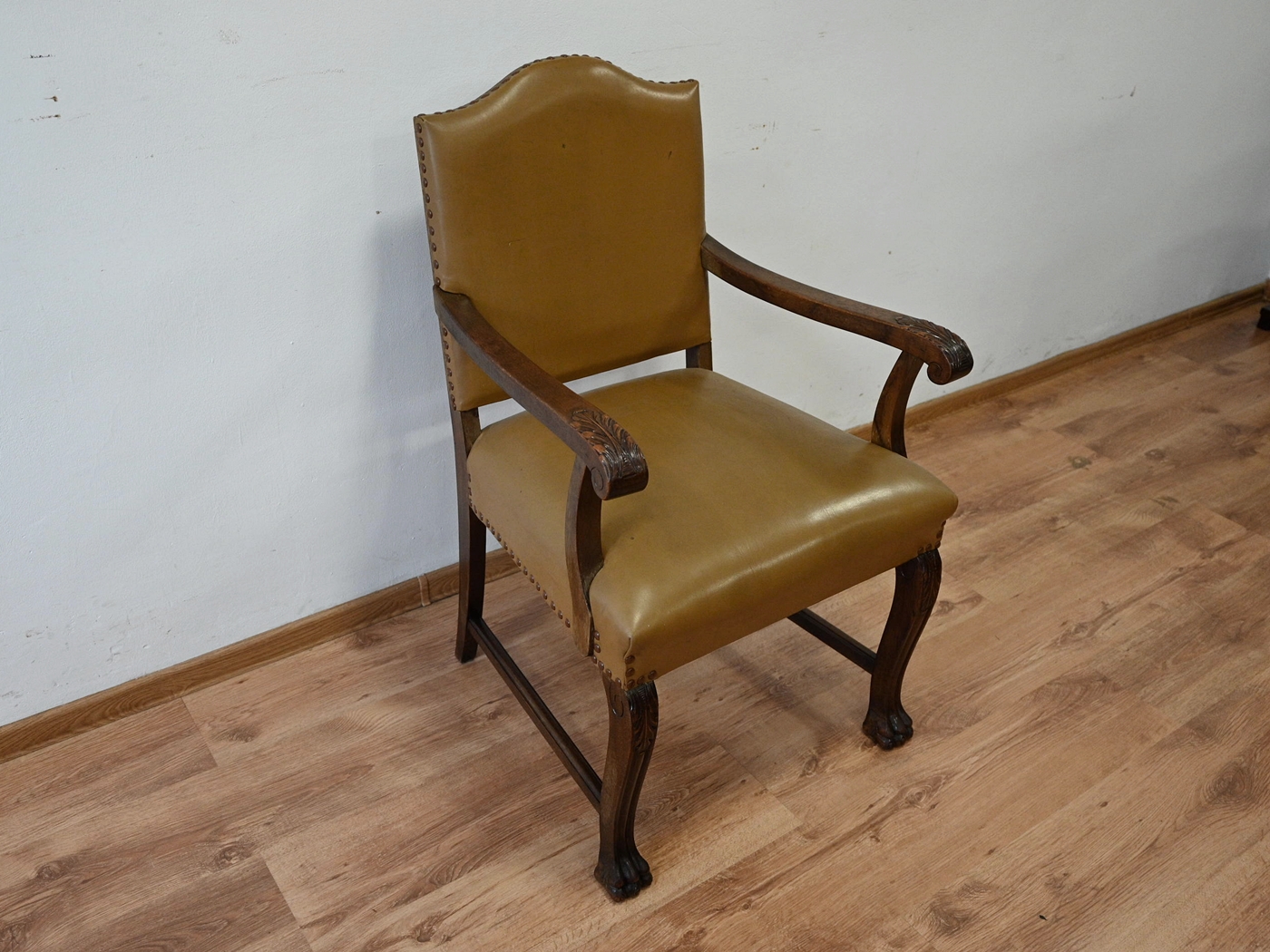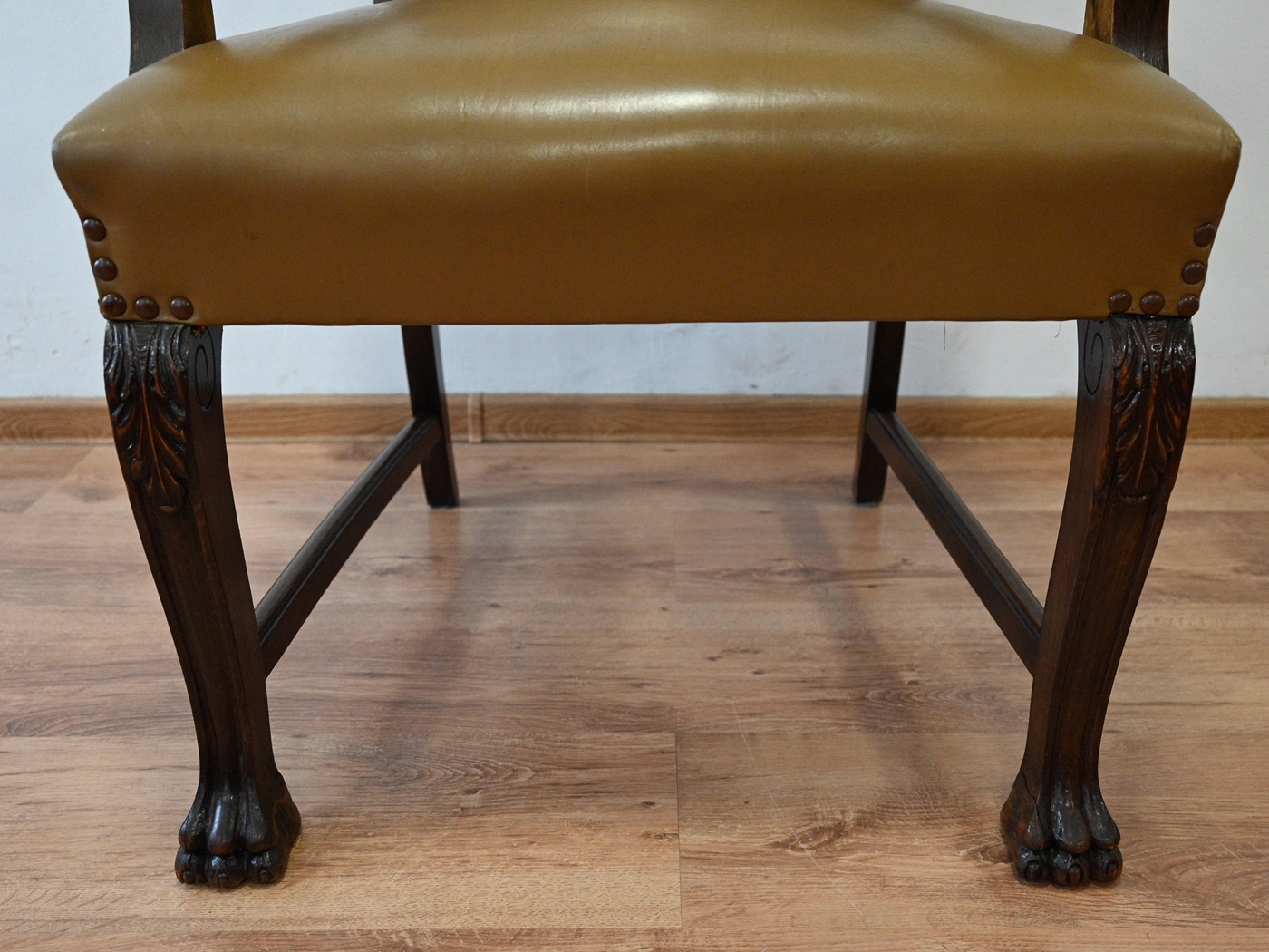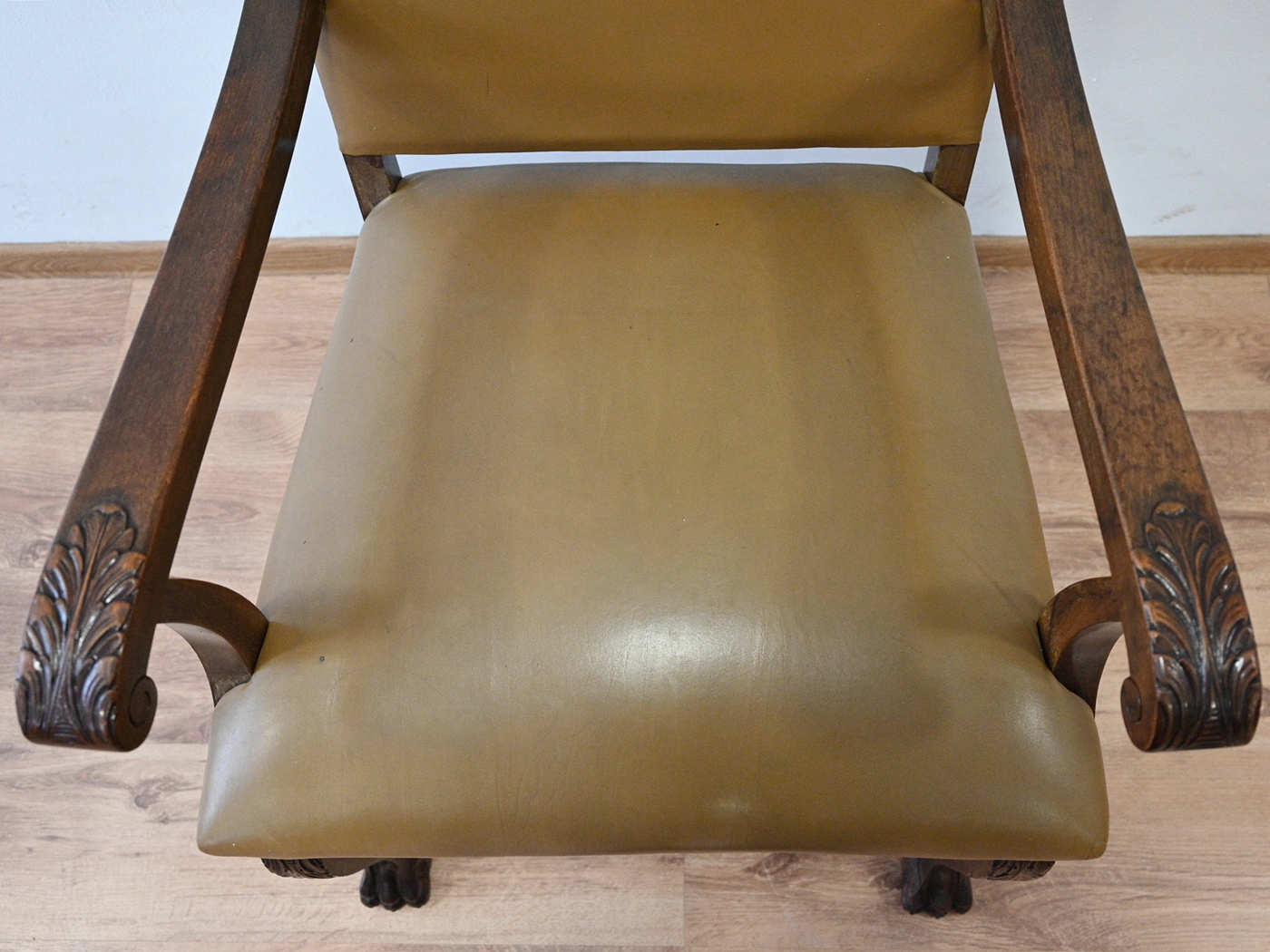 skórzany fotel na lwich łapach