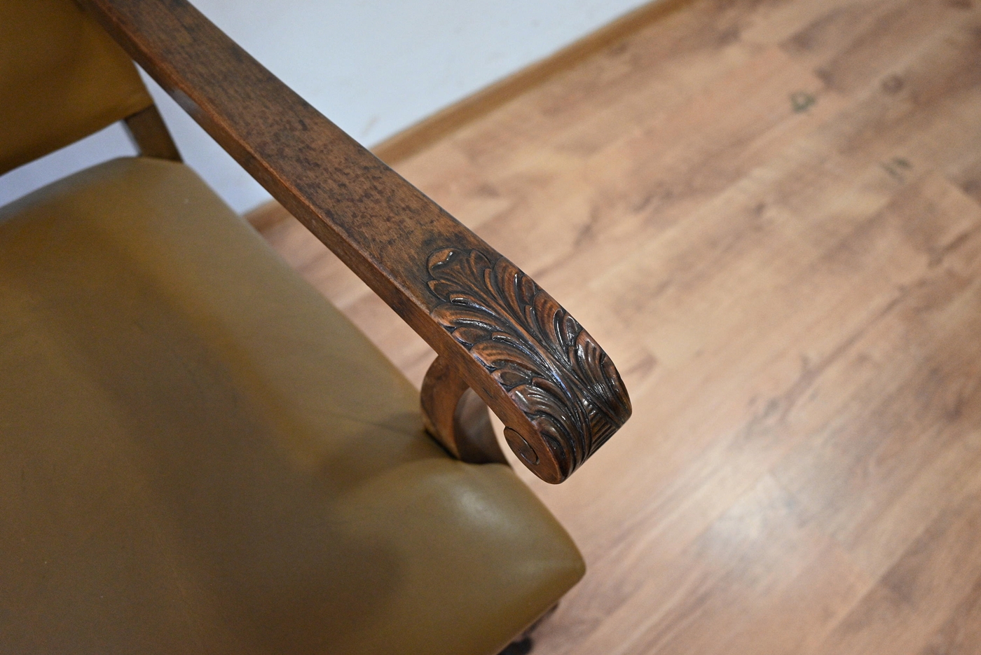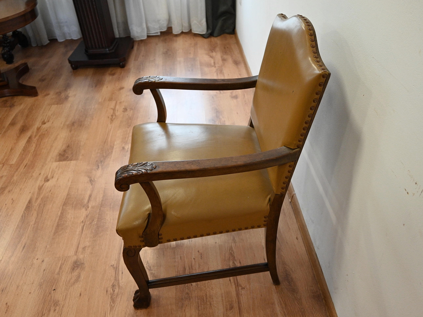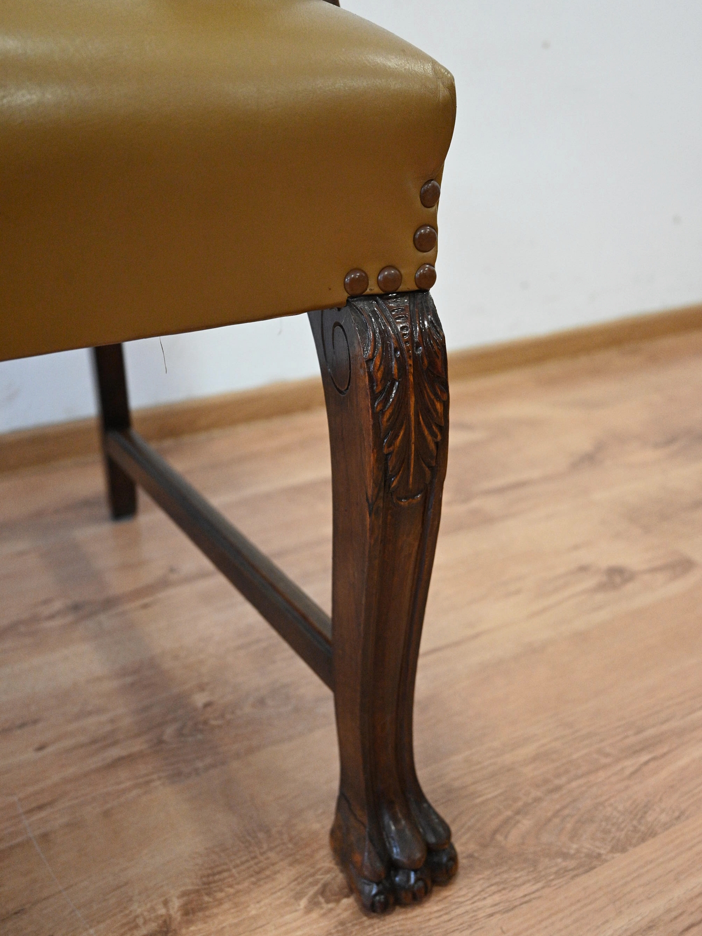 skórzany fotel na lwich łapach