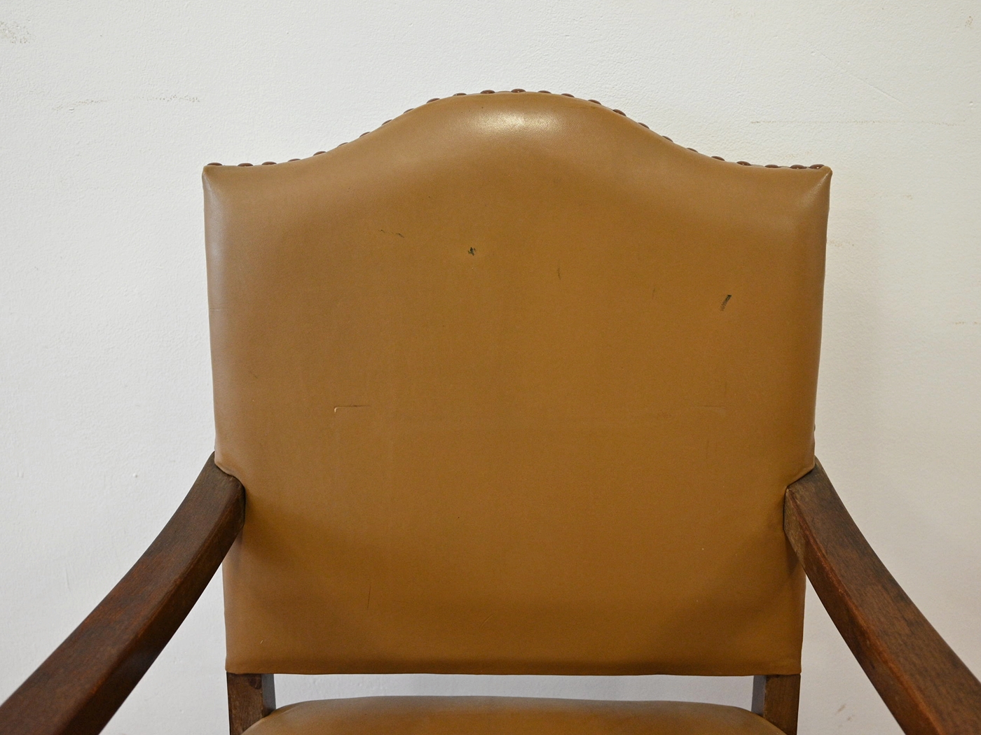 Fotel stabilny. Tapicerka nie oryginalna, bez dziur, z ryskami, przybrudzona.
