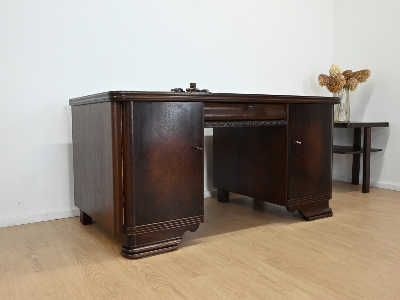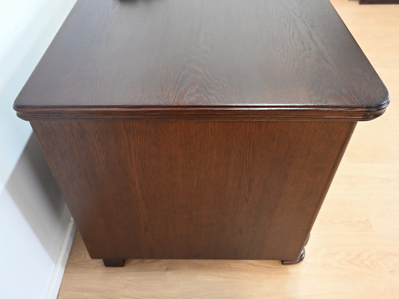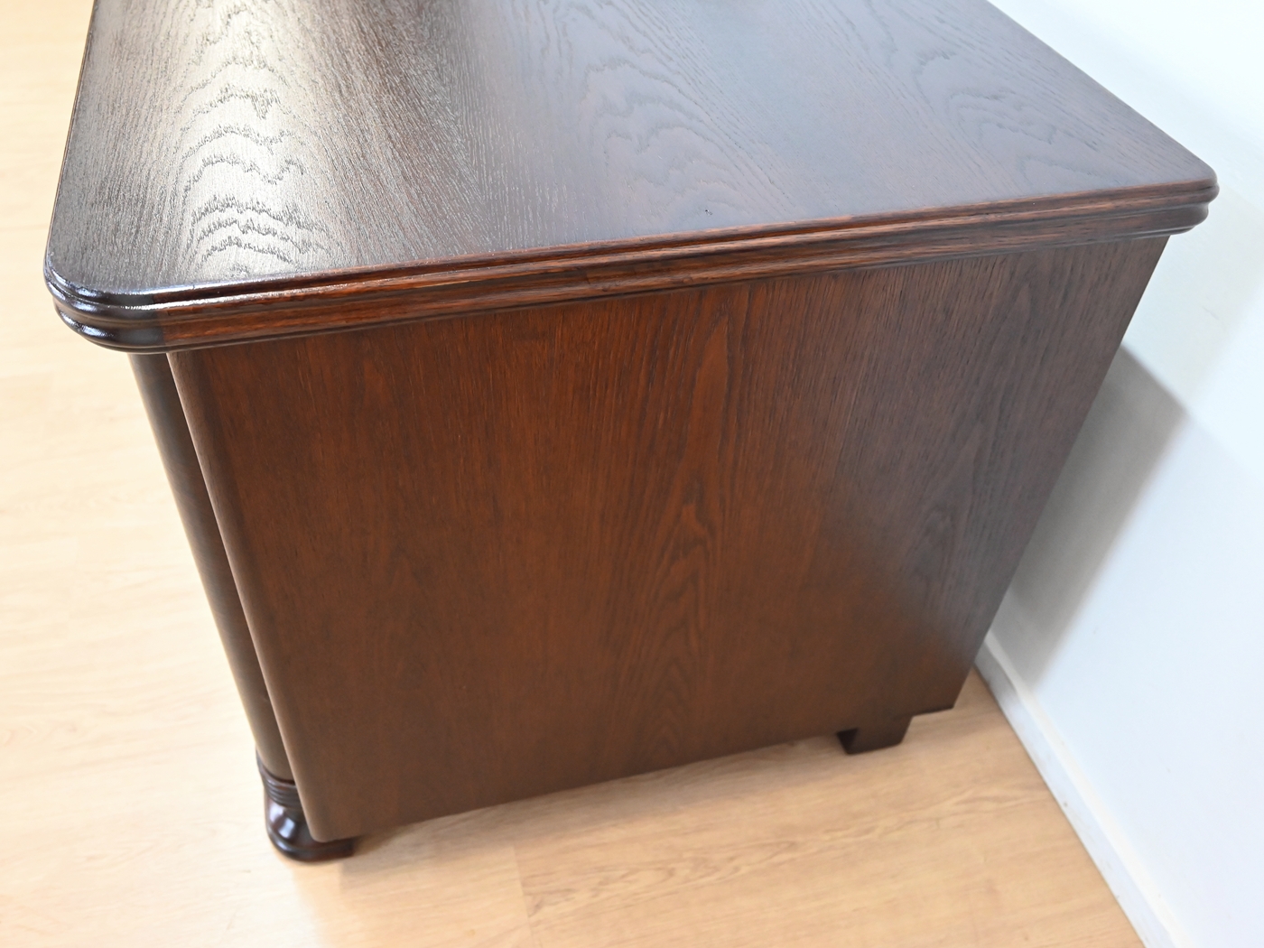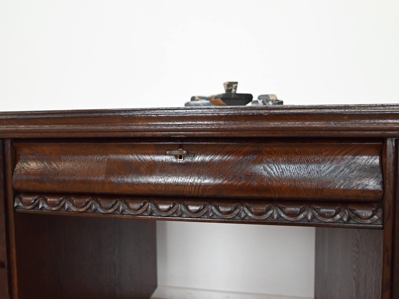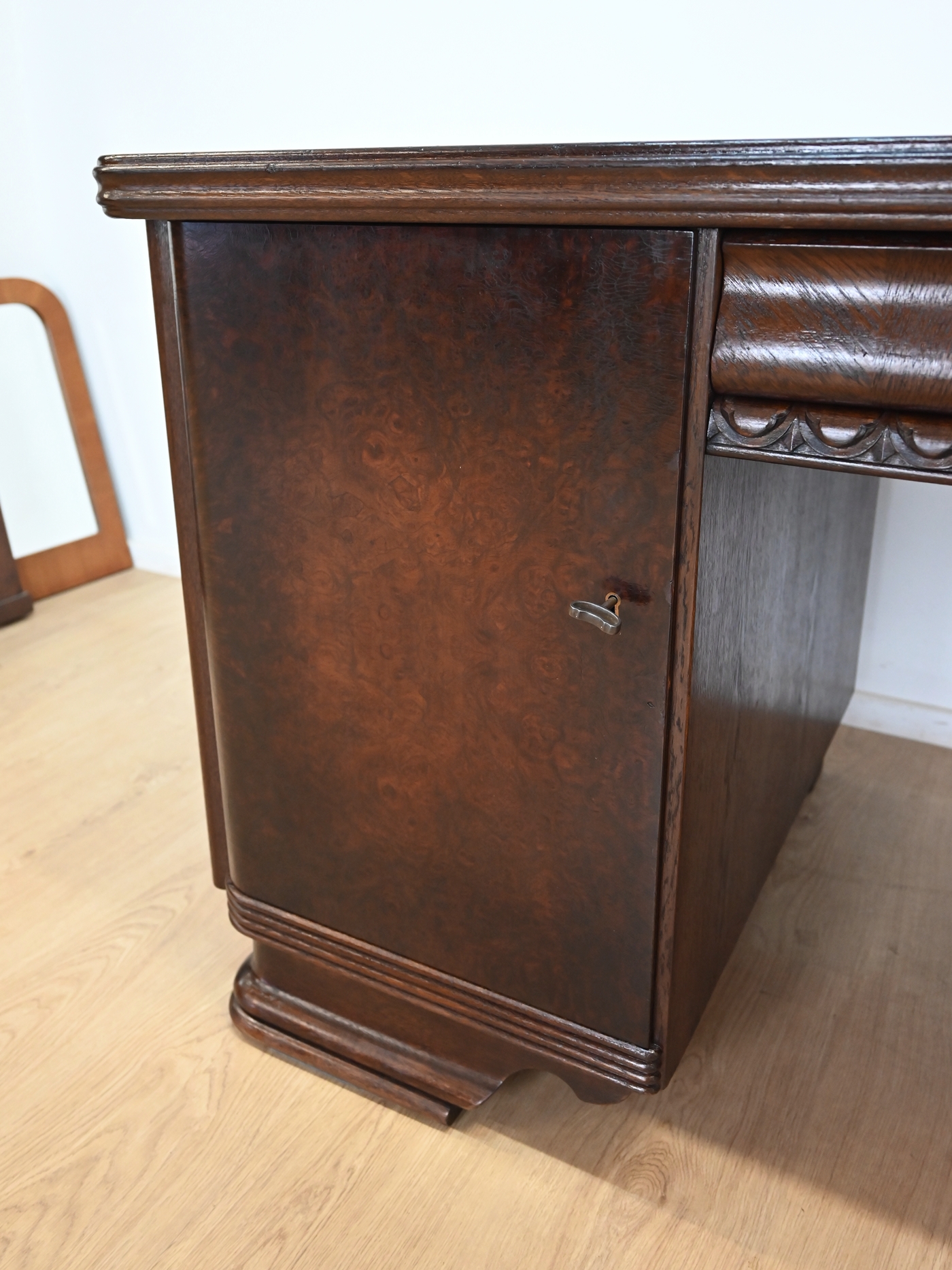 Stan bardzo dobry. Mebel przygotowany do użytkowania. Odświeżone zostały powierzchnie zewnętrzne jak i środek mebla. Mebel ma już swoje lata i ślady minionego czasu, które nie wpływają na jego odbiór estetyczny, są świadectwem autentyczności mebla. Biurko od razu można wstawić do mieszkania.