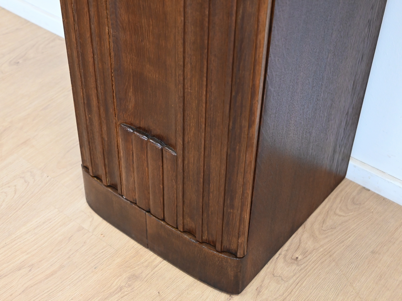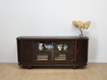 Stan dobry. Mebel przygotowany do użytkowania. Odświeżone zostały powierzchnie zewnętrzne jak i środek mebla. Mebel ma już swoje lata i ślady minionego czasu, które nie wpływają na jego odbiór estetyczny, są świadectwem autentyczności mebla. Szafkę od razu można wstawić do mieszkania.