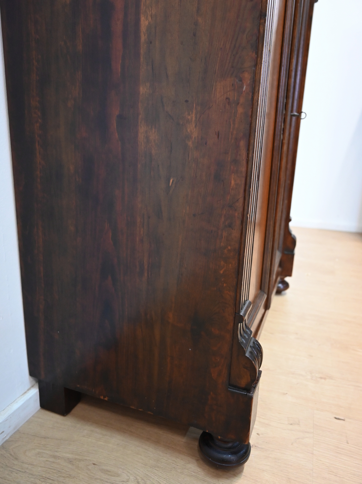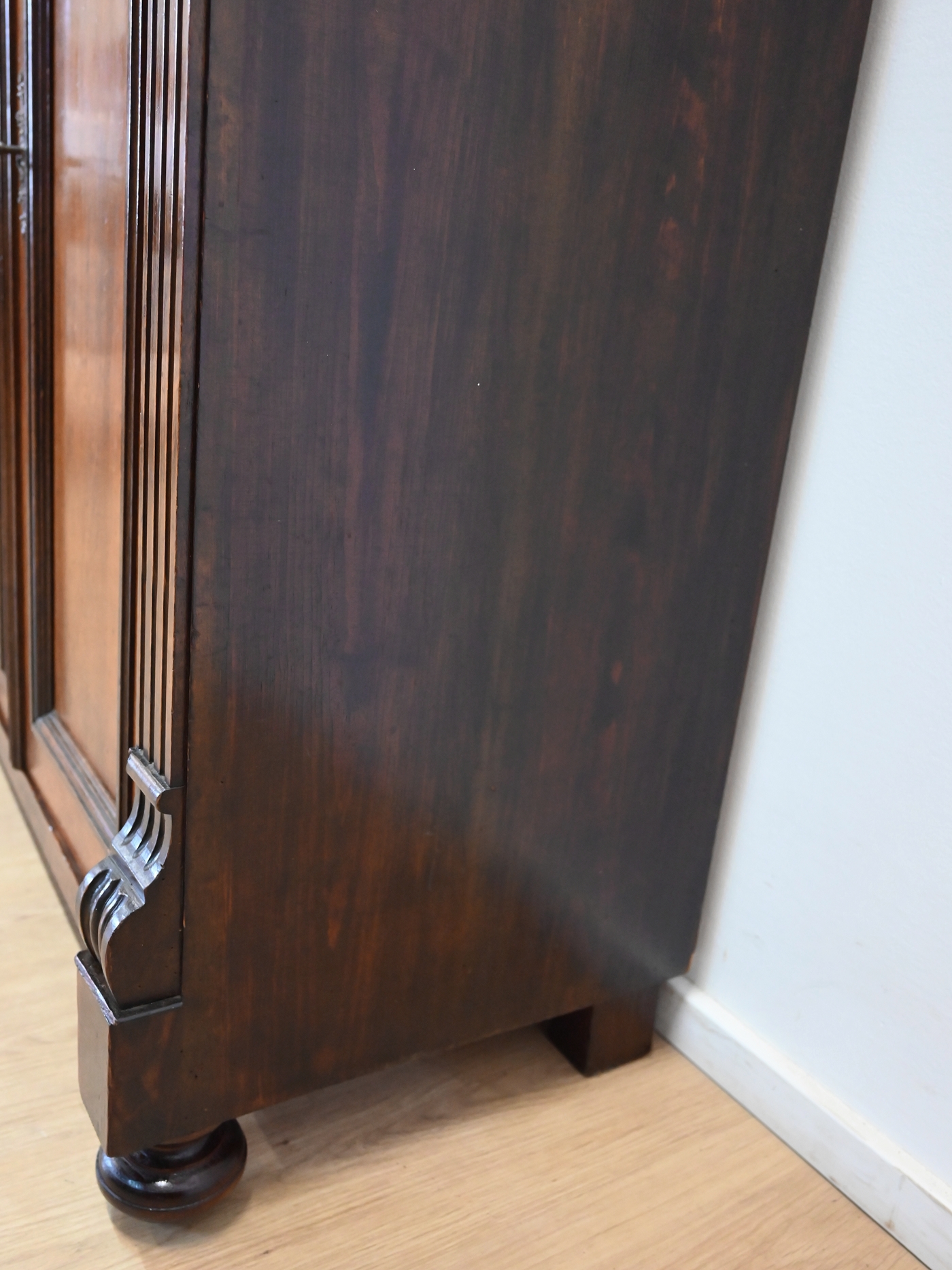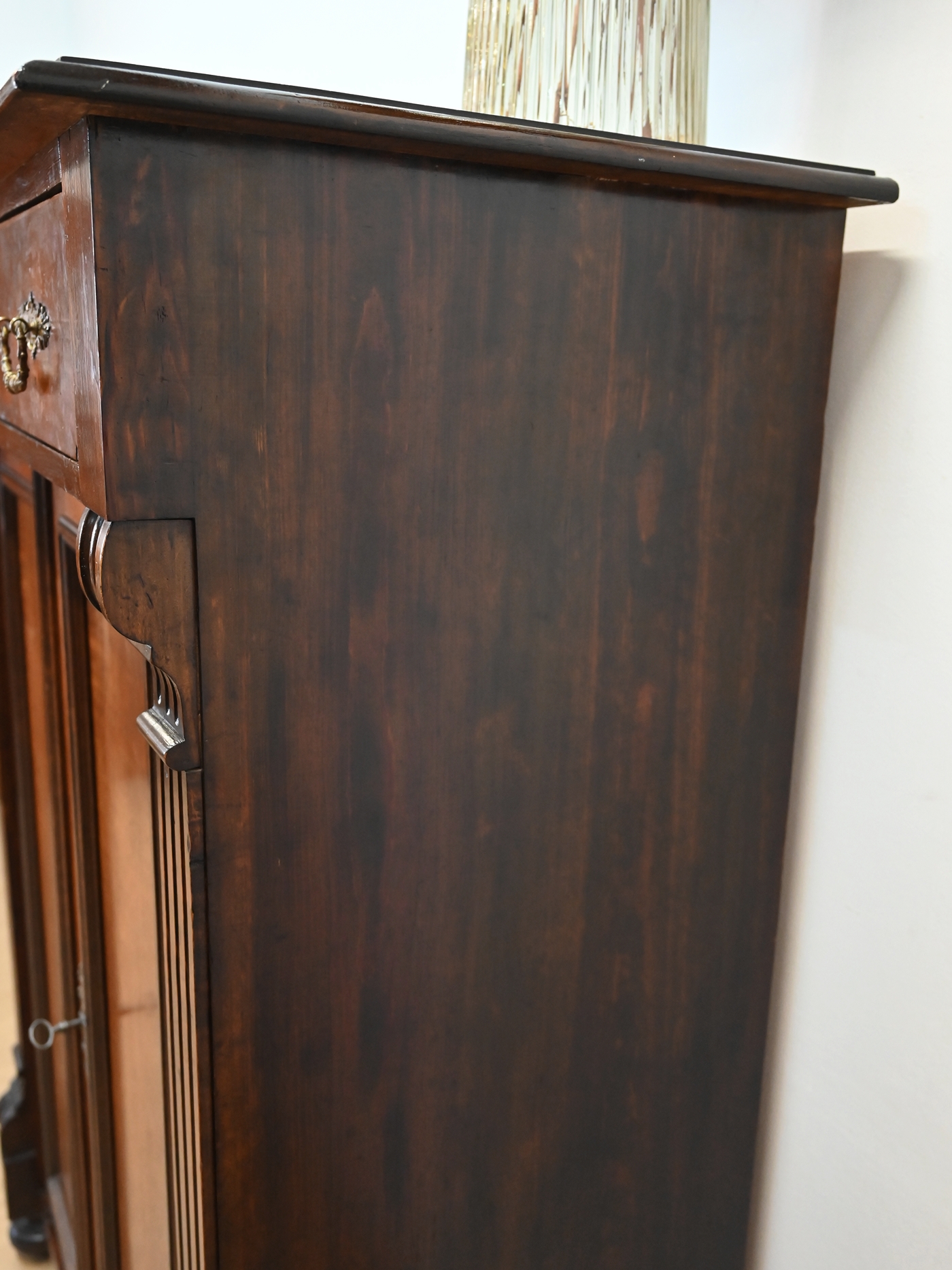 Wykończony jest politurą szelakową w półmacie.