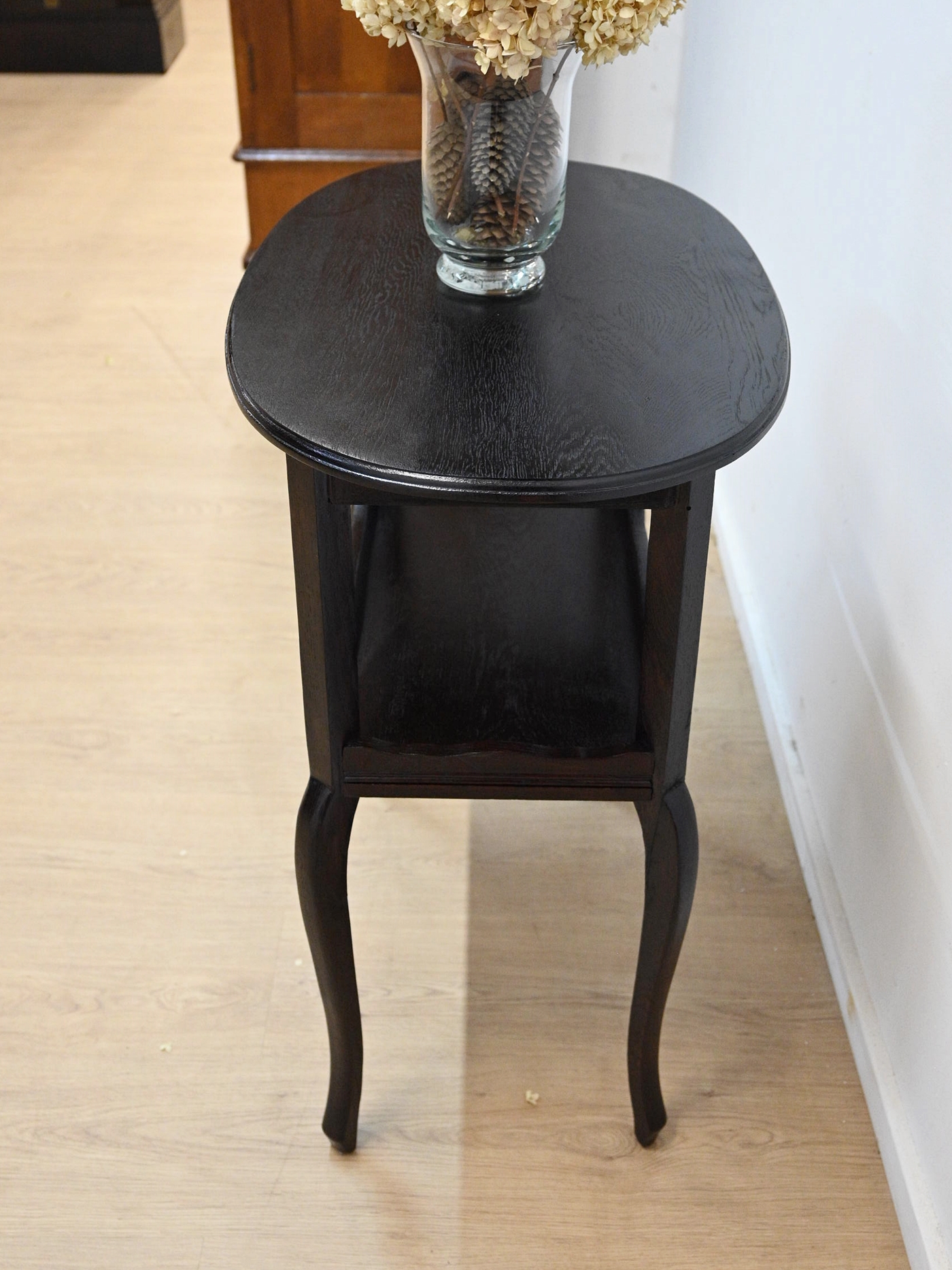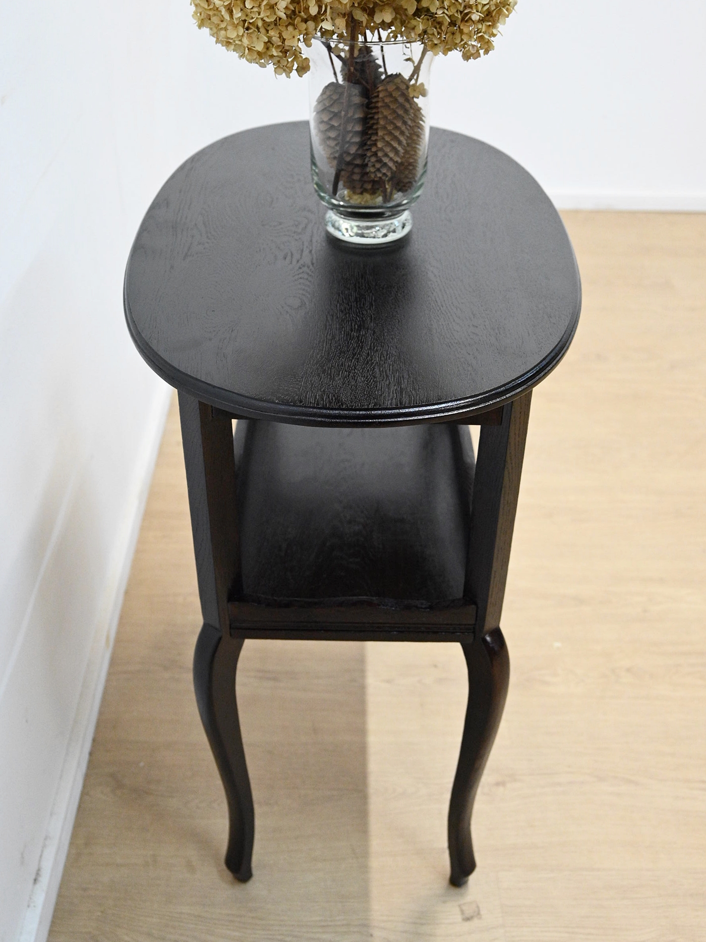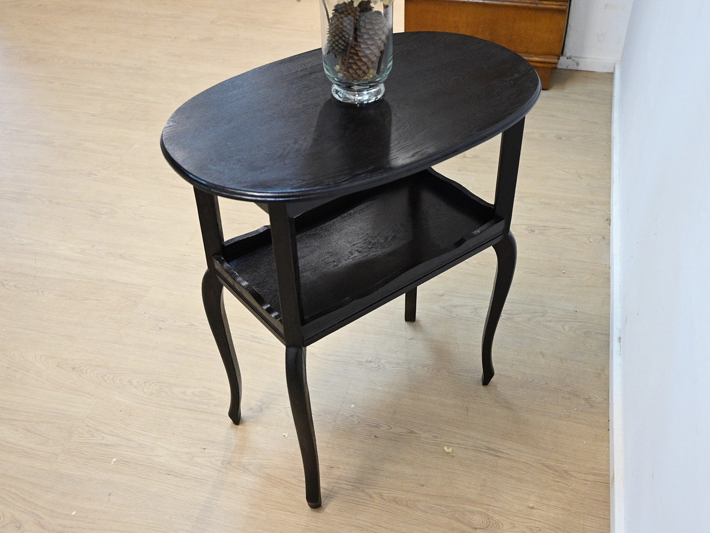 Wykończony jest politurą szelakową w półmacie.