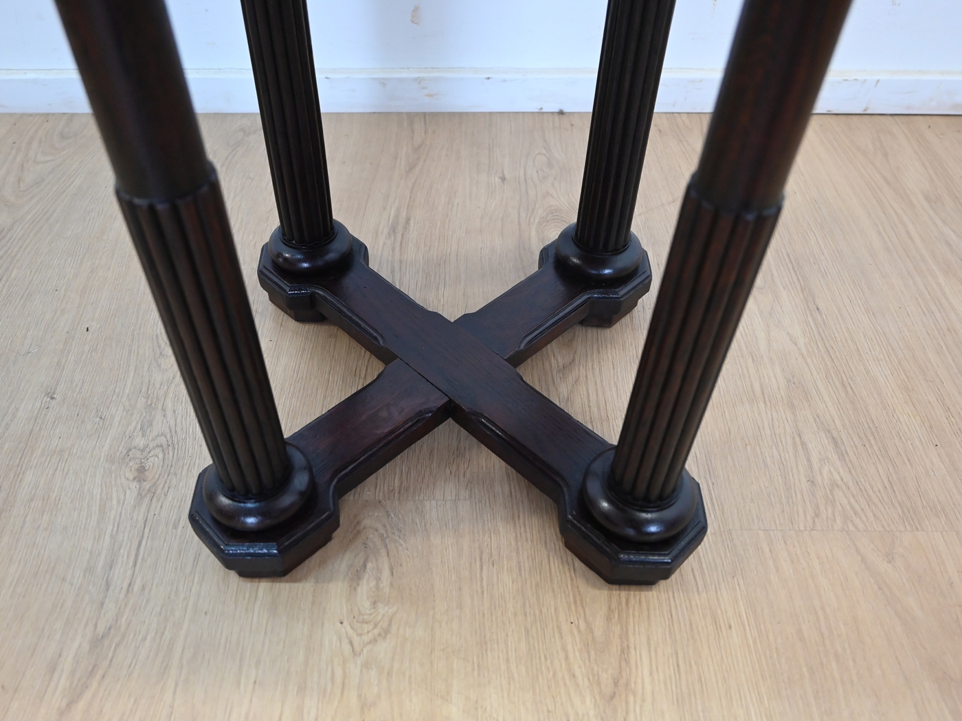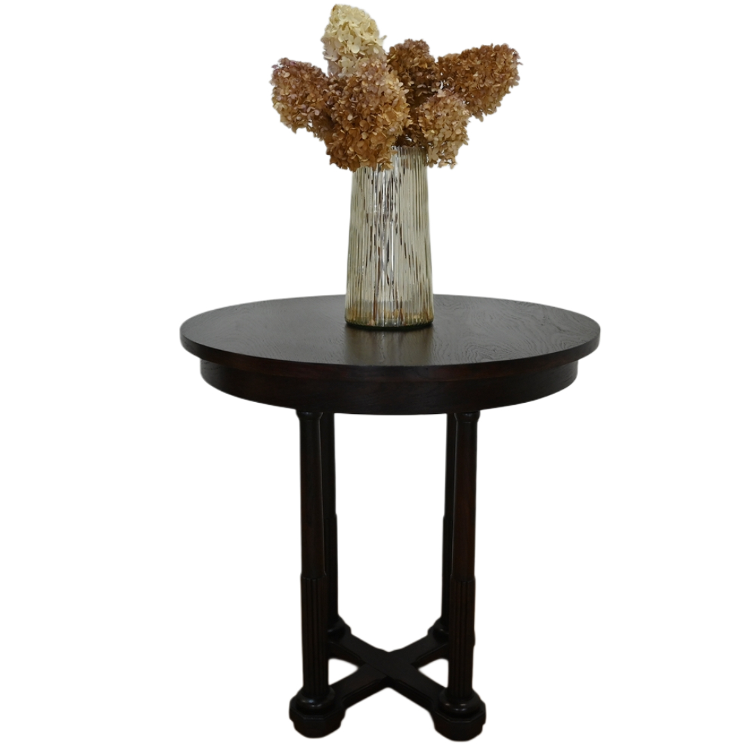 Wykonany jest w całości z drewna, fornirowany dębem.