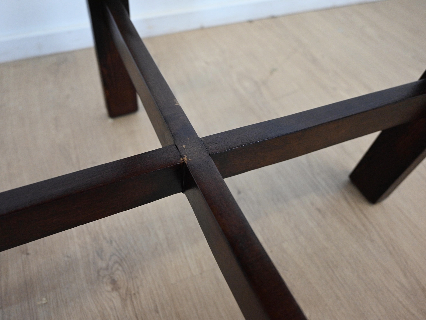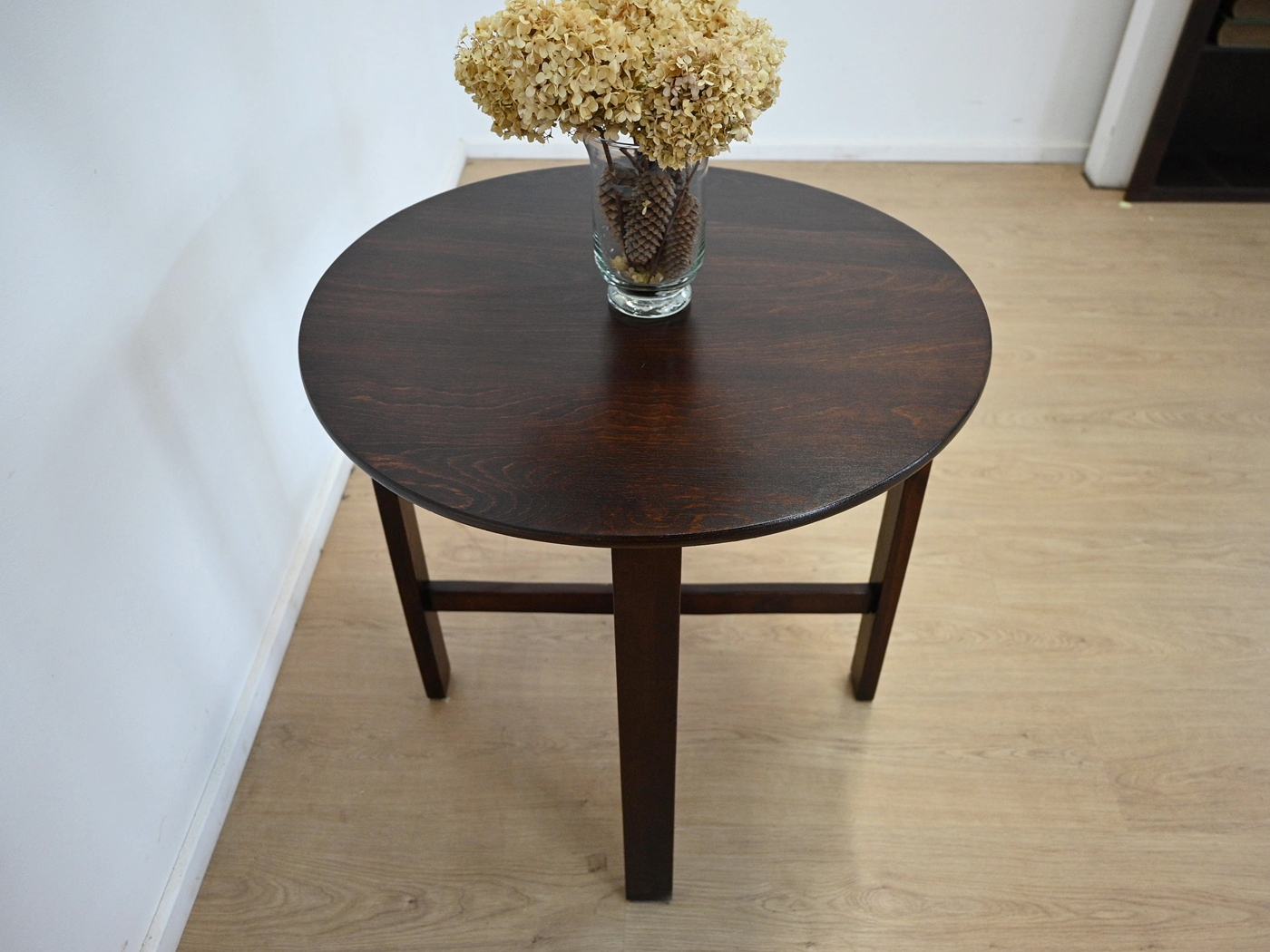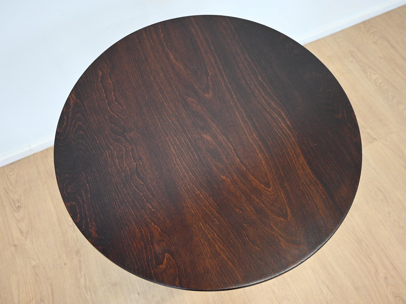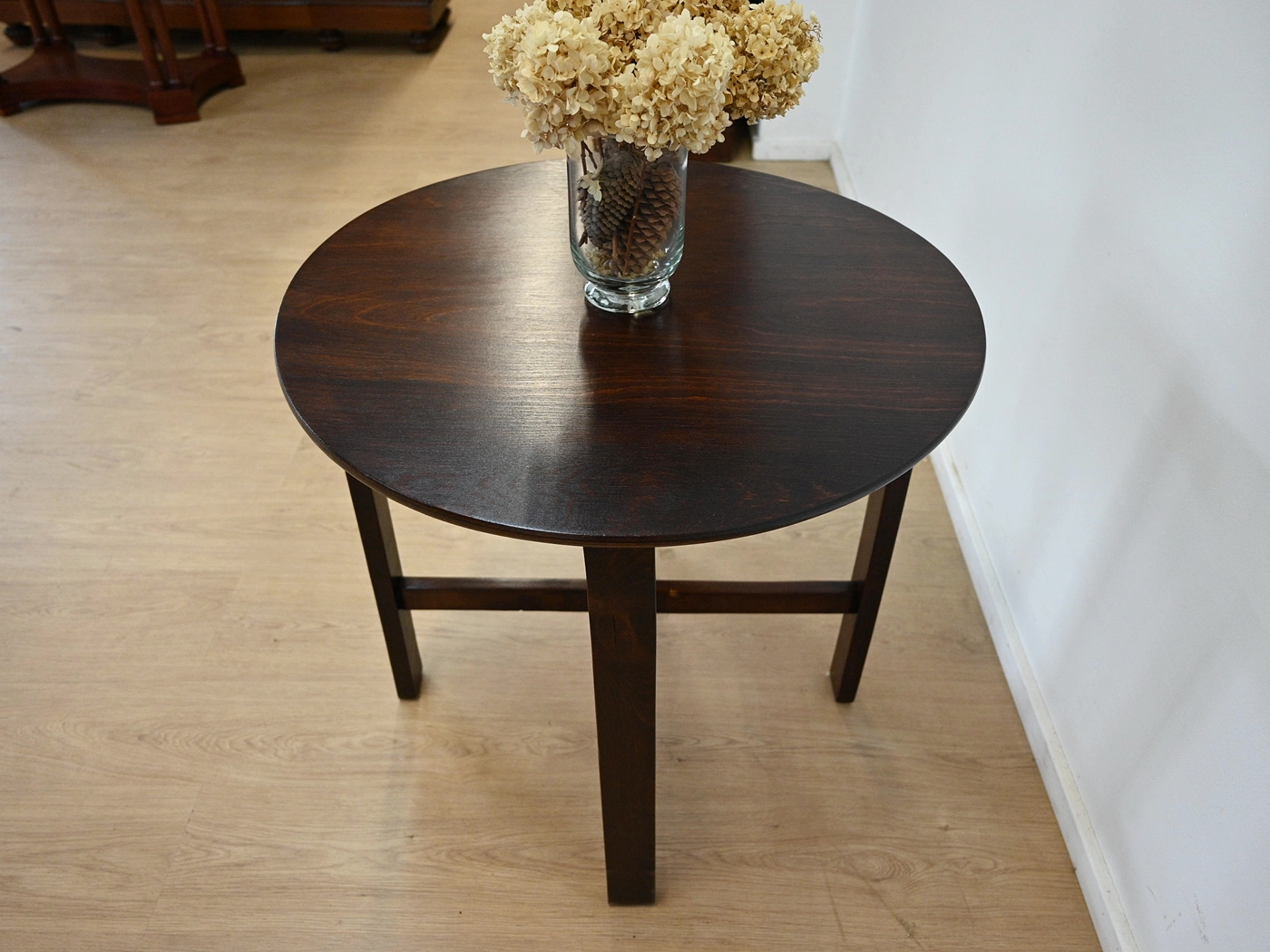 Wykończony jest politurą szelakową w półmacie, blat dodatkowo zabezpieczony lakierem.