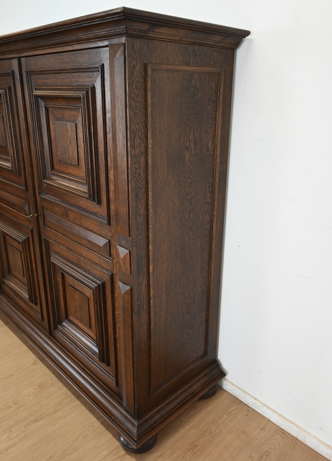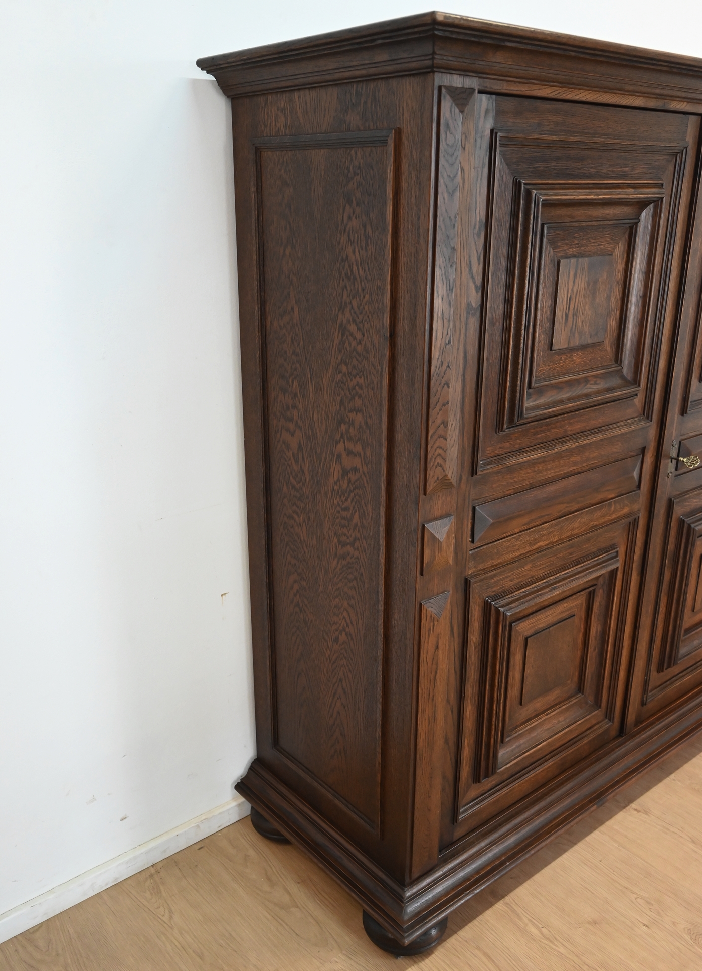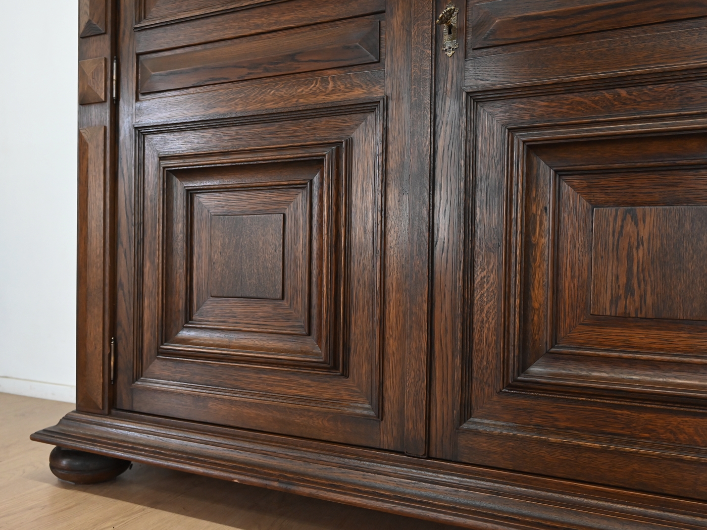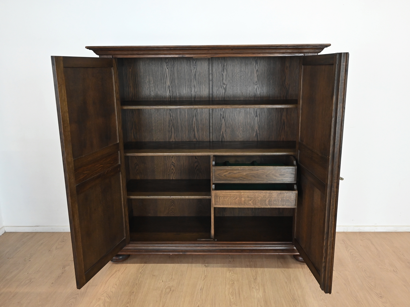 Stan bardzo dobry. Mebel przygotowany do użytkowania. Odświeżone zostały powierzchnie zewnętrzne jak i środek mebla. Mebel ma już swoje lata i ślady minionego czasu, które nie wpływają na jego odbiór estetyczny, są świadectwem autentyczności mebla. Szafę od razu można wstawić do mieszkania.