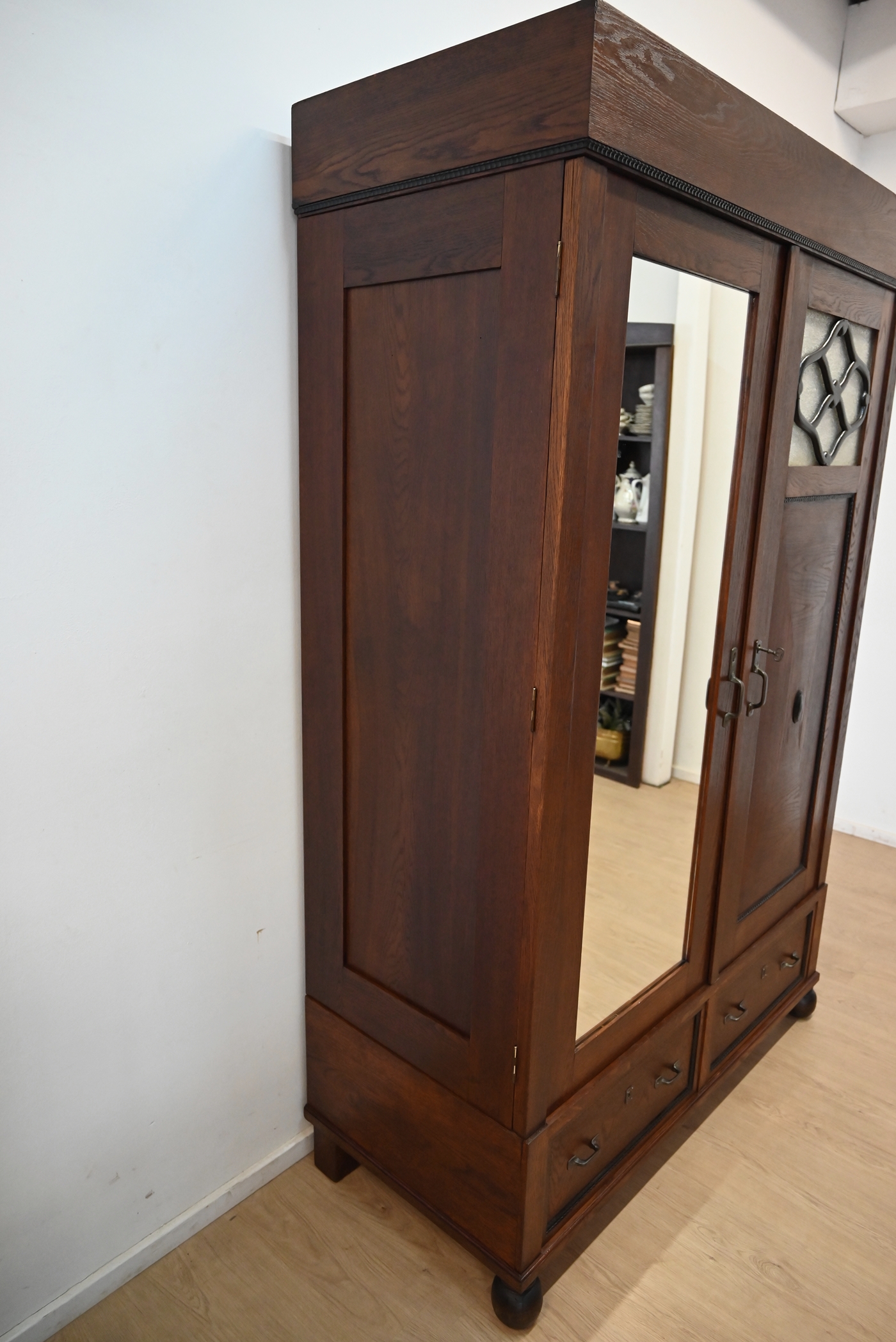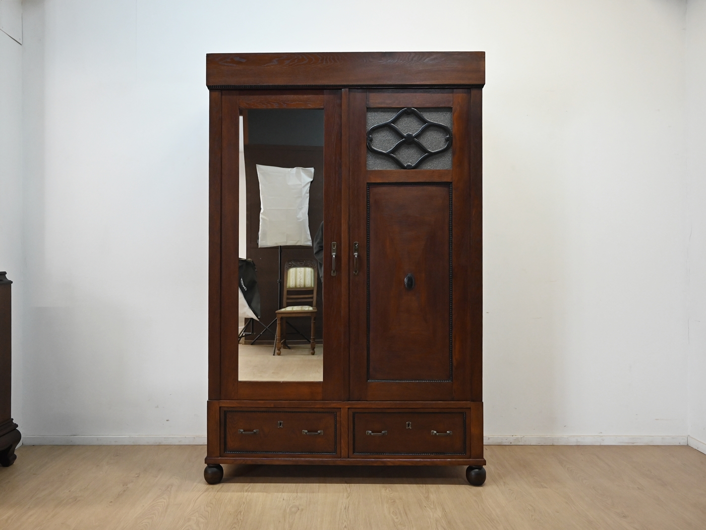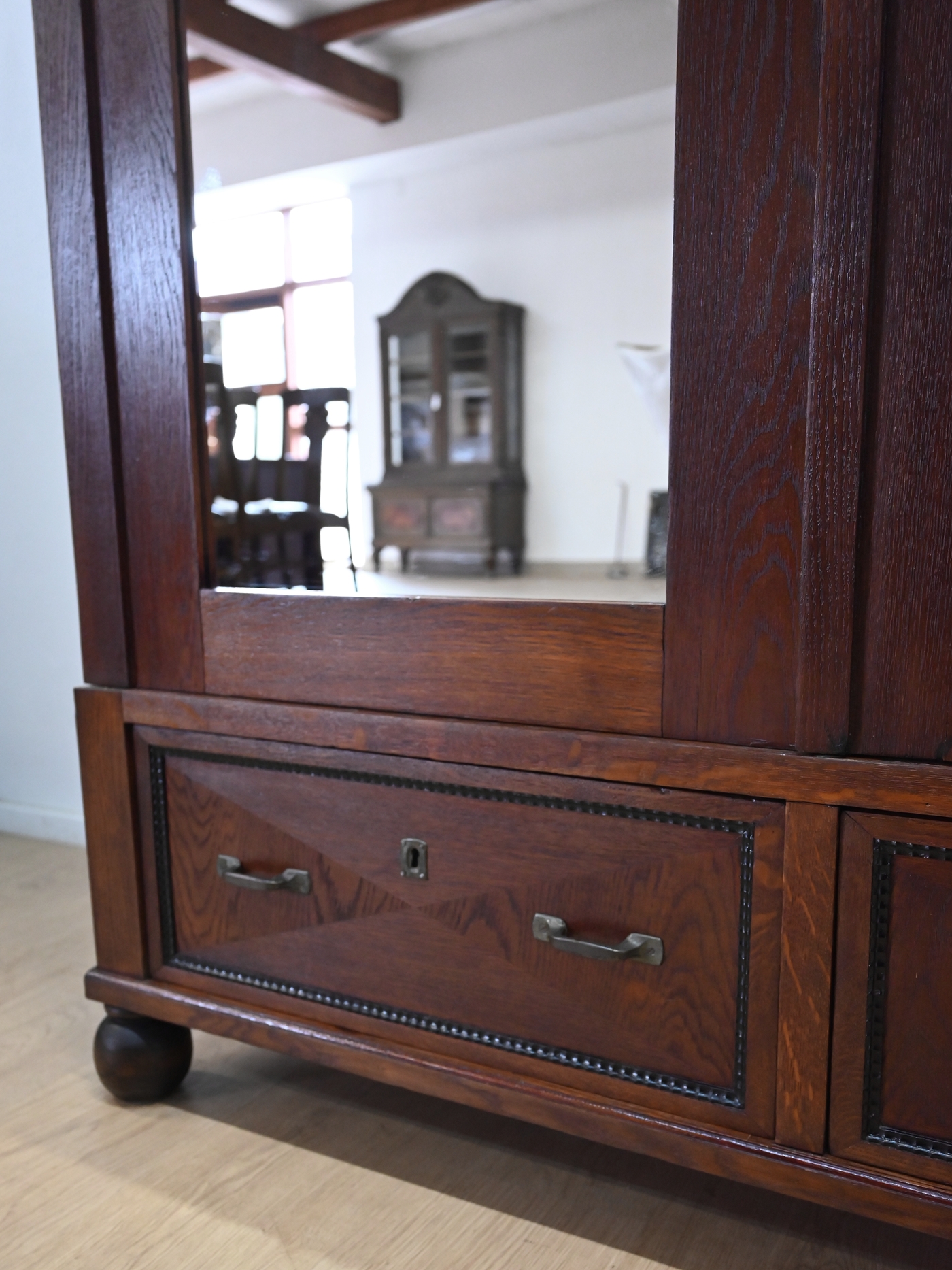 szafa międzywojenna z lustrem szuflady