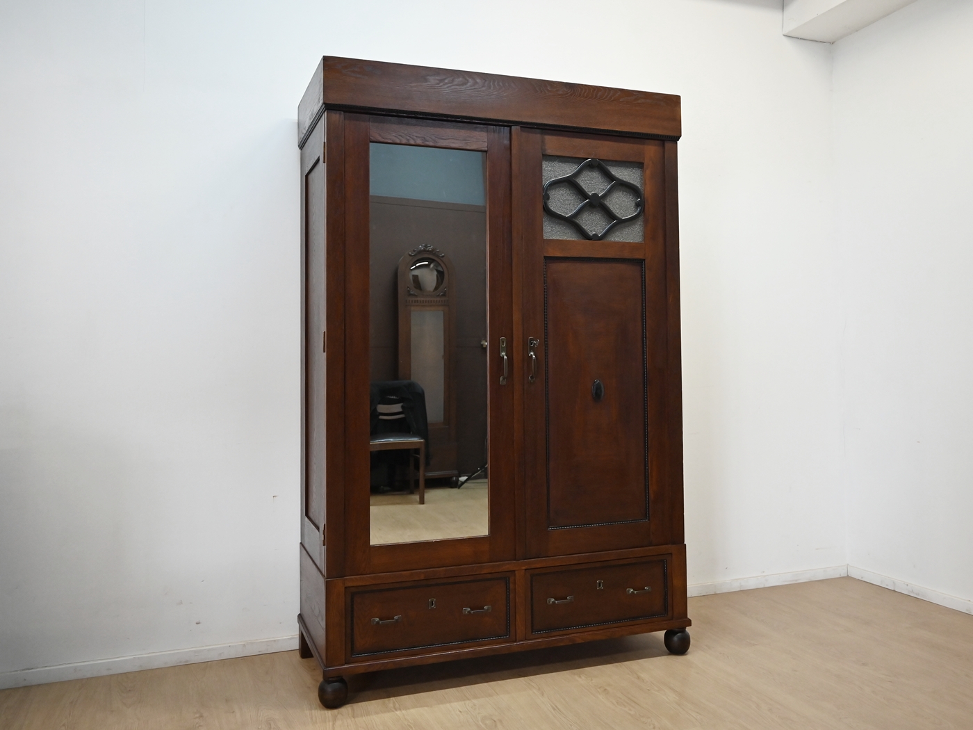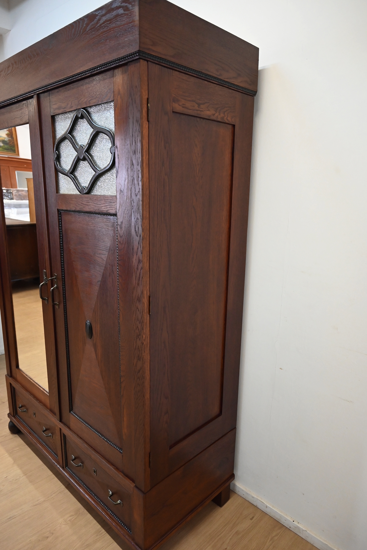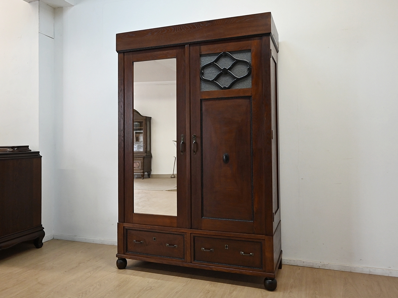 szafa międzywojenna z lustrem szuflady