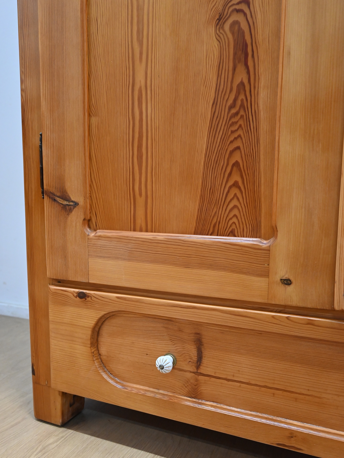 Stan bardzo dobry. Mebel przygotowany do użytkowania. Odświeżone zostały powierzchnie zewnętrzne jak i środek mebla. Mebel ma już swoje lata i ślady minionego czasu, które nie wpływają na jego odbiór estetyczny, są świadectwem autentyczności mebla. Szafę od razu można wstawić do mieszkania.