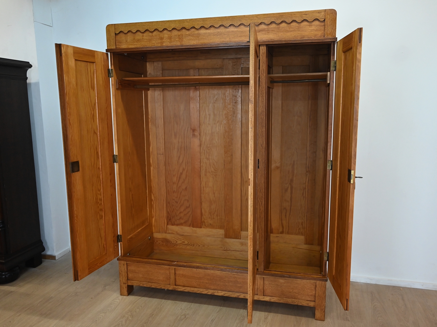 Stan bardzo dobry. Mebel przygotowany do użytkowania. Odświeżone zostały powierzchnie zewnętrzne jak i środek mebla. Mebel ma już swoje lata i ślady minionego czasu, które nie wpływają na jego odbiór estetyczny, są świadectwem autentyczności mebla. Szafę od razu można wstawić do mieszkania.