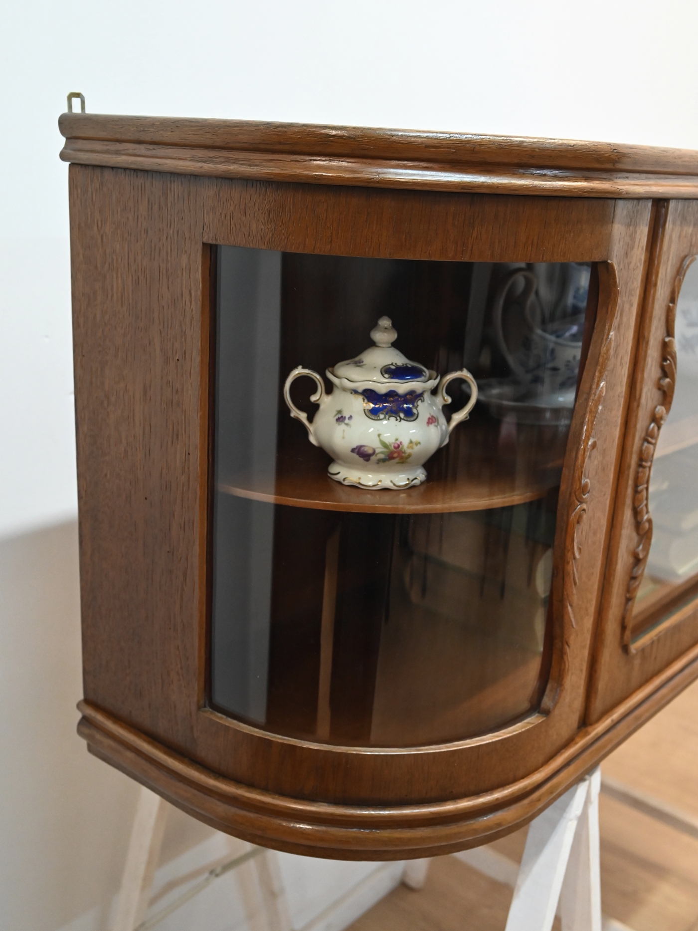 Wykończony jest politurą szelakową w półmacie.