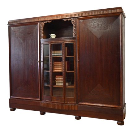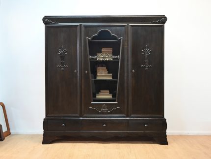 Stan dobry. Mebel przygotowany do użytkowania. Odświeżone zostały powierzchnie zewnętrzne jak i środek mebla. Mebel ma już swoje lata i ślady minionego czasu, które nie wpływają na jego odbiór estetyczny, są świadectwem autentyczności mebla. Bibliotekę od razu można wstawić do mieszkania.