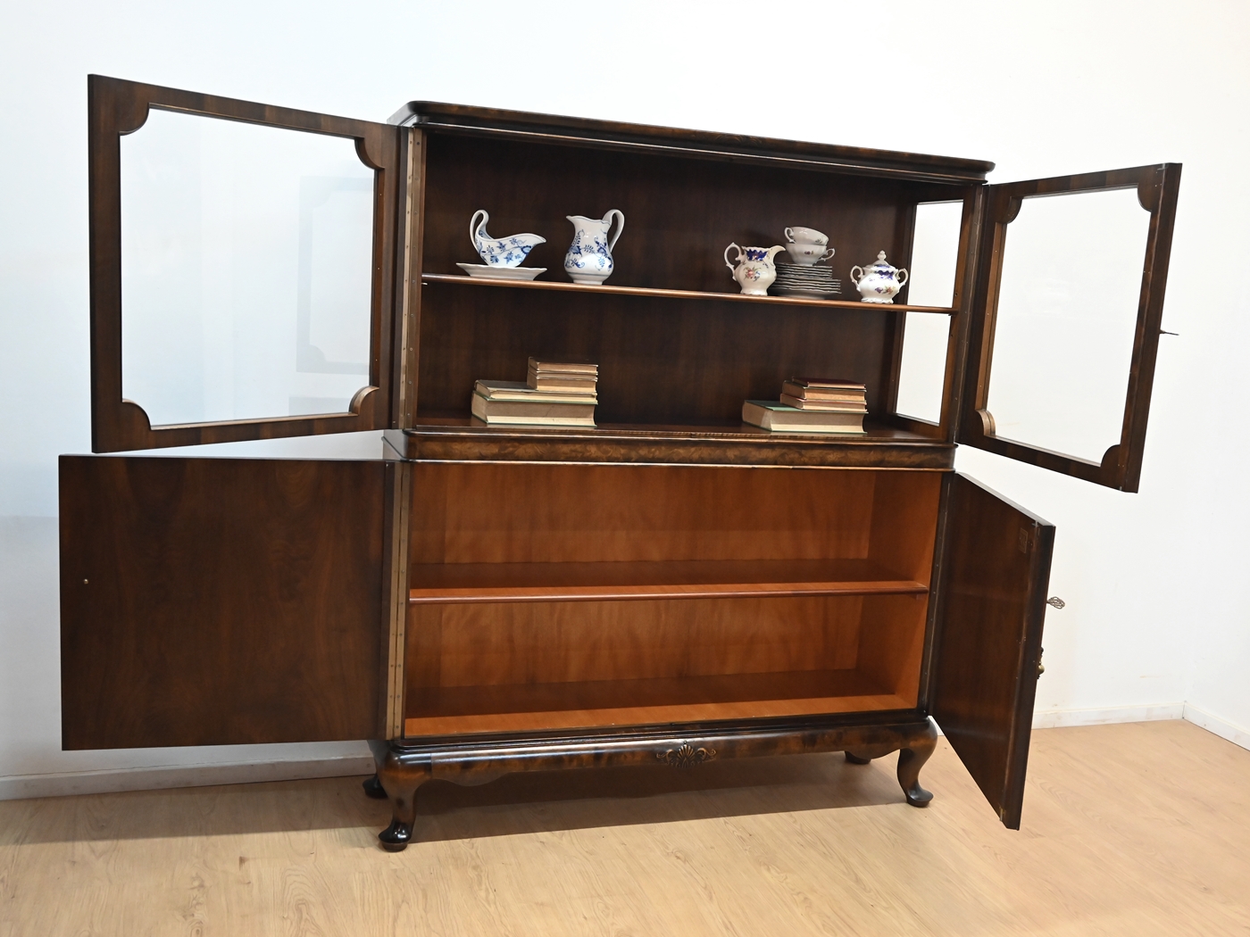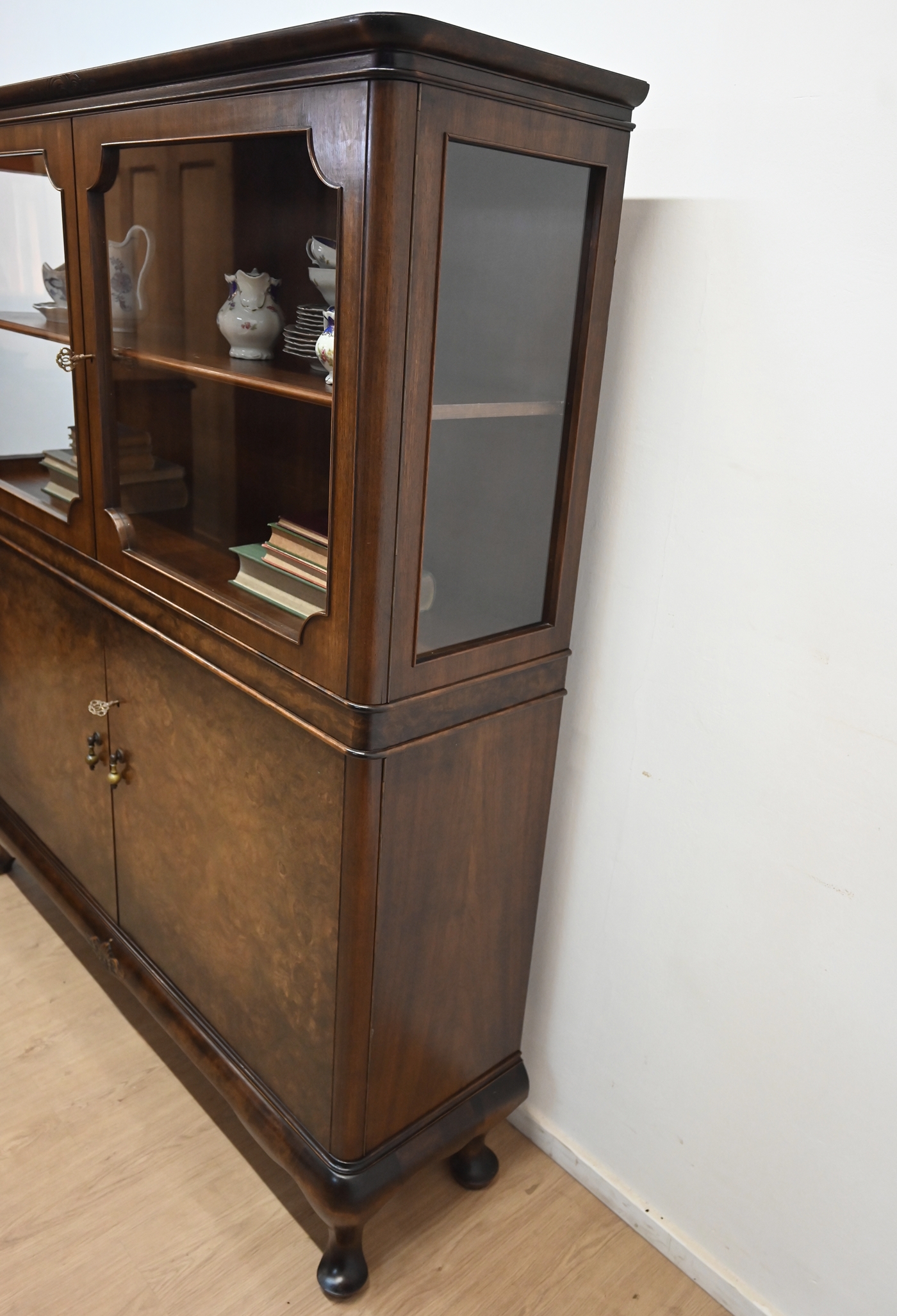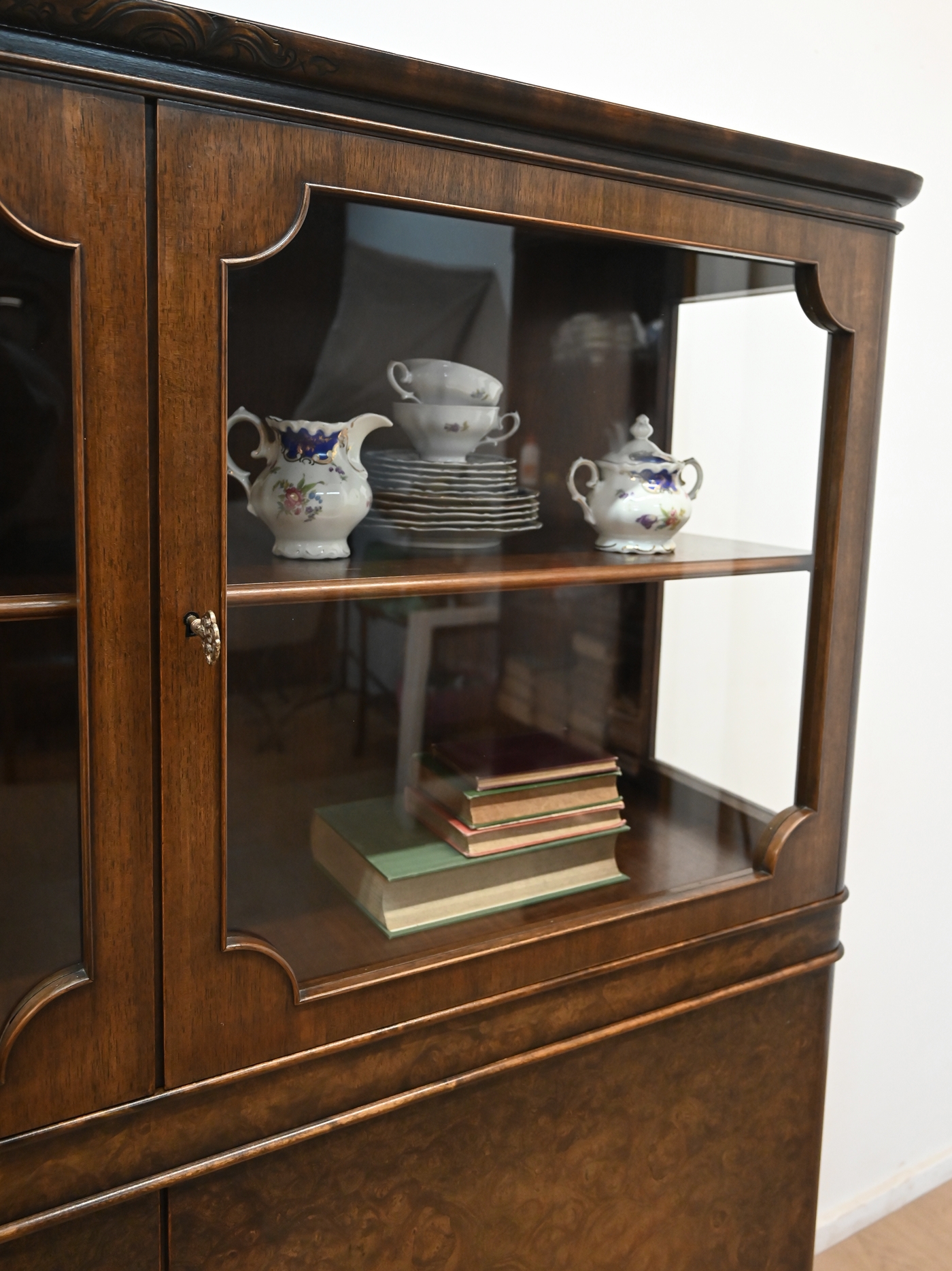 Stan bardzo dobry. Mebel przygotowany do użytkowania. Odświeżone zostały powierzchnie zewnętrzne jak i środek mebla. Mebel ma już swoje lata i ślady minionego czasu, które nie wpływają na jego odbiór estetyczny, są świadectwem autentyczności mebla. Witrynę od razu można wstawić do mieszkania.