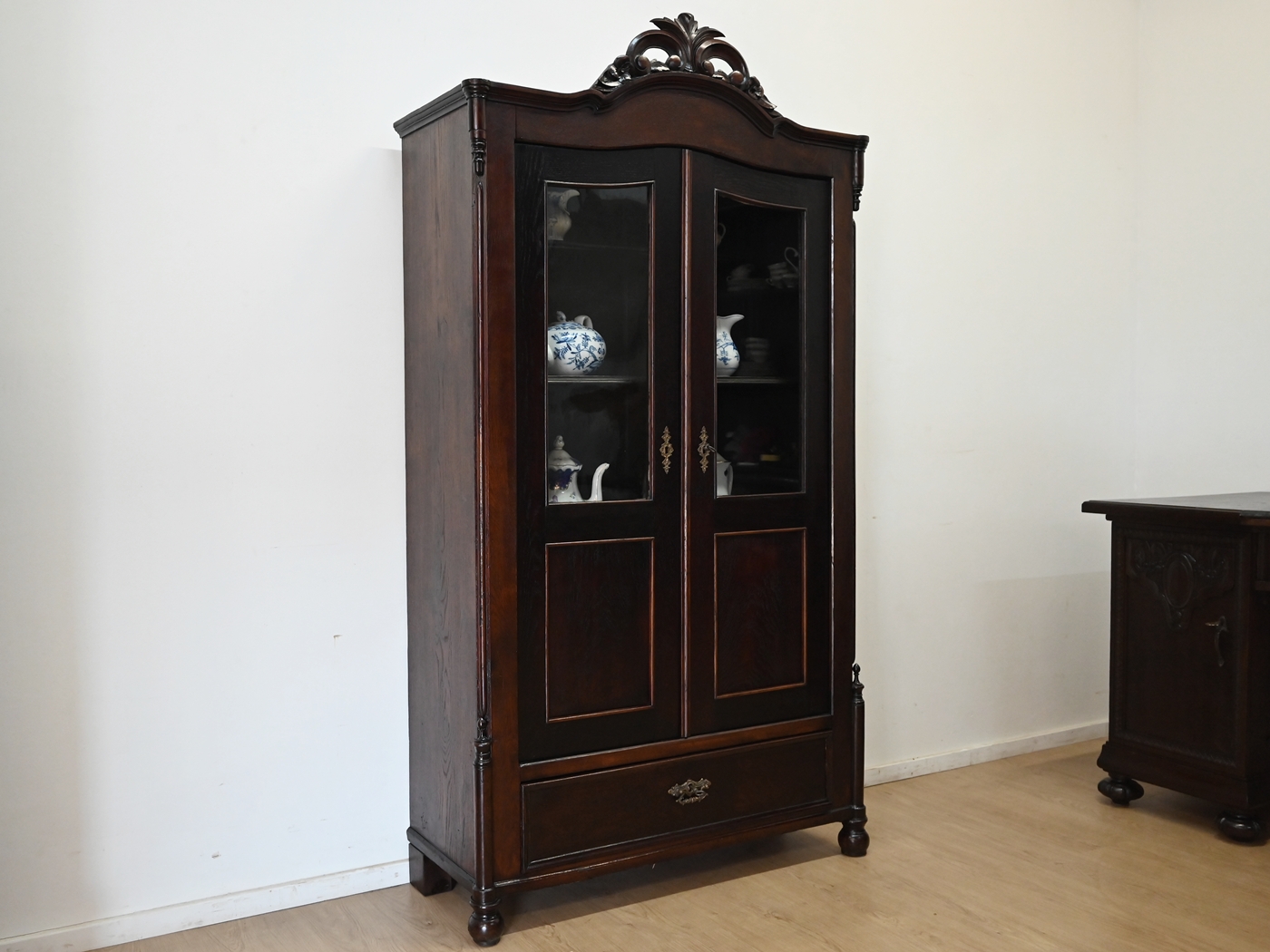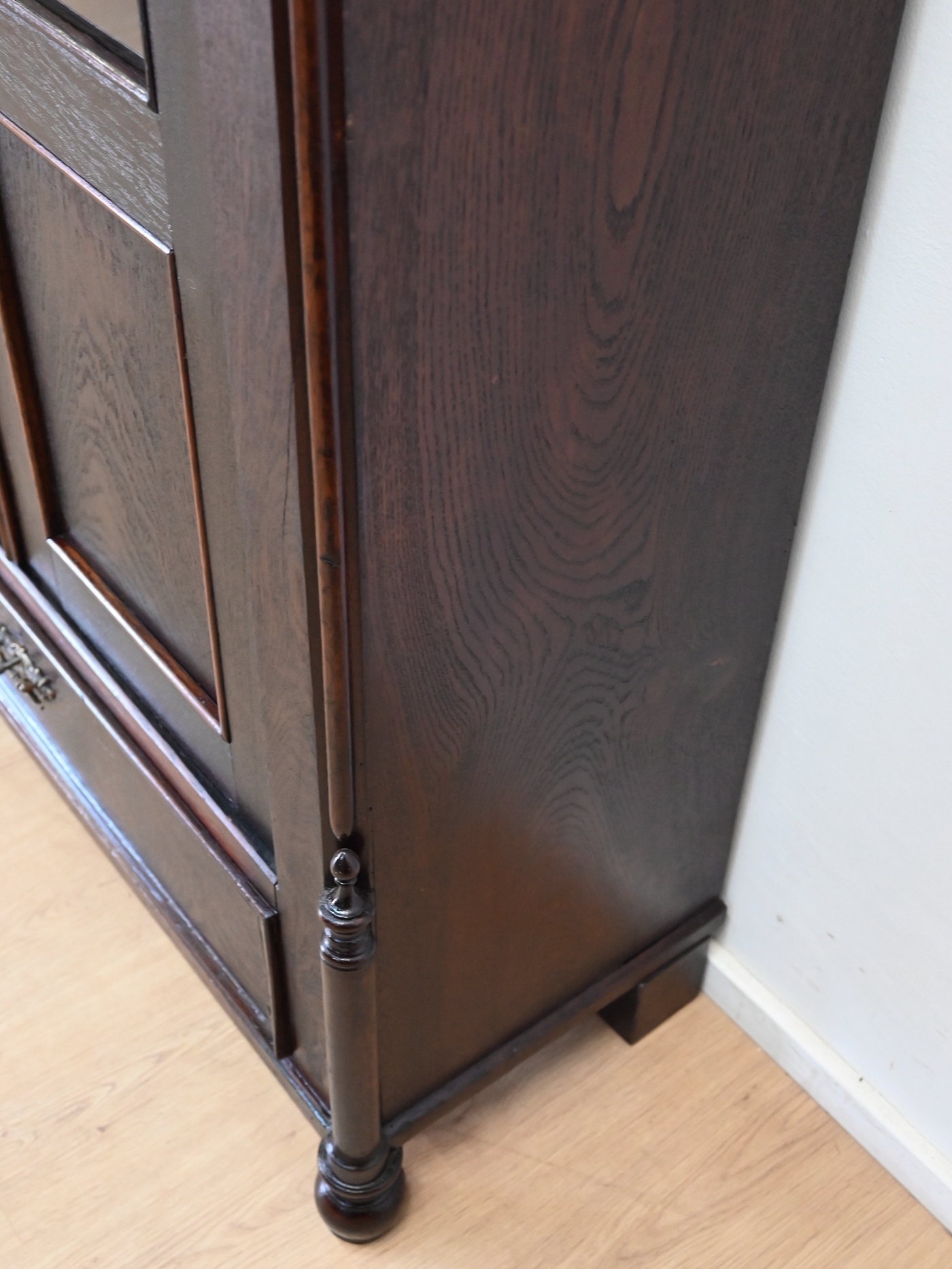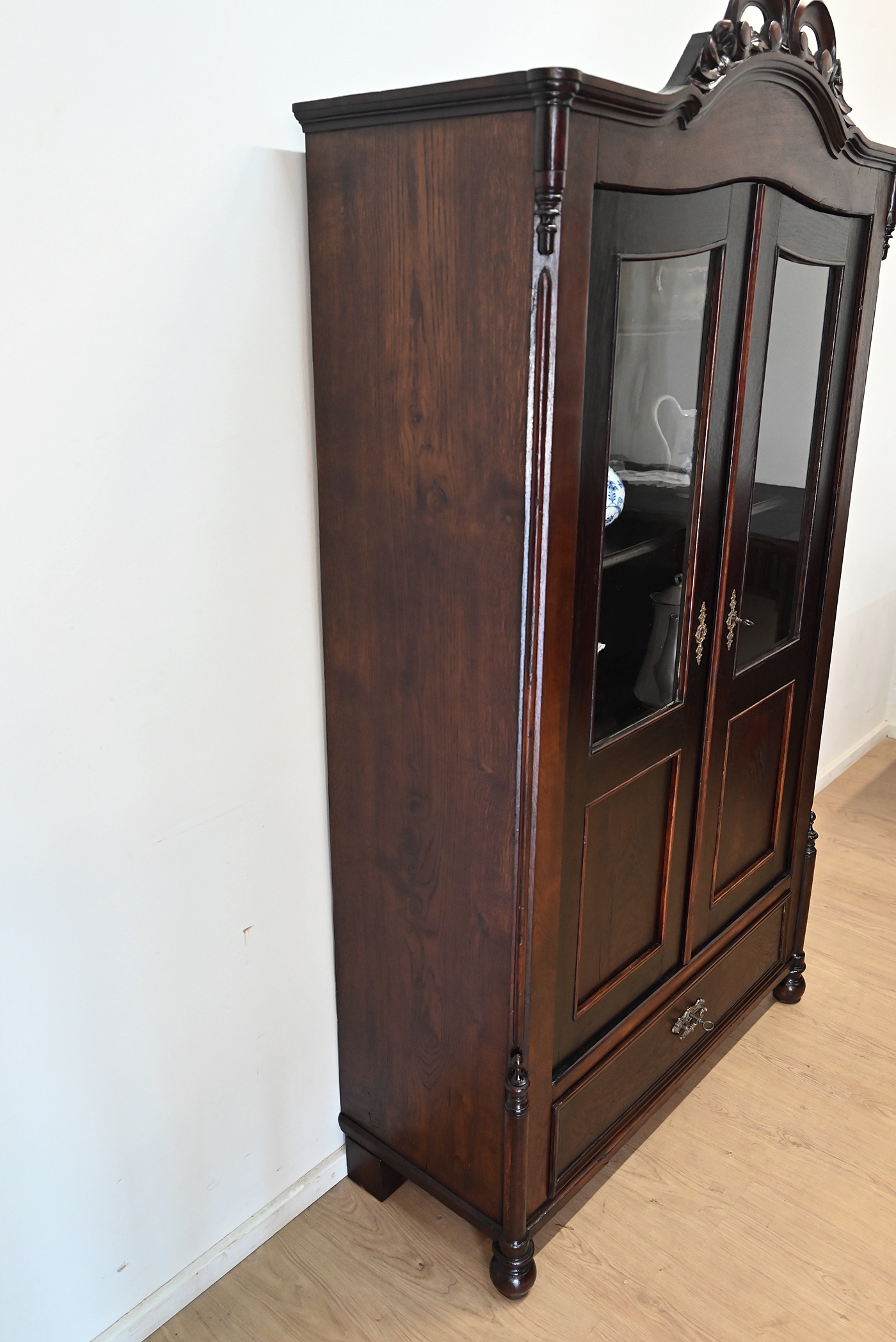 Stan dobry. Mebel przygotowany do użytkowania. Odświeżone zostały powierzchnie zewnętrzne jak i środek mebla. Mebel ma już swoje lata i ślady minionego czasu, które nie wpływają na jego odbiór estetyczny, są świadectwem autentyczności mebla. Witrynę od razu można wstawić do mieszkania.