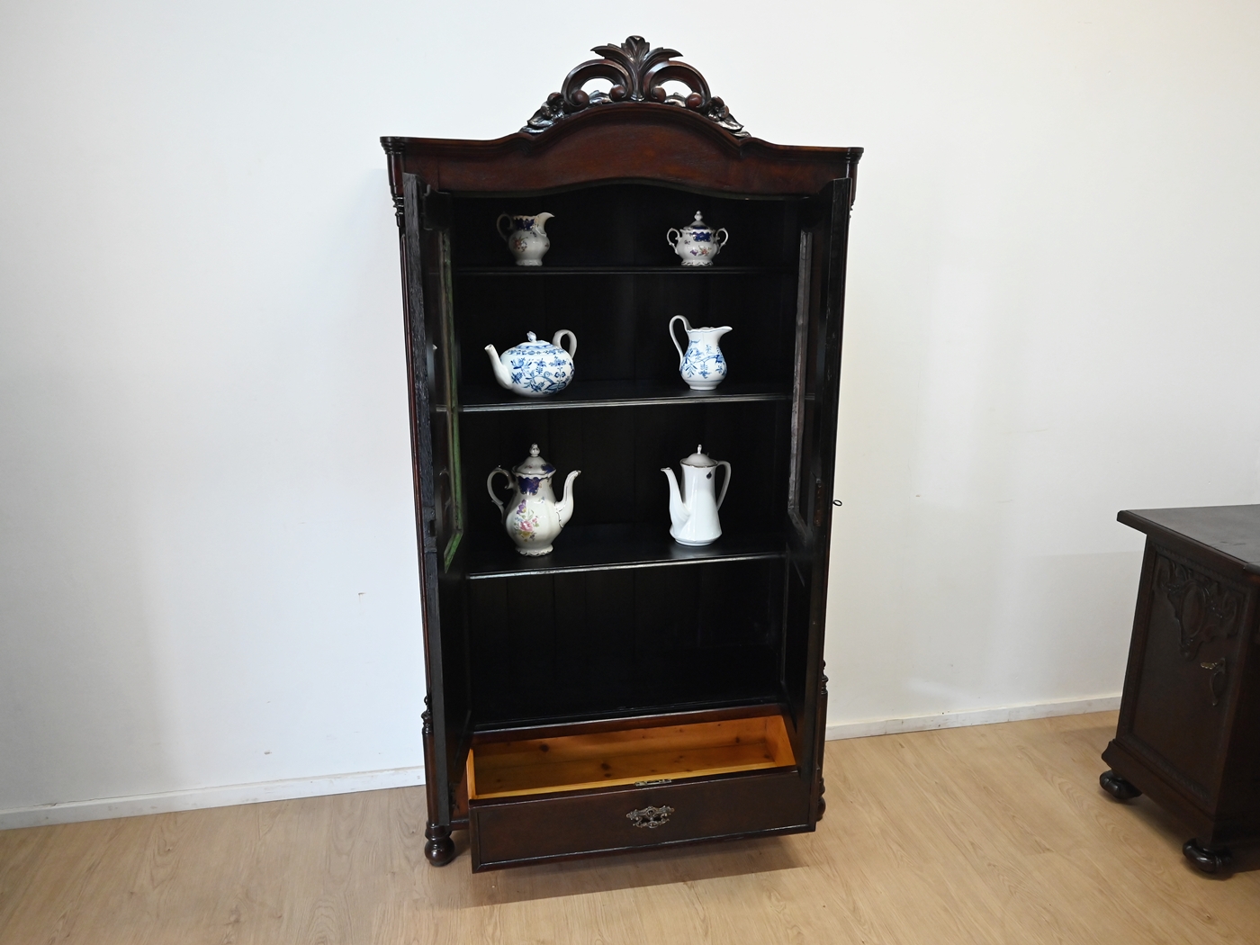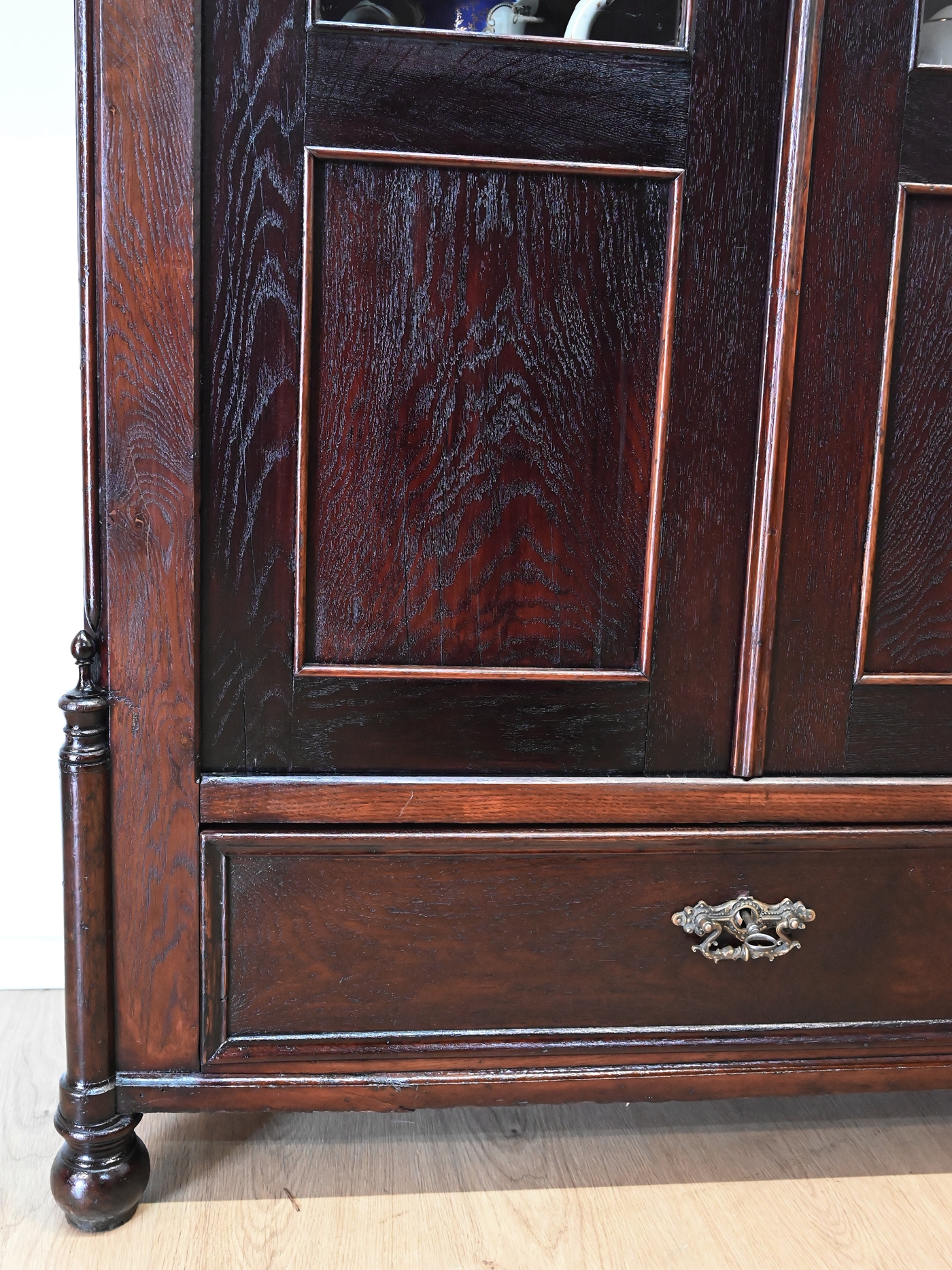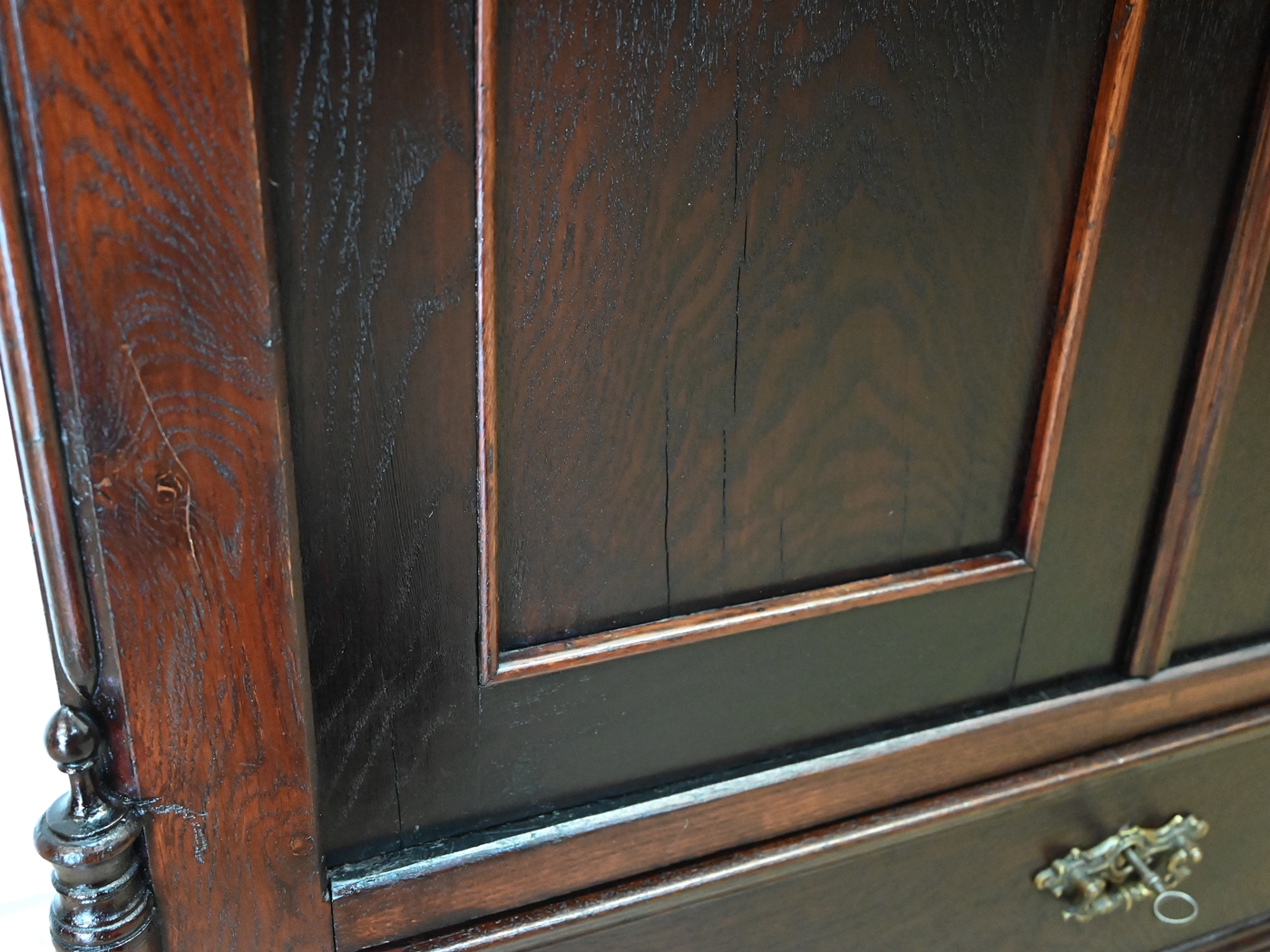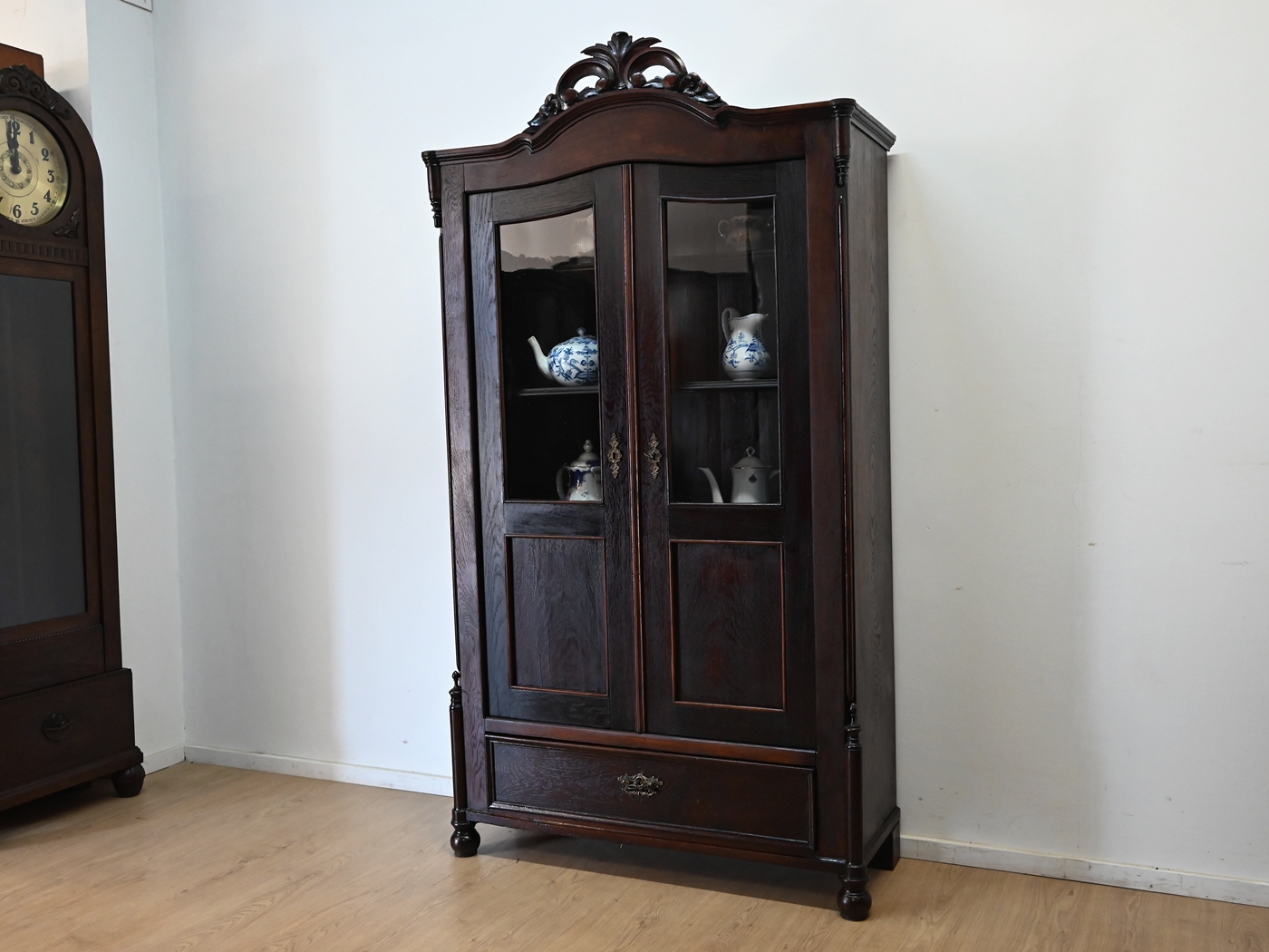 Stan dobry. Mebel przygotowany do użytkowania. Odświeżone zostały powierzchnie zewnętrzne jak i środek mebla. Mebel ma już swoje lata i ślady minionego czasu, które nie wpływają na jego odbiór estetyczny, są świadectwem autentyczności mebla. Witrynę od razu można wstawić do mieszkania.